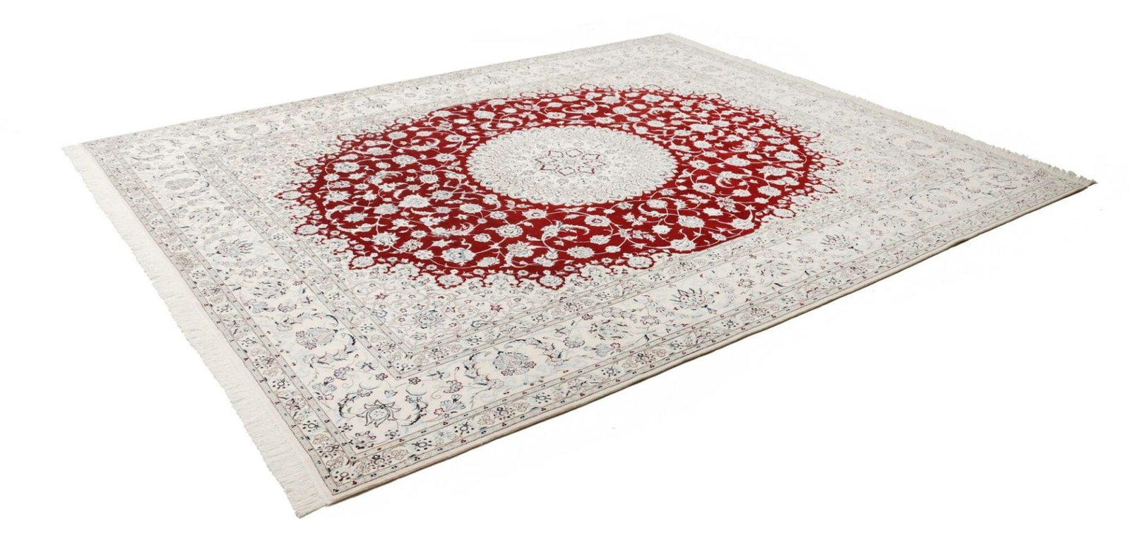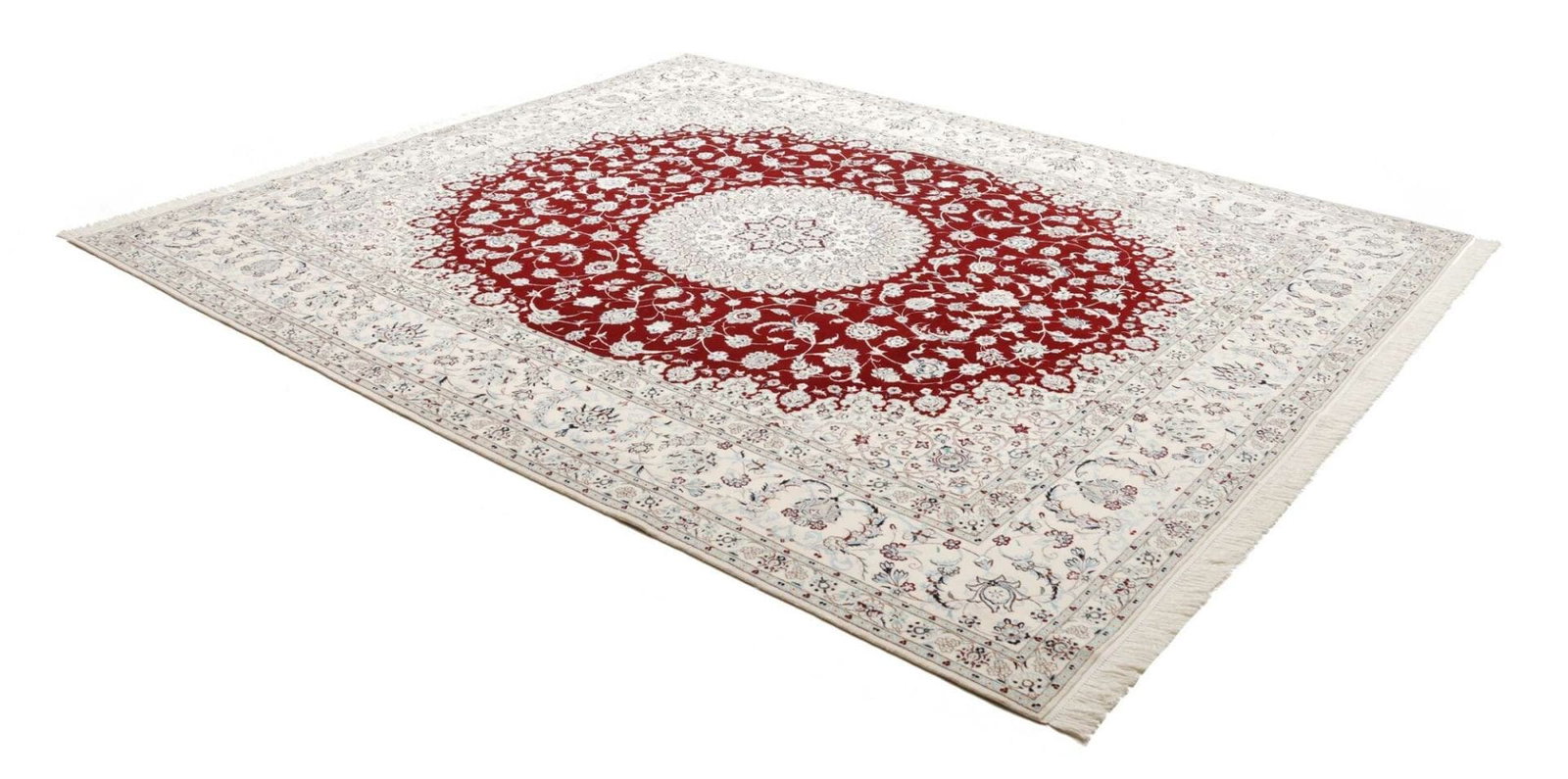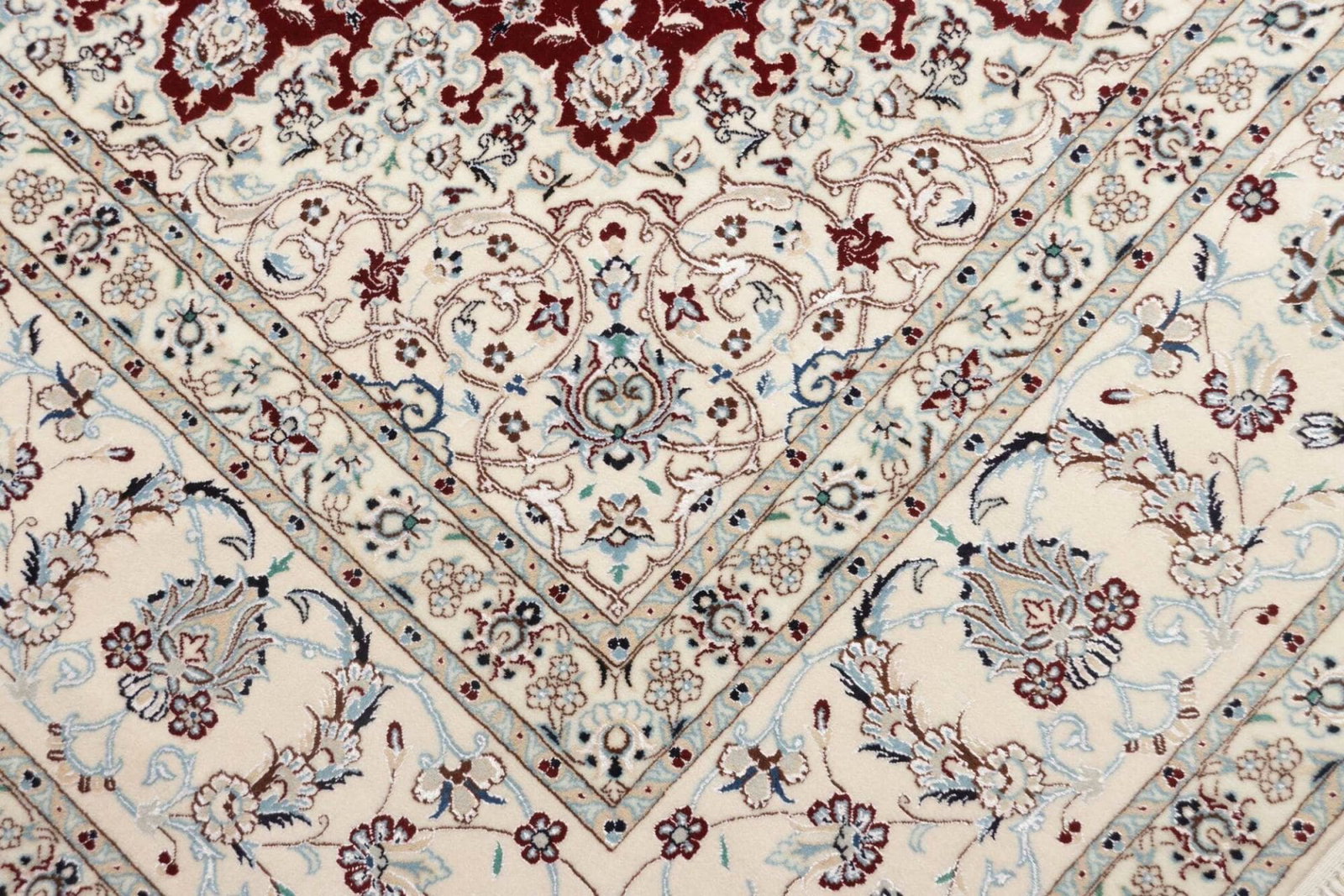 15389$Ursprünglicher Preis war: 15389$12387$Aktueller Preis ist: 12387$Nain Teppich | Knotendichte: ca. 900.000 Knoten/m² | Muster: Klassische florale Motive | Größe: 254 x 301 cm | Material: 100% Schurwolle (Flor) und 100% Baumwolle (Kette) | Zustand: Sehr gut | Ursprung: Iran | Verarbeitung: Handgeknüpft