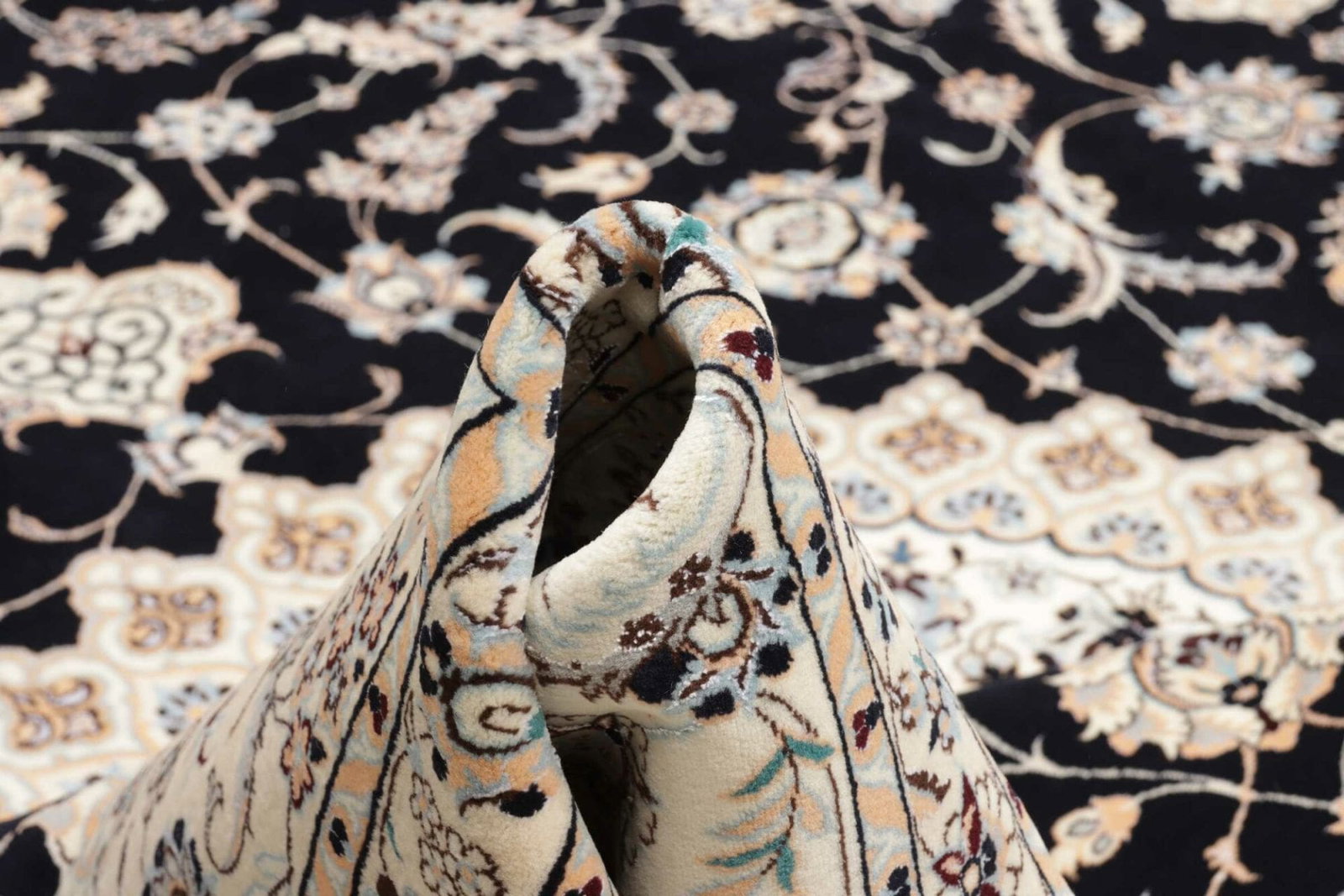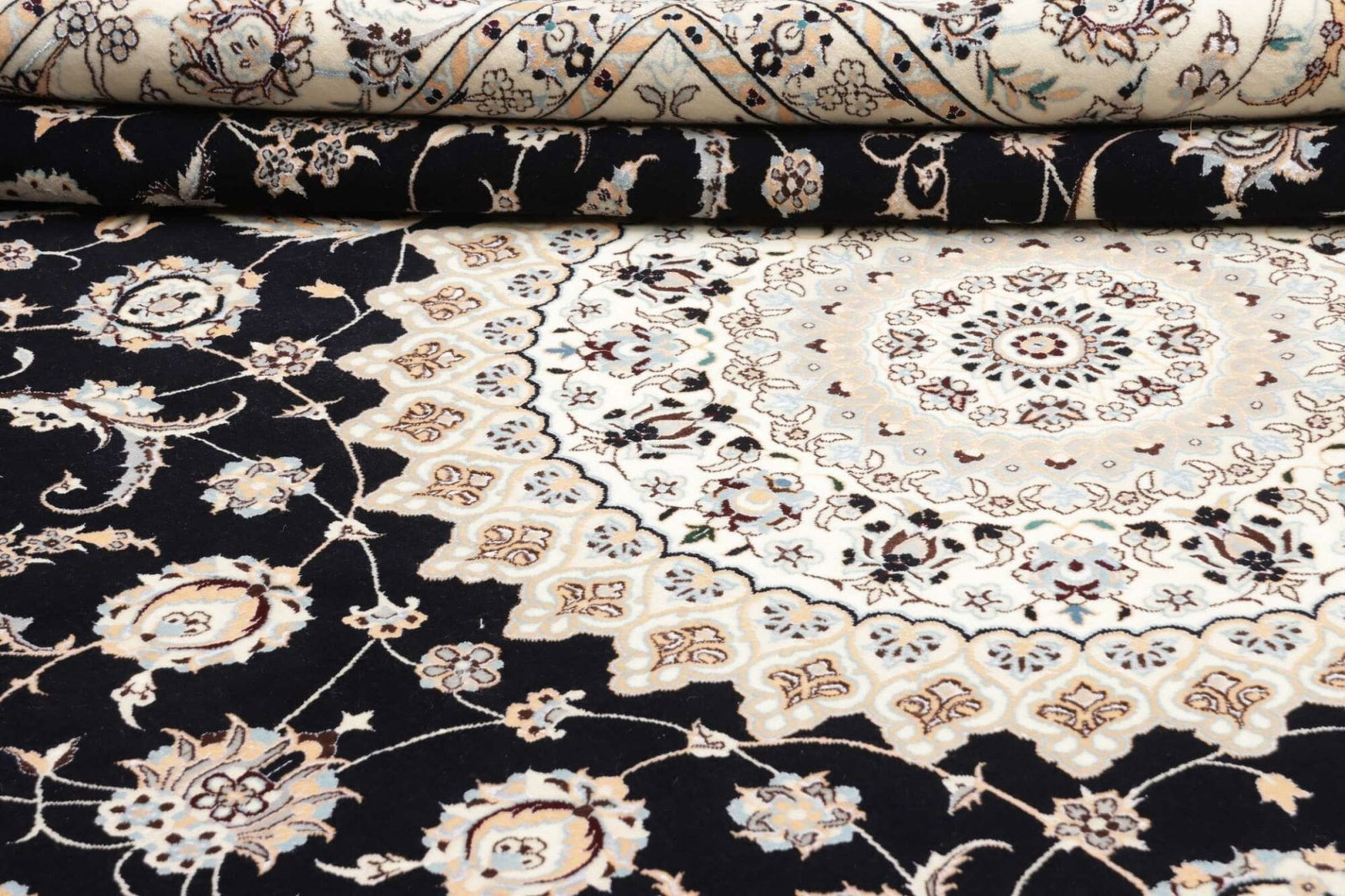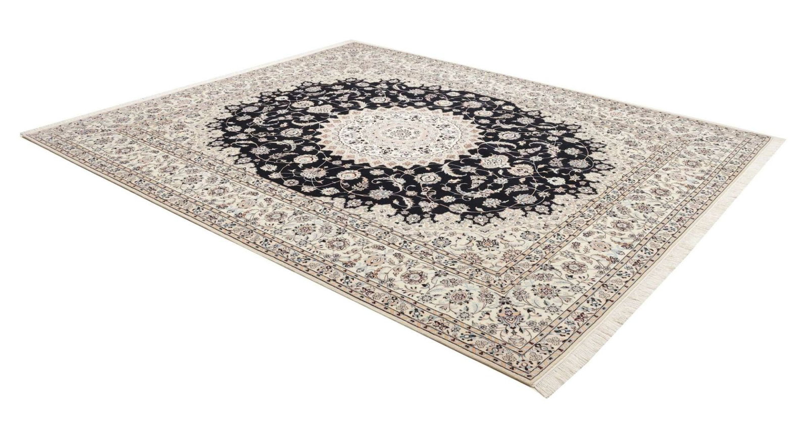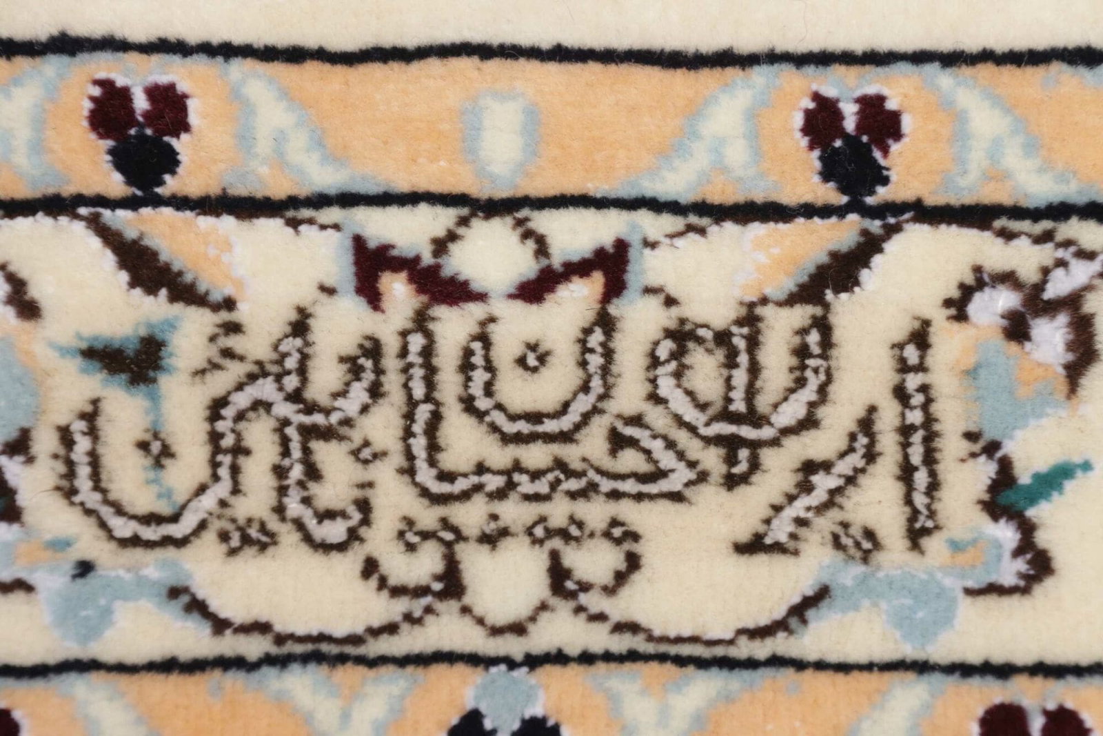 Nain Teppich | Knotendichte: ca. 900.000 Knoten/m² | Material: 100% Schurwolle (Flor), 100% Baumwolle (Kette) | Größe: 262 x 310 cm | Herkunft: Iran | Zustand: Handgeknüpft und in ausgezeichnetem Zustand | Exklusive florale Musterung mit königsblauen Akzenten