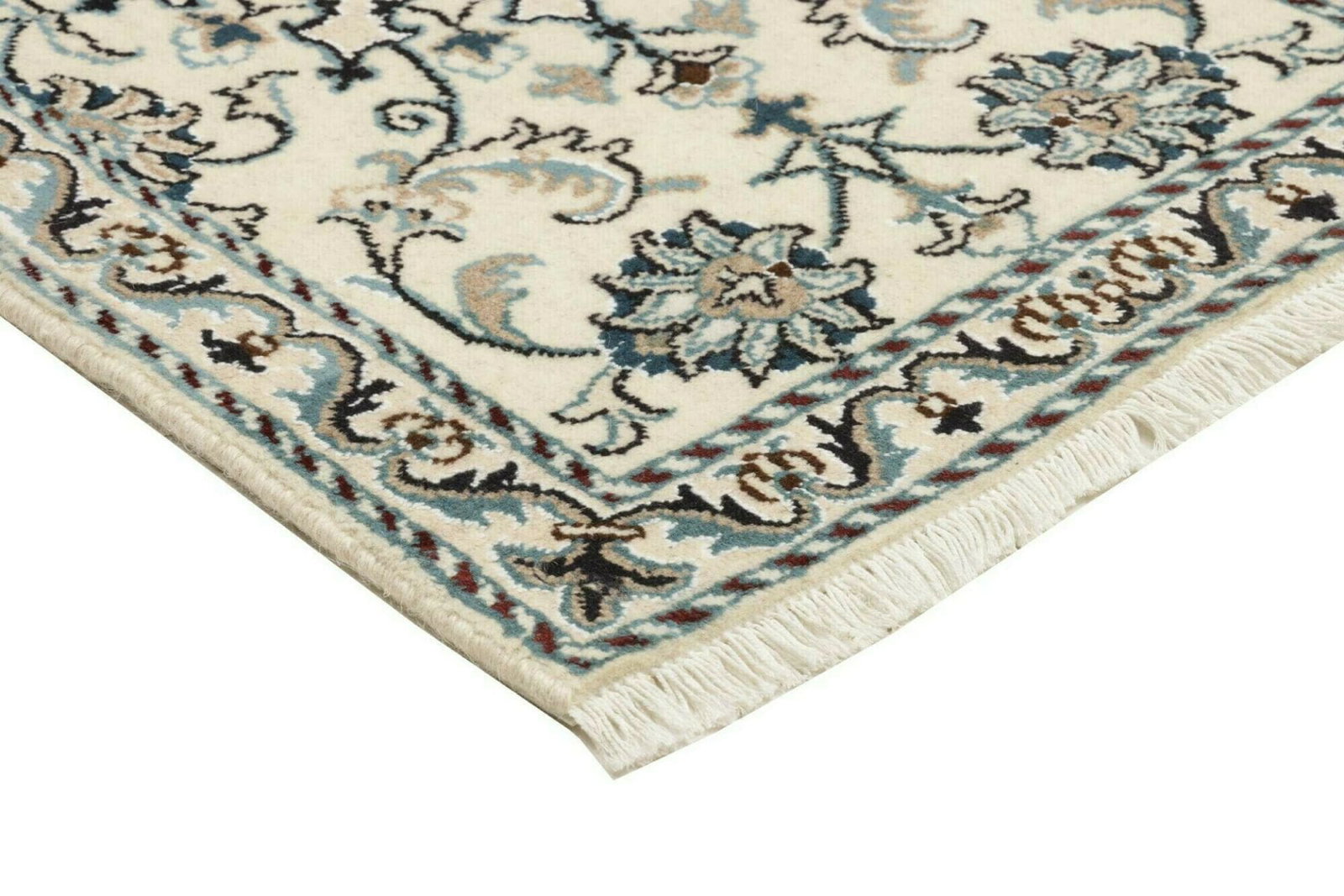 Das florale Design des Nain Orientteppichs ist ein wesentlicher Bestandteil seiner Anziehungskraft. Die floralen Muster sind oft mit symmetrischen und geometrischen Elementen kombiniert, die dem Teppich eine harmonische Ausstrahlung verleihen. Jedes Detail wird mit großer Sorgfalt und Präzision hergestellt, wodurch der Teppich zu einem besonderen Highlight in jedem Raum wird. Die Farben sind sorgfältig ausgewählt, um ein Gleichgewicht zwischen Eleganz und Lebendigkeit zu erreichen und harmonisch in die unterschiedlichsten Raumkonzepte integriert werden zu können.