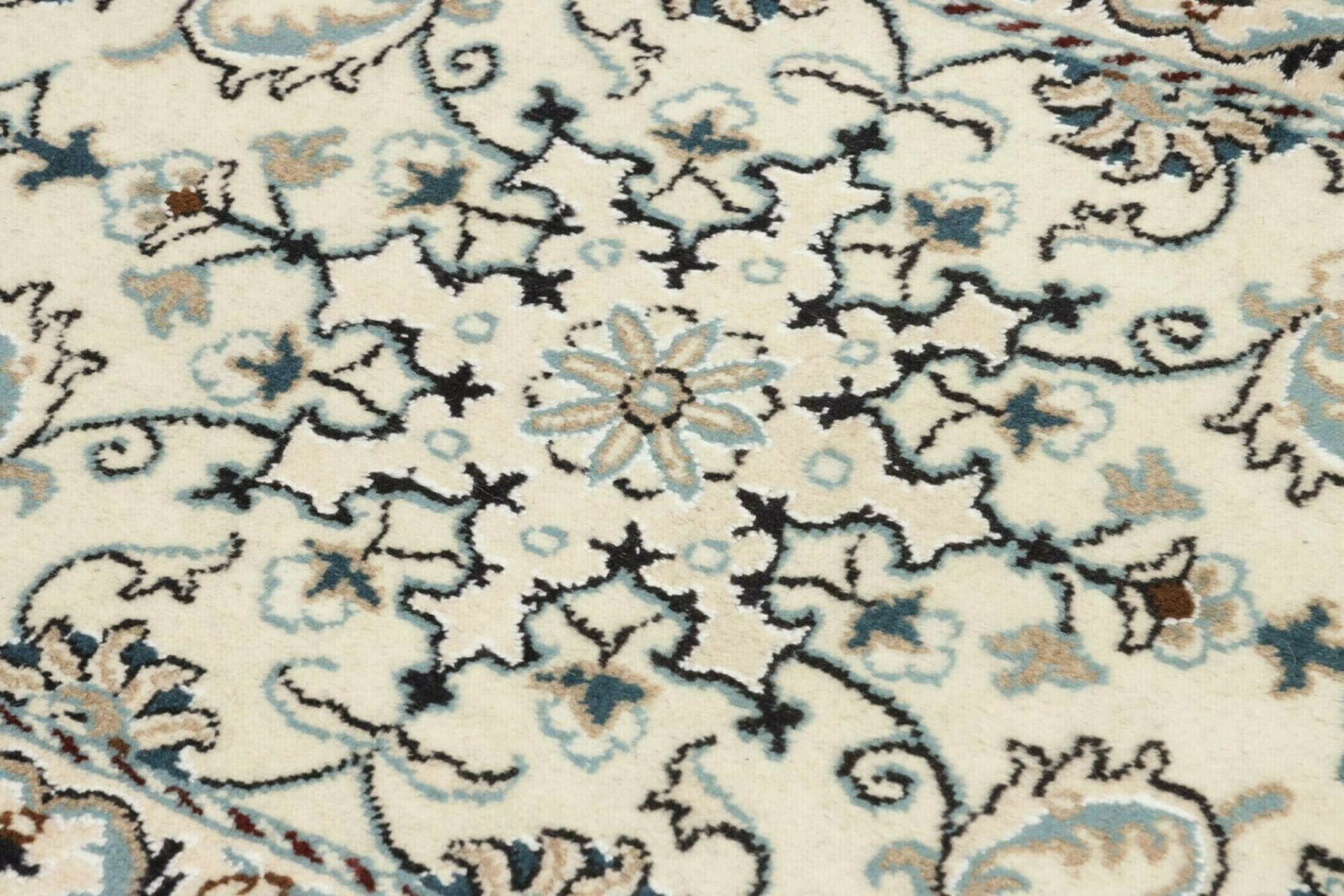 Der Nain Orientteppich wird aus hochwertigen Materialien hergestellt, die nicht nur Langlebigkeit garantieren, sondern auch einen besonderen Tragekomfort bieten. Die Fasern sind weich und warm, wodurch sie eine angenehme Haptik erzeugen. Handgeknüpft aus feinen Wolle oder Seide, zeigt dieser Teppich eine herausragende Knotendichte, die nicht nur für seine Festigkeit sorgt, sondern auch für die Detailtreue der floralen Muster, die auf ihm zu finden sind.