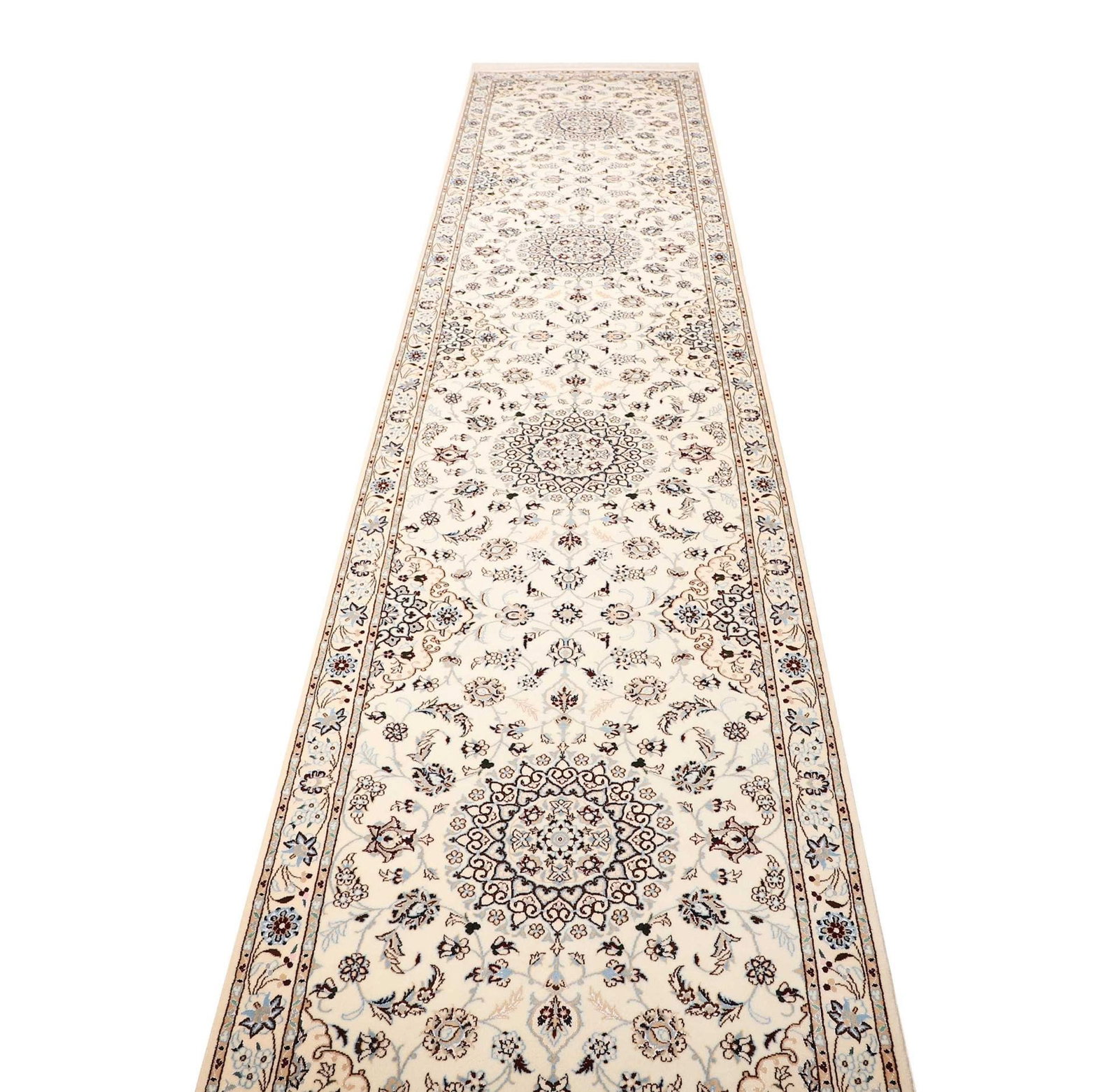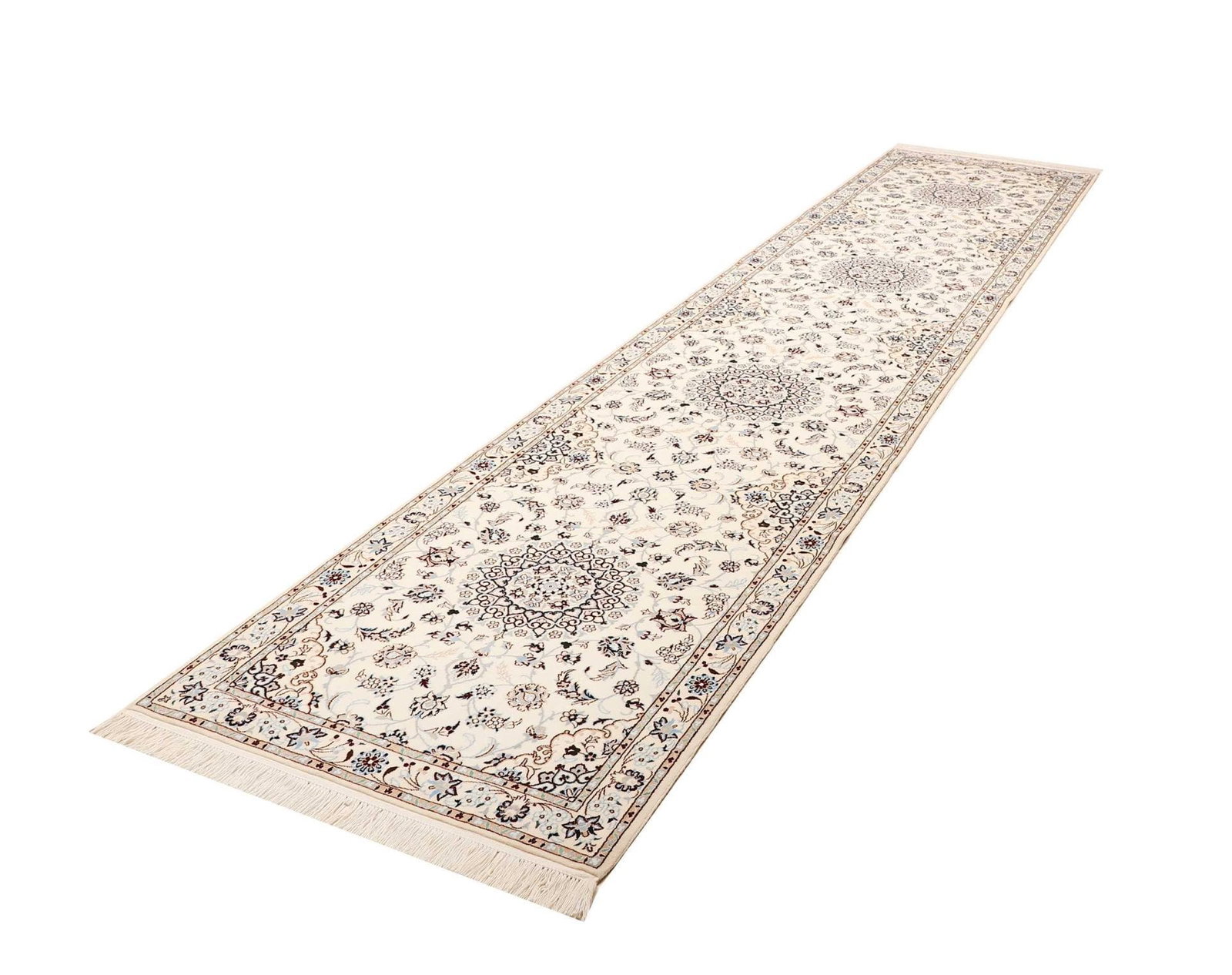 € 6088Ursprünglicher Preis war: € 6088€ 4844Aktueller Preis ist: € 4844Nain Teppich | Knotendichte: ca. 900.000 Knoten/m² | Material: 100% Schurwolle (Flor), 100% Baumwolle (Kette) | Größe: 90 x 413 cm | Handgeknüpfte Qualität | Herkunft: Iran | Zustand: Neu | Stil: Klassische florale und geometrische Muster
