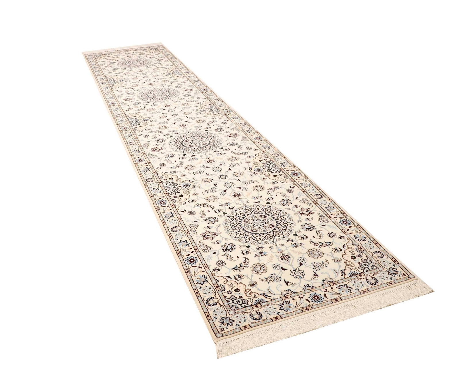 Nain Orientteppich 90 x 413 cm, florale Muster, handgeknüpft