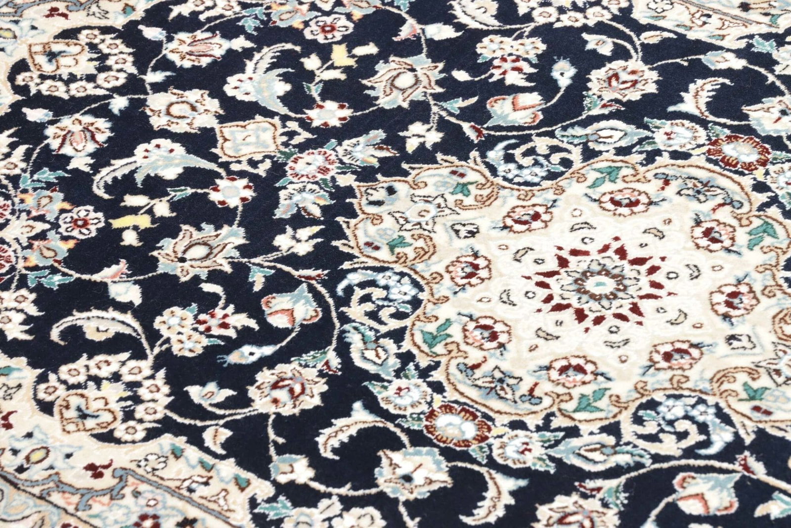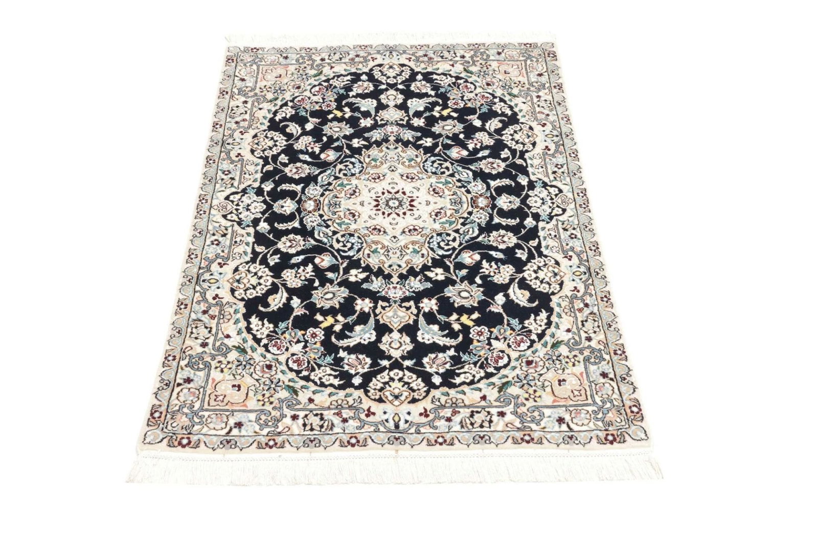Nain Teppich | Knotendichte: ca. 900.000 Knoten/m² | Muster: Klassische florale Motive | Größe: 79 x 115 cm | Material: 100% Schurwolle (Flor), 100% Baumwolle (Kette) | Zustand: Handgeknüpft und hochwertig | Herkunft: Iran, Nain | Höhe: ca. 5-7 mm