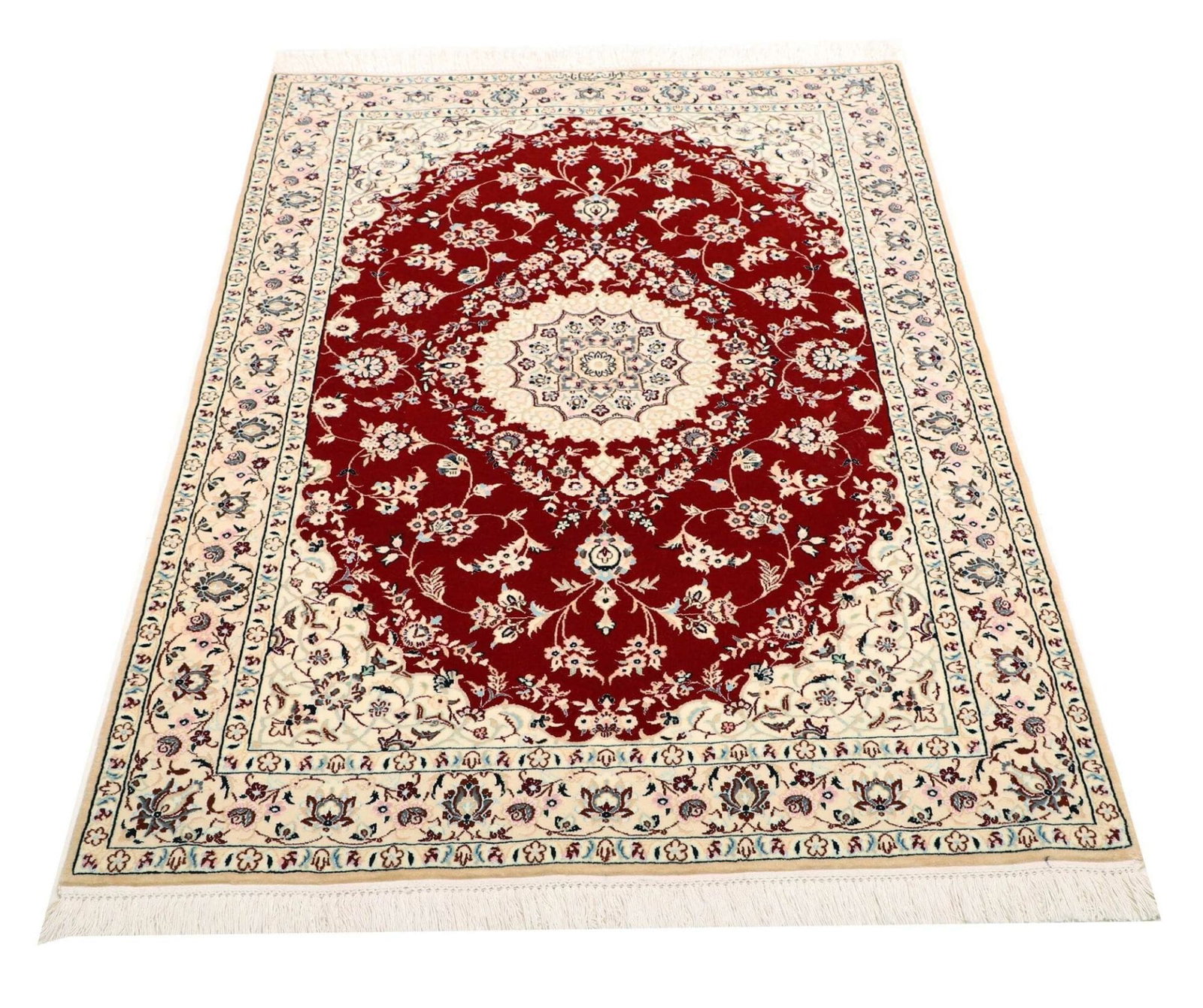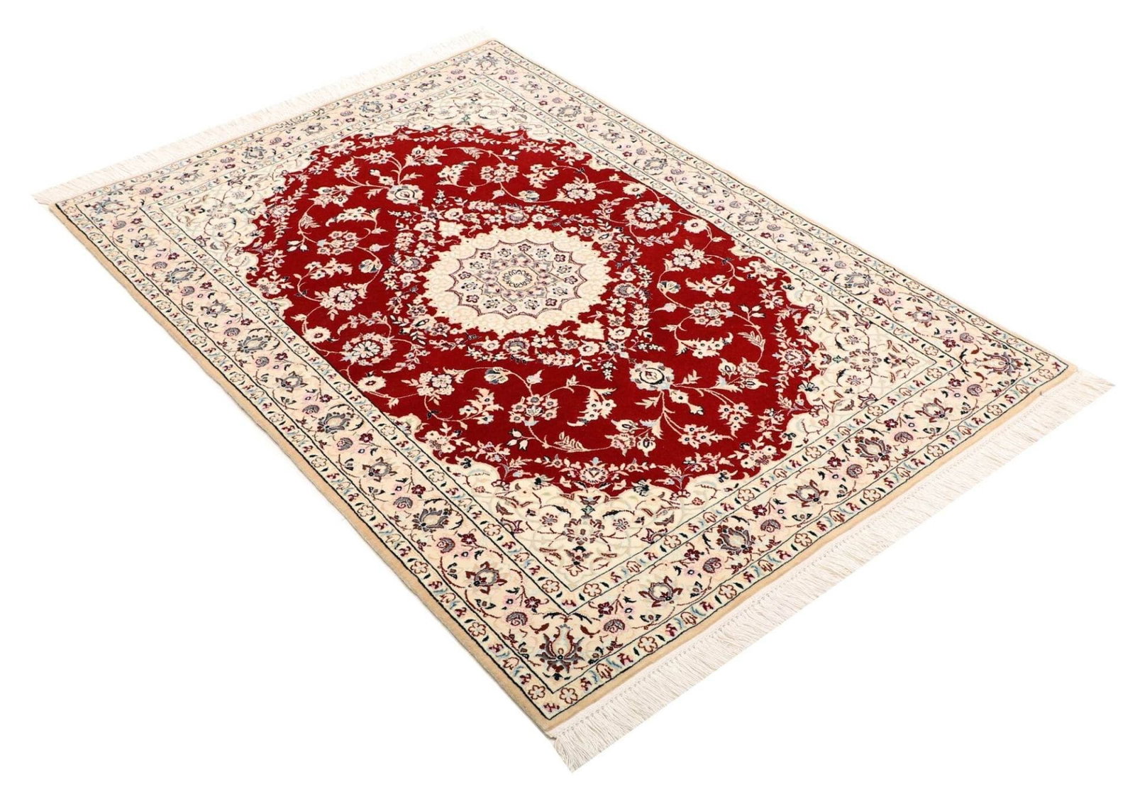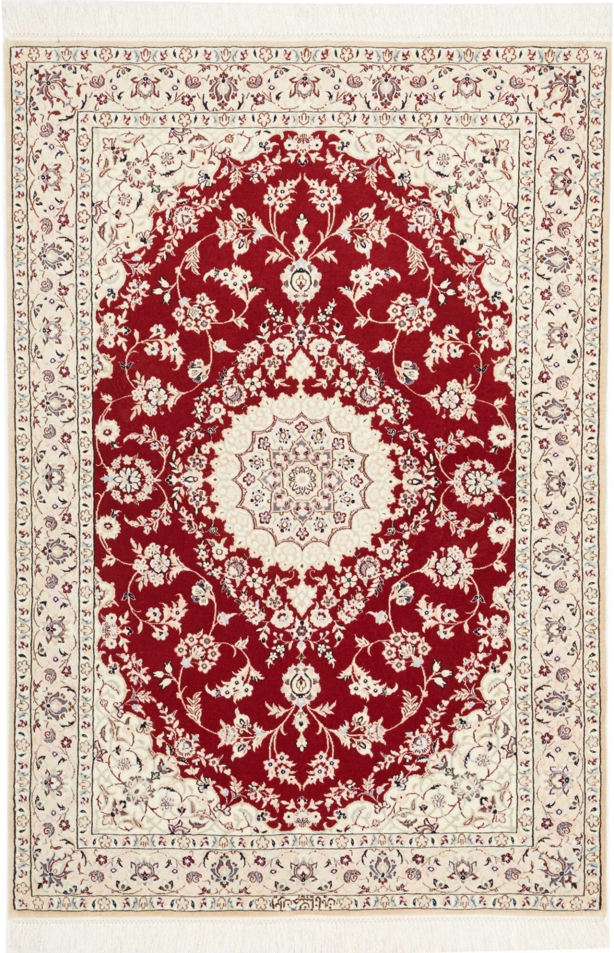 (Verkauft) Nain Teppich 101 x 144cm, florales Design, handgeknüpft, Perserteppich