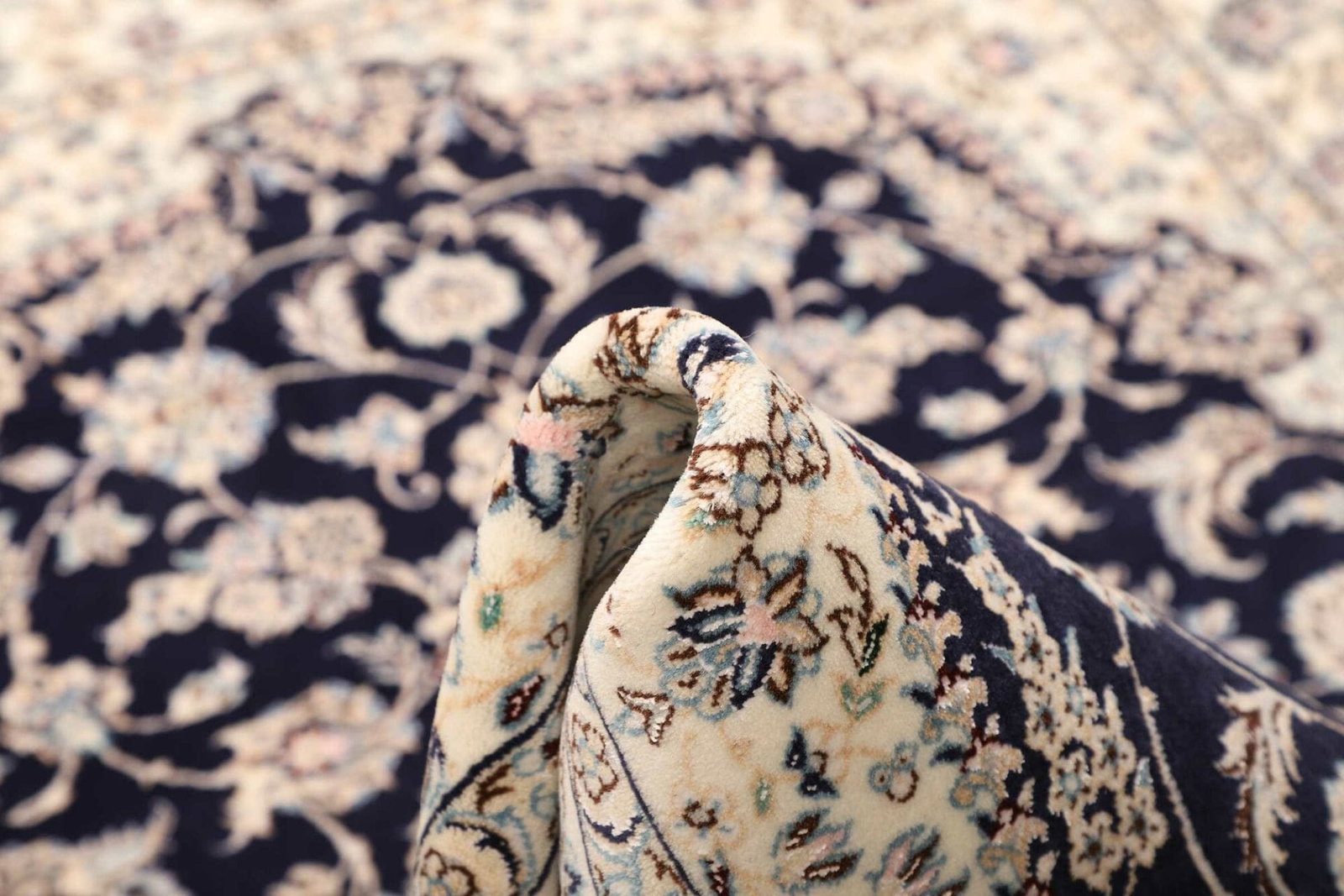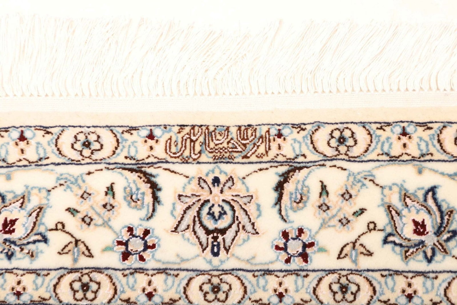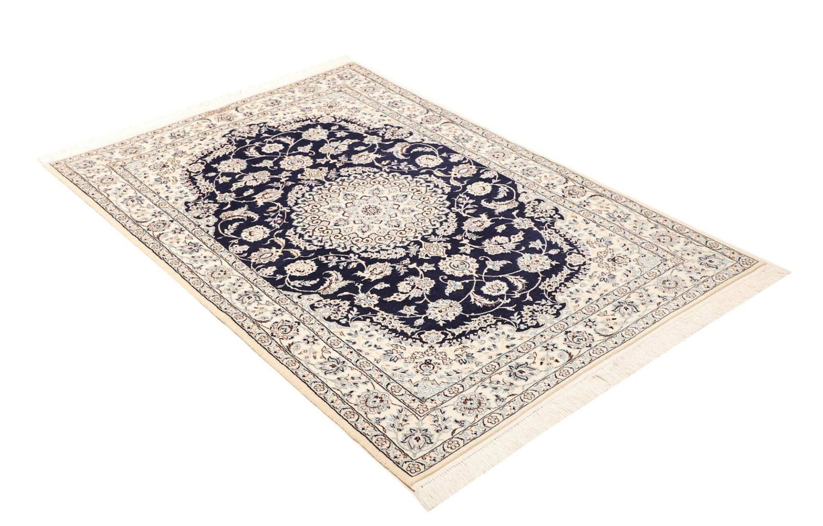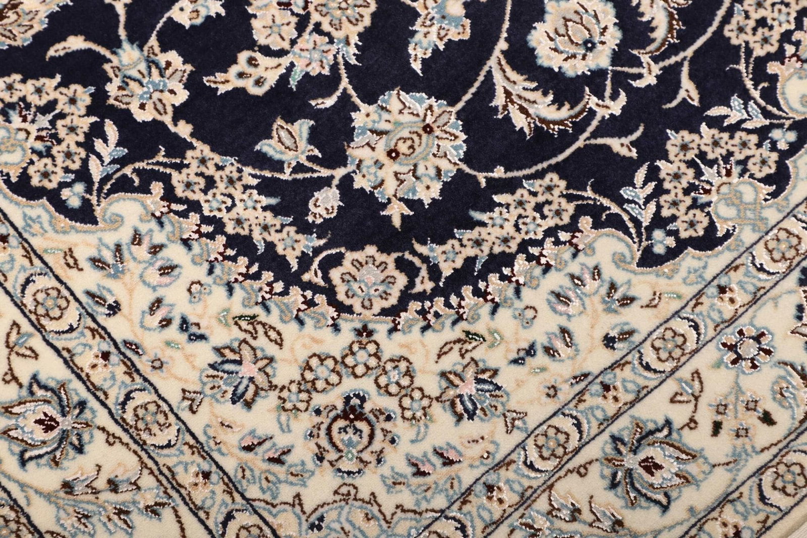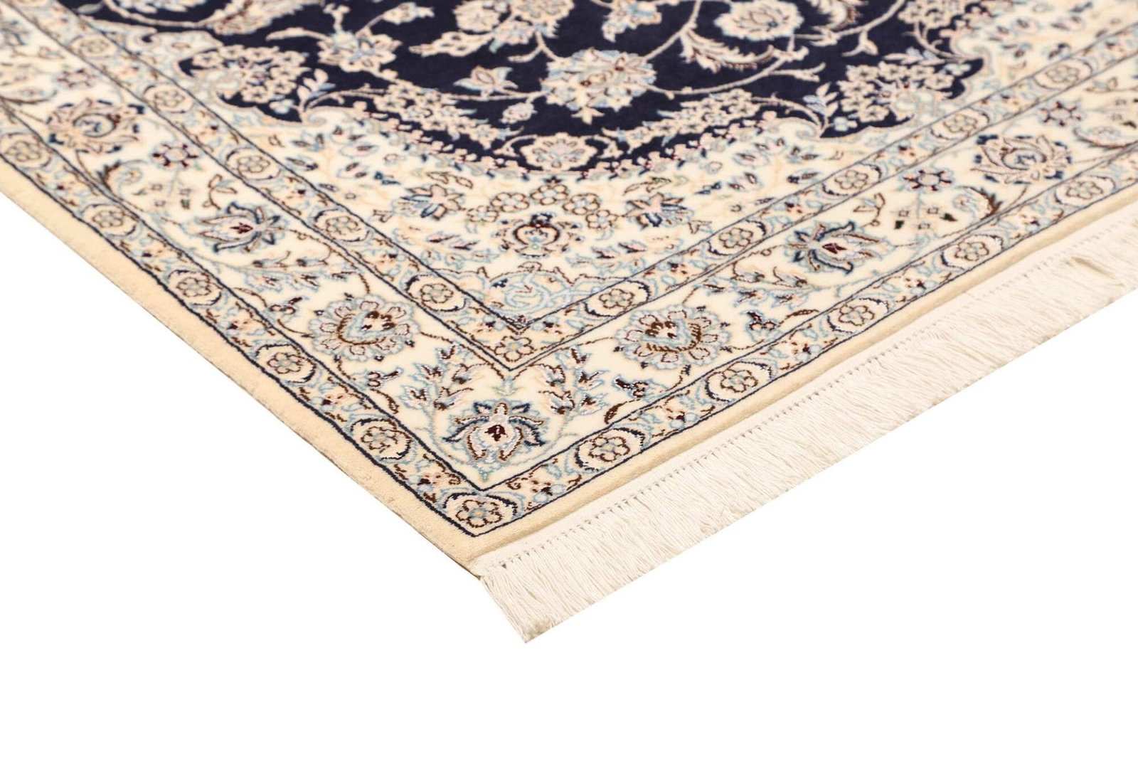Nain Teppich | Knotendichte: ca. 900.000 Knoten/m² | Material: 100% Schurwolle (Flor), 100% Baumwolle (Kette) | Größe: 103 x 151 cm | Herkunft: Iran | Zustand: Exzellente handgeknüpfte Qualität | Muster: Klassische florale Motive mit königsblauem Akzent