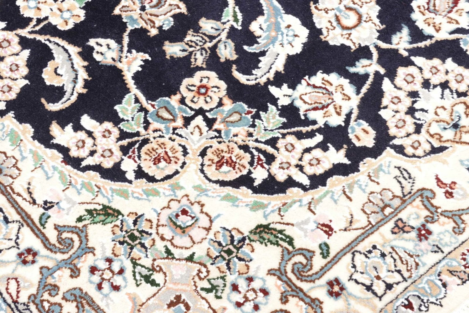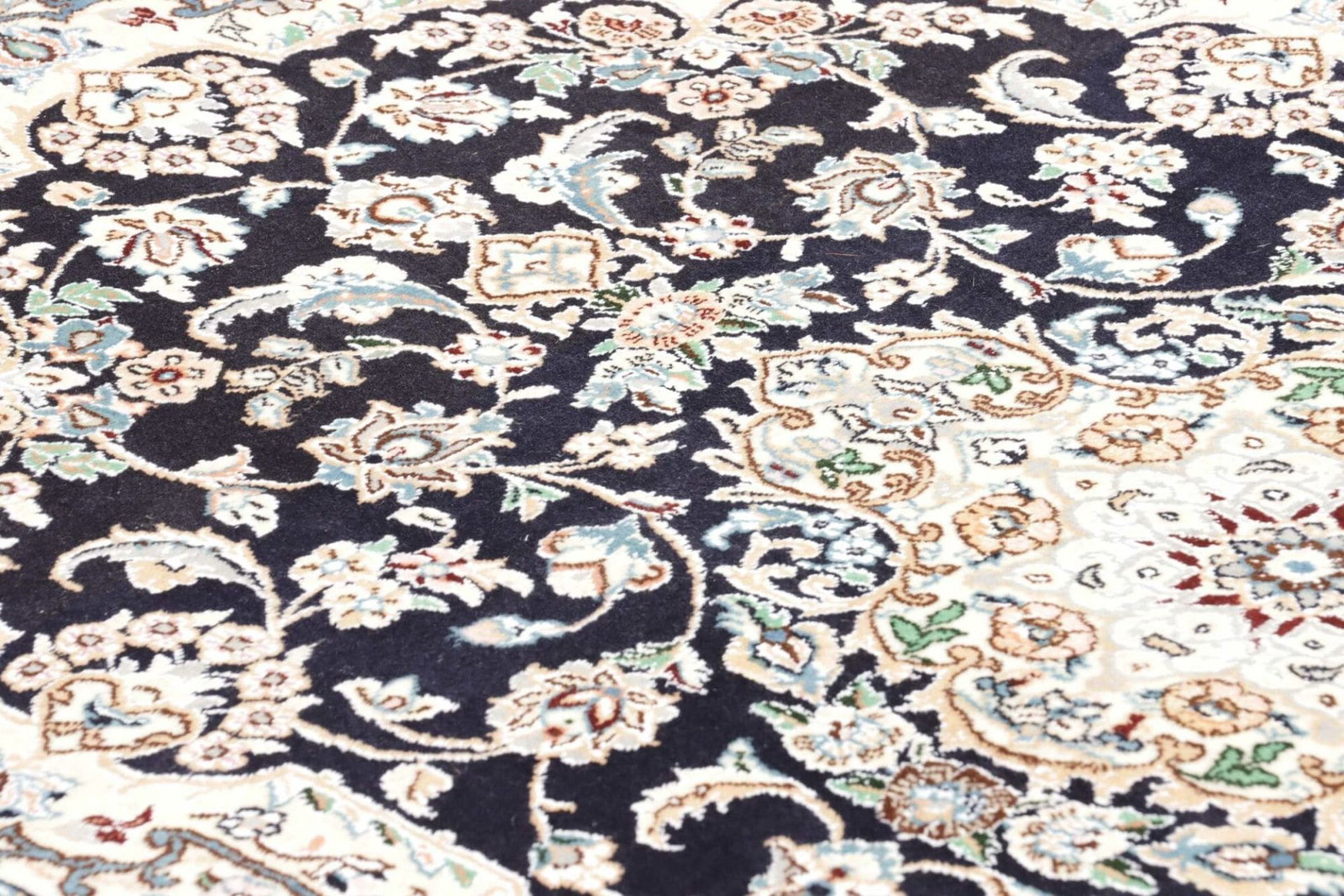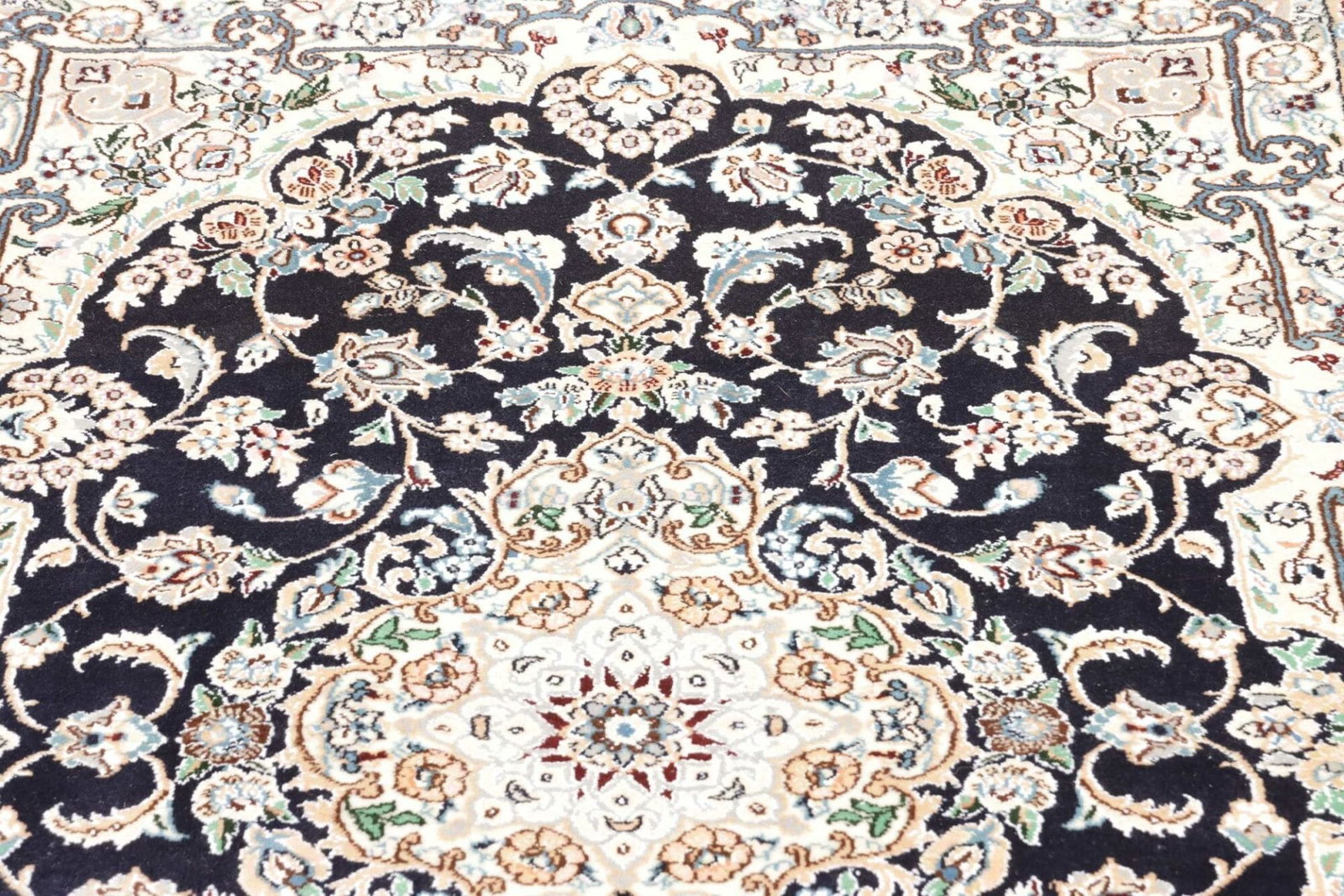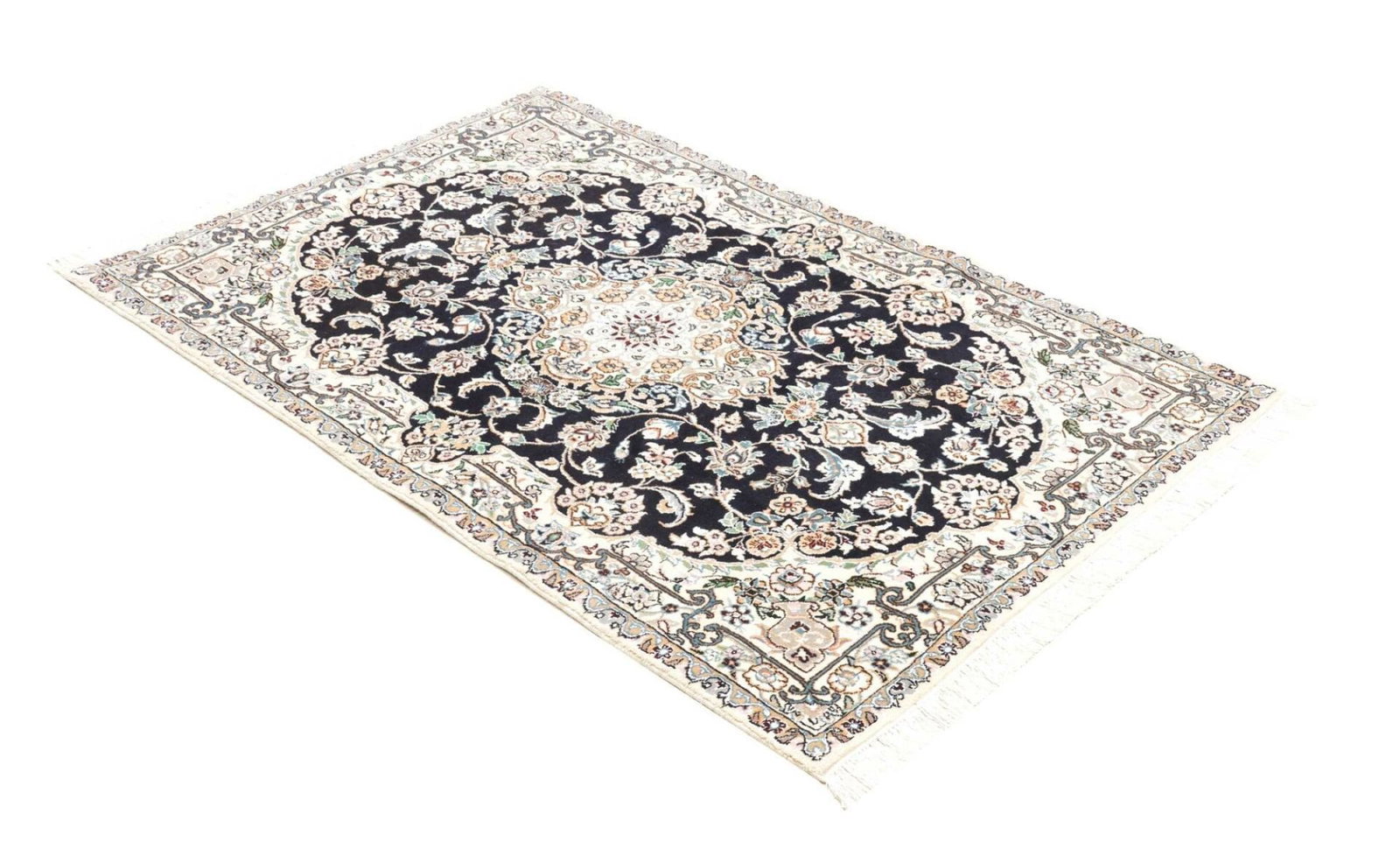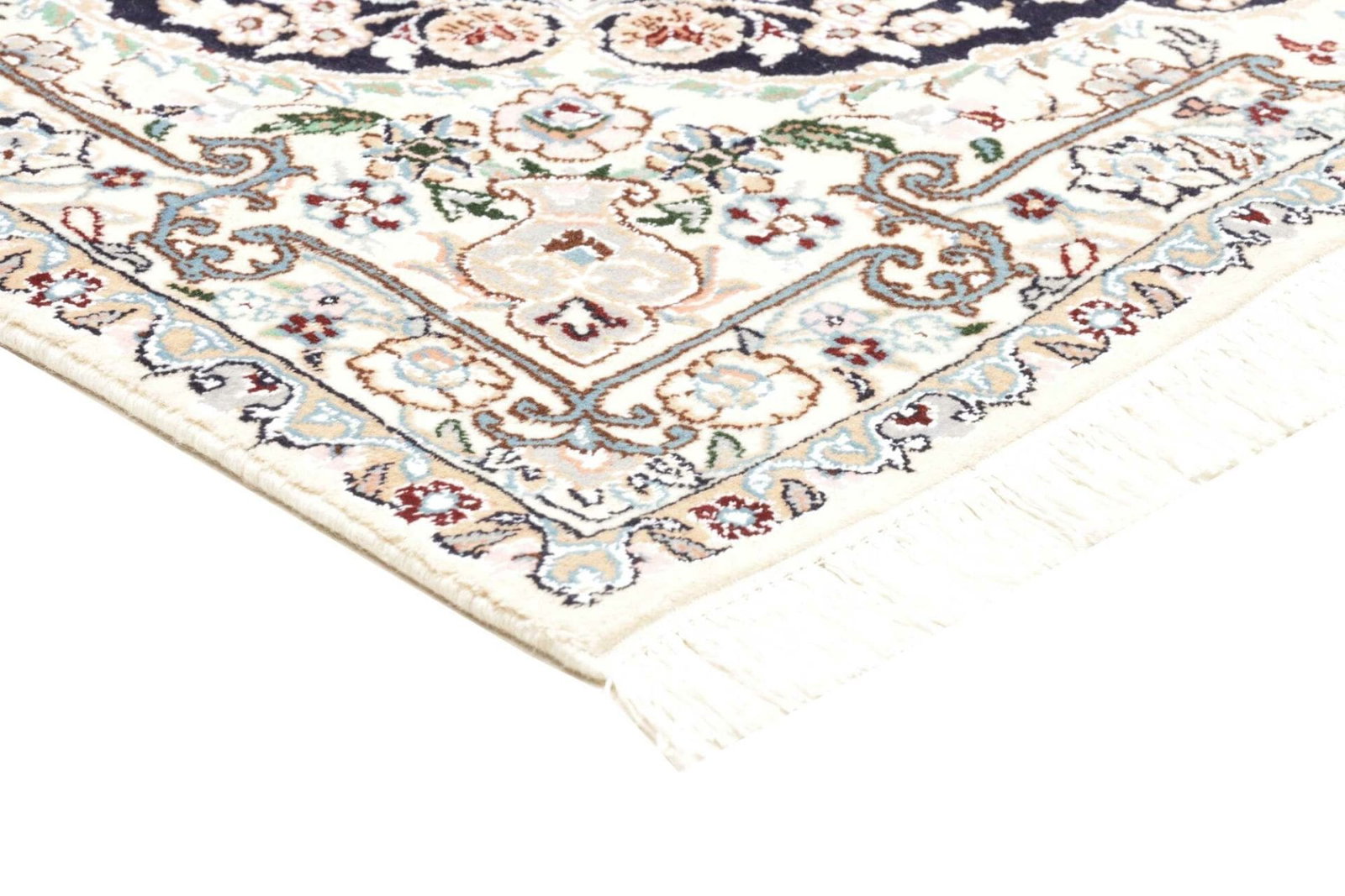 Nain Teppich | Knotendichte: 500.000 Knoten/m² | Material: 100% Schurwolle (Flor), 100% Baumwolle (Kette) | Größe: 104 x 157 cm | Höhe: 10-12 mm | Herkunft: Iran | Zustand: Exklusive handgeknüpfte Qualität | Muster: Klassische florale Motive