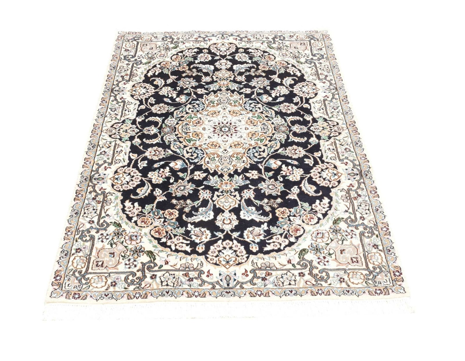 Nain Teppich 104 x 157cm, florales Muster, handgeknüpft, Perserteppich
