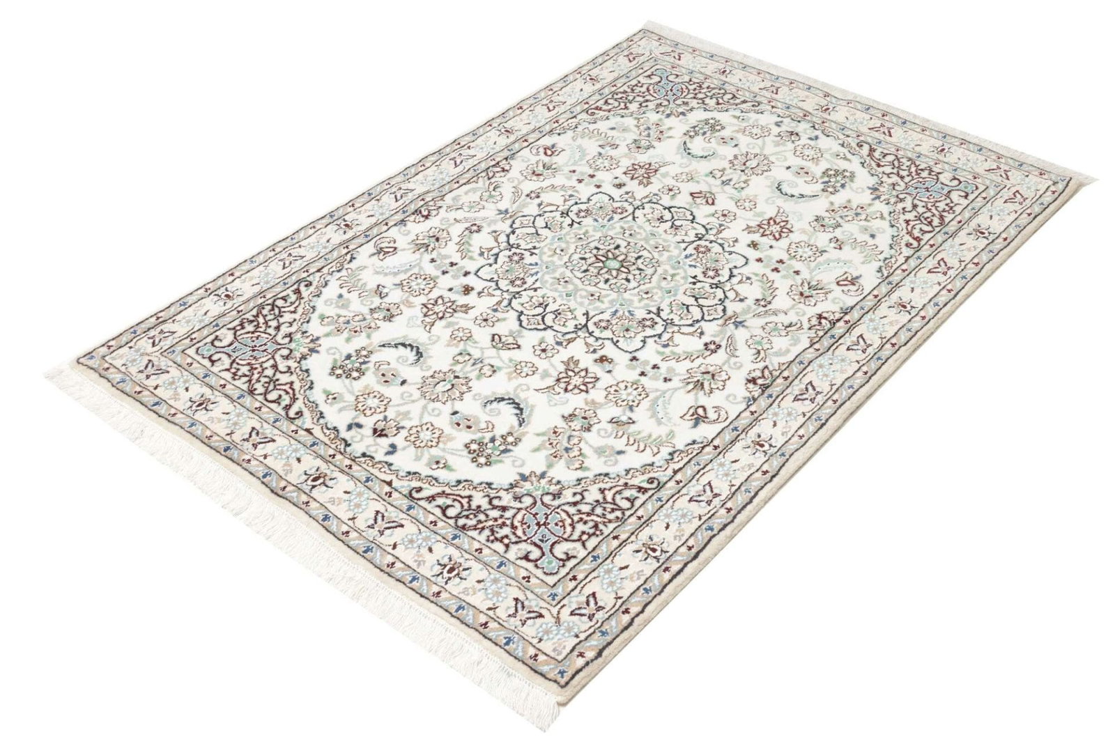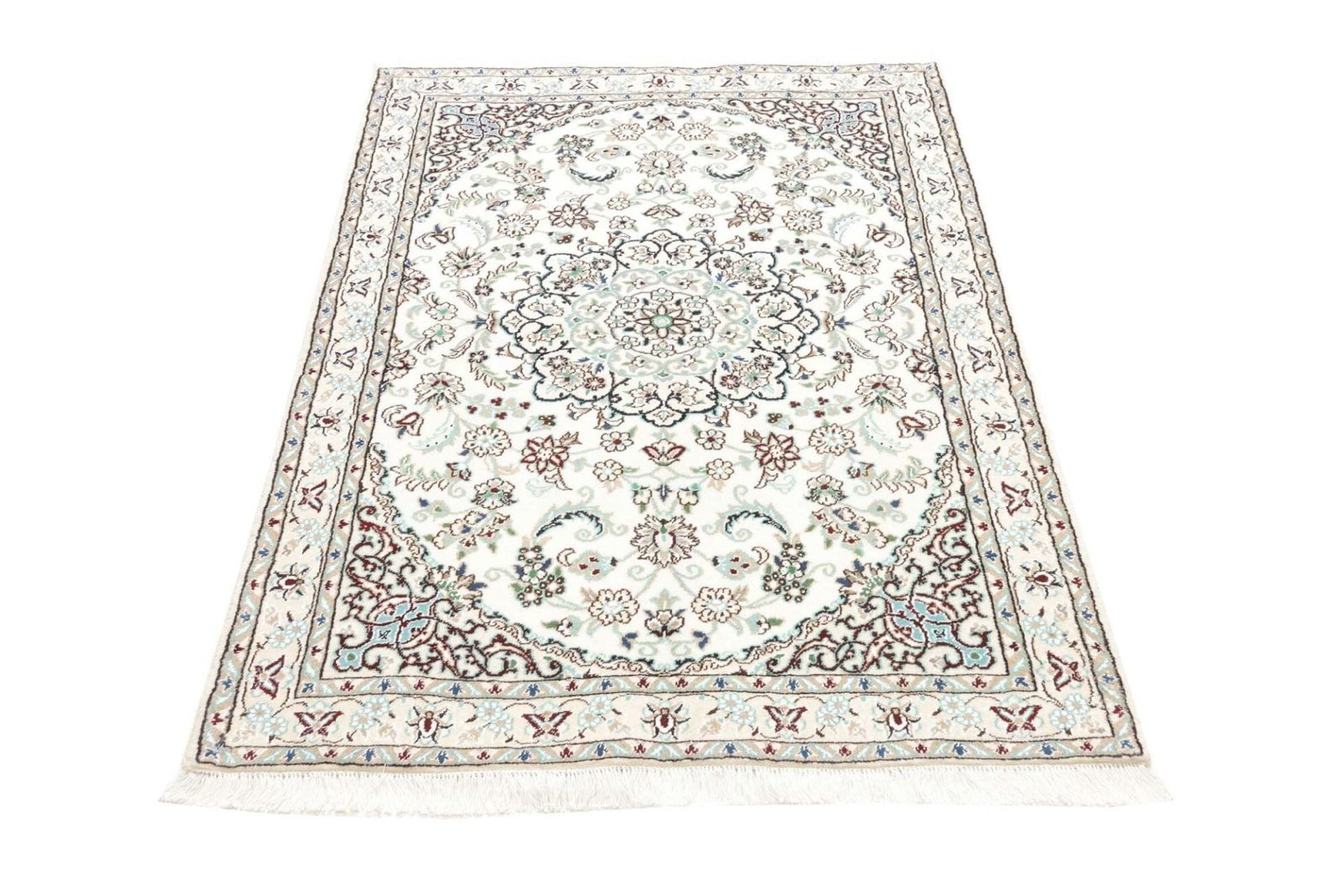 Nain Teppich 105 x 144 cm, florales Muster, handgeknüpft, Perserteppich