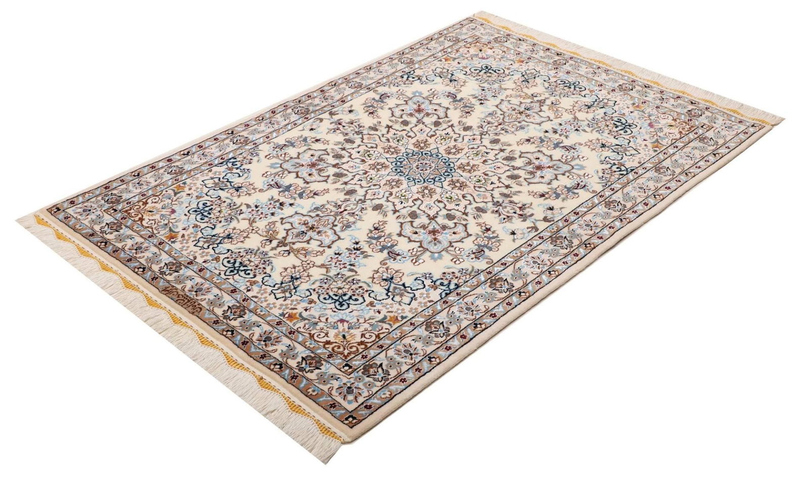 3121$Ursprünglicher Preis war: 3121$2492$Aktueller Preis ist: 2492$Nain Teppich | Knotendichte: ca. 900.000 Knoten/m² | Material: 100% Schurwolle (Flor) und 100% Baumwolle (Kette) | Größe: 106 x 147 cm | Handgeknüpfte Qualität | Ursprung: Nain, Iran | Höhe: ca. 5-7 mm | Exklusive, florale Musterung mit hellem Grundton und königsblauen Akzenten