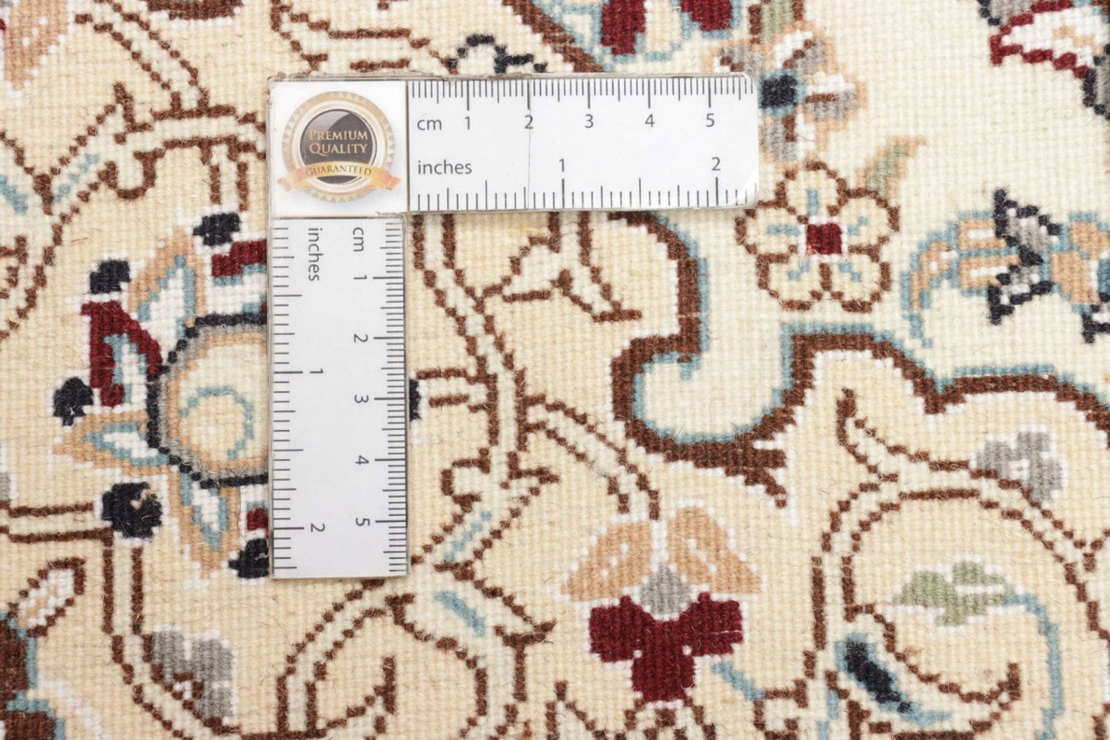 Der Nain Teppich mit floralen Mustern ist ein exquisit handgeknüpfter Orientteppich, der mit erstklassiger Schurwolle gefertigt wurde. Seine detailreiche Gestaltung und das harmonische Farbschema machen ihn nicht nur zu einem dekorativen Element, sondern auch zu einem Ausdruck von traditioneller Handwerkskunst. Jeder Teppich erzählt eine Geschichte und dieser Nain Teppich ist da keine Ausnahme.