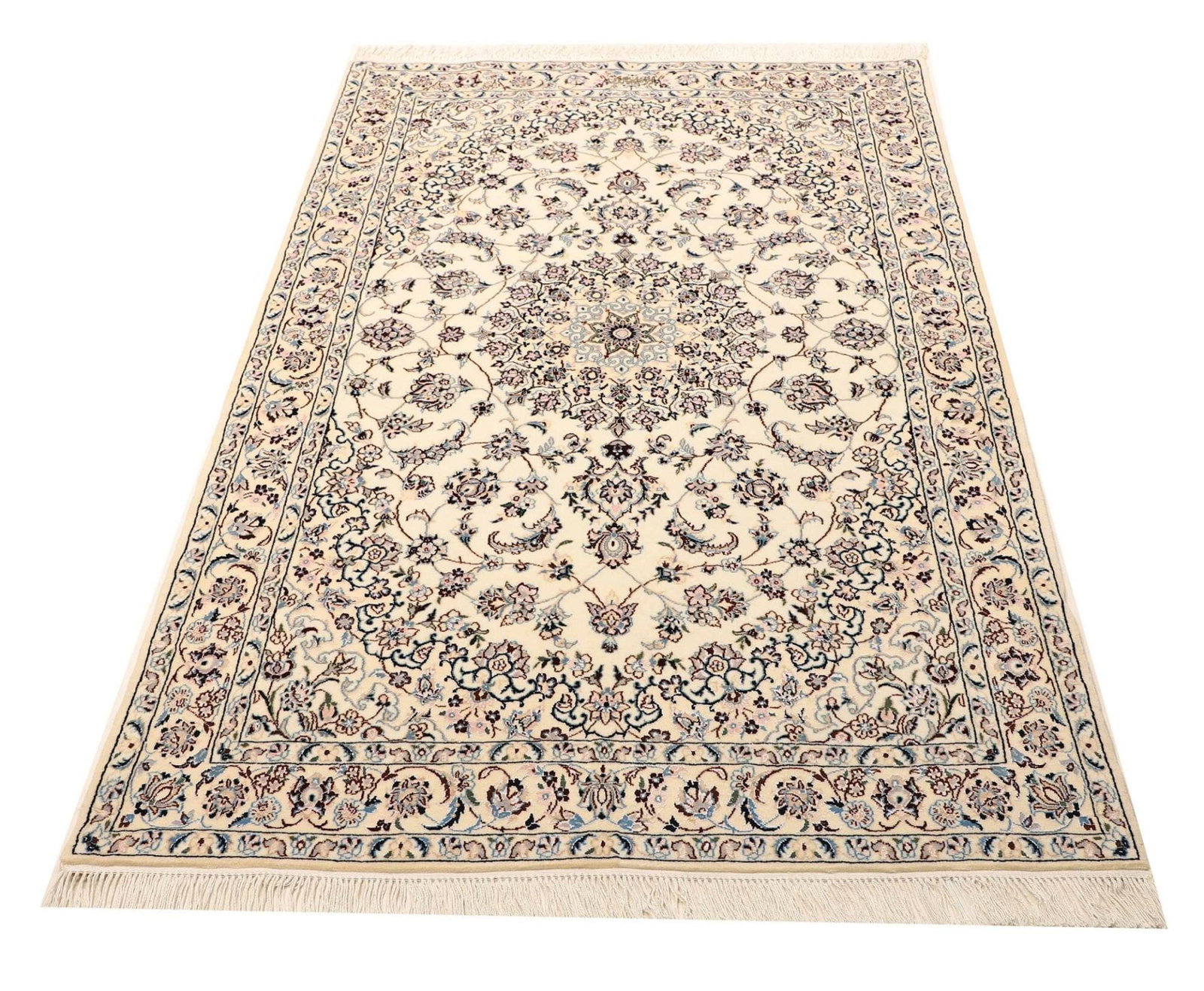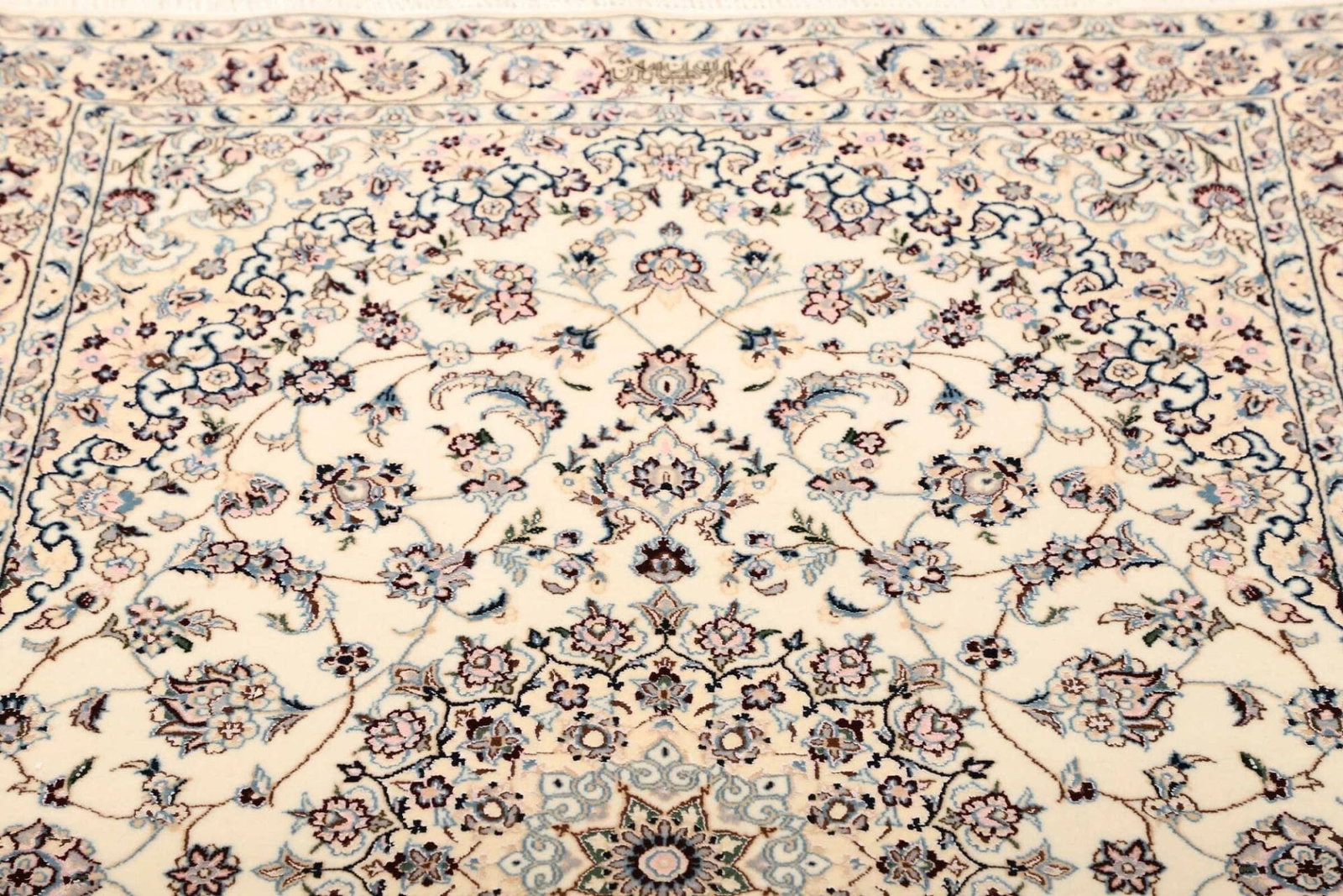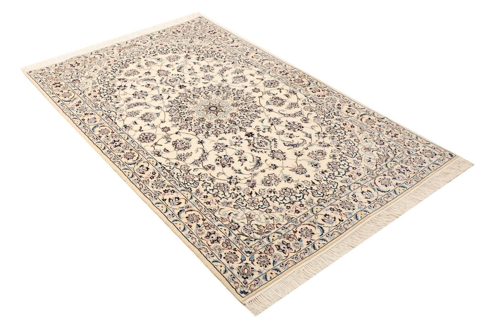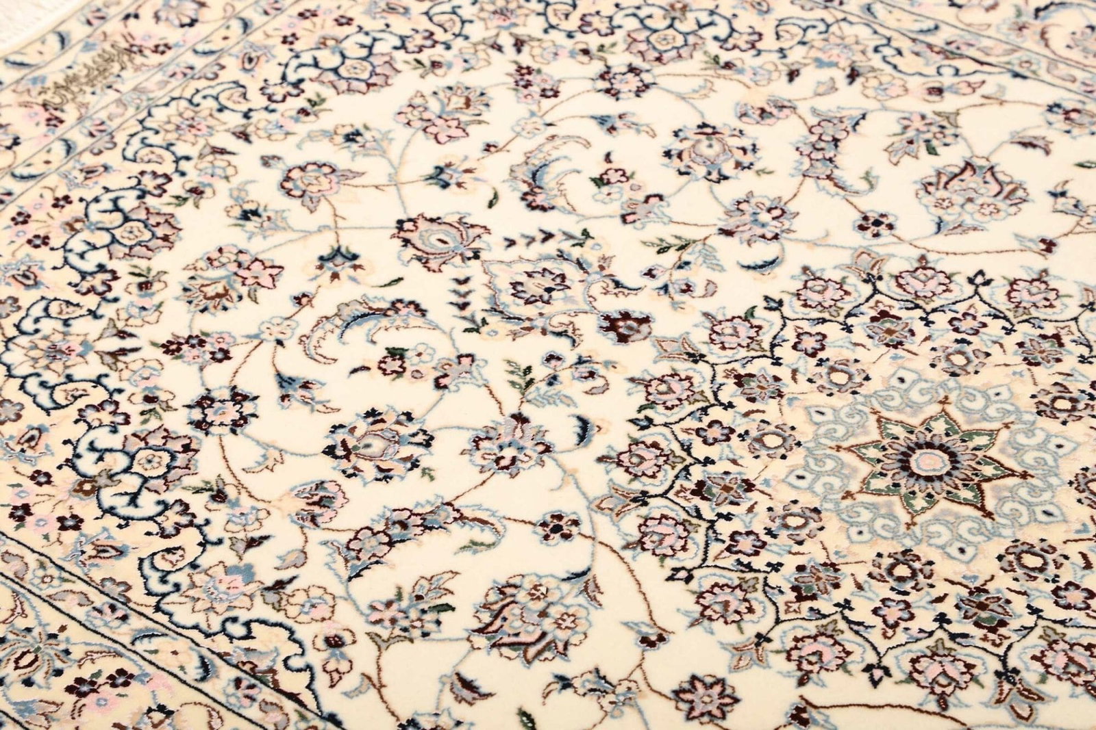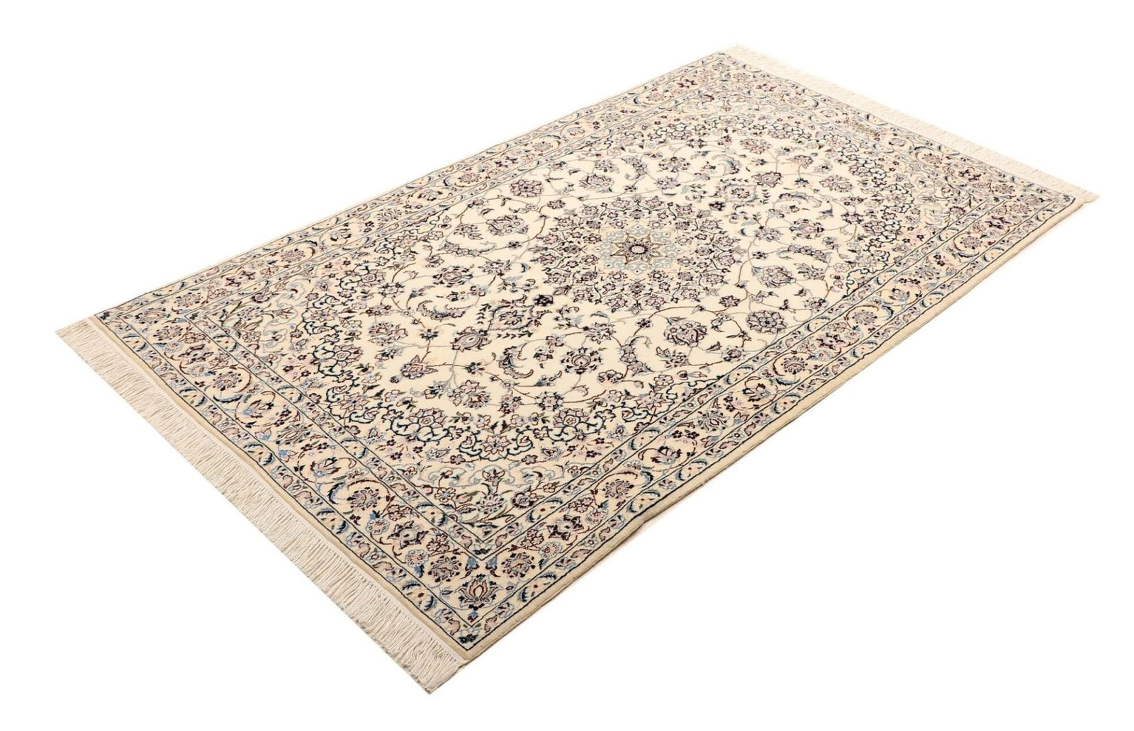 Nain Teppich | Knotendichte: ca. 900.000 Knoten/m² | Material: 100% Schurwolle (Flor), 100% Baumwolle (Kette) | Größe: 106 x 165 cm | Herkunft: Iran | Zustand: Handgeknüpft, exklusive Qualität | Muster: Klassische florale Motive mit königsblauem Ton