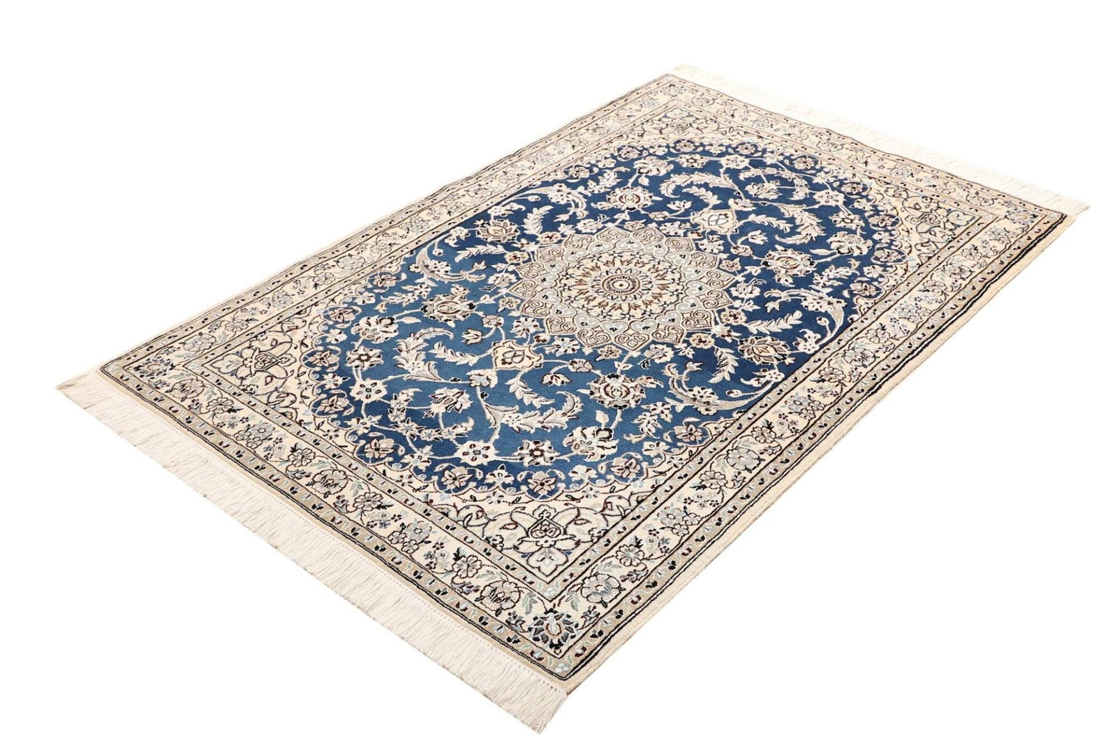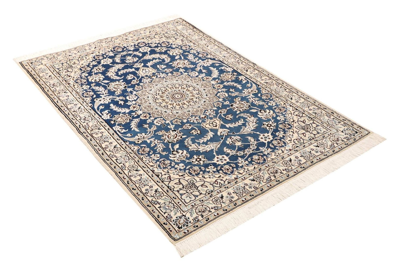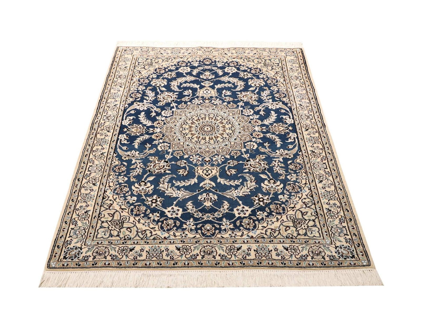 Nain Teppich | Knotendichte: ca. 500.000 Knoten/m² | Material: 100% Schurwolle (Flor), 100% Baumwolle (Kette) | Größe: 107 x 147 cm | Herkunft: Iran | Zustand: Exklusiv handgeknüpft | Muster: Klassische florale Motive
