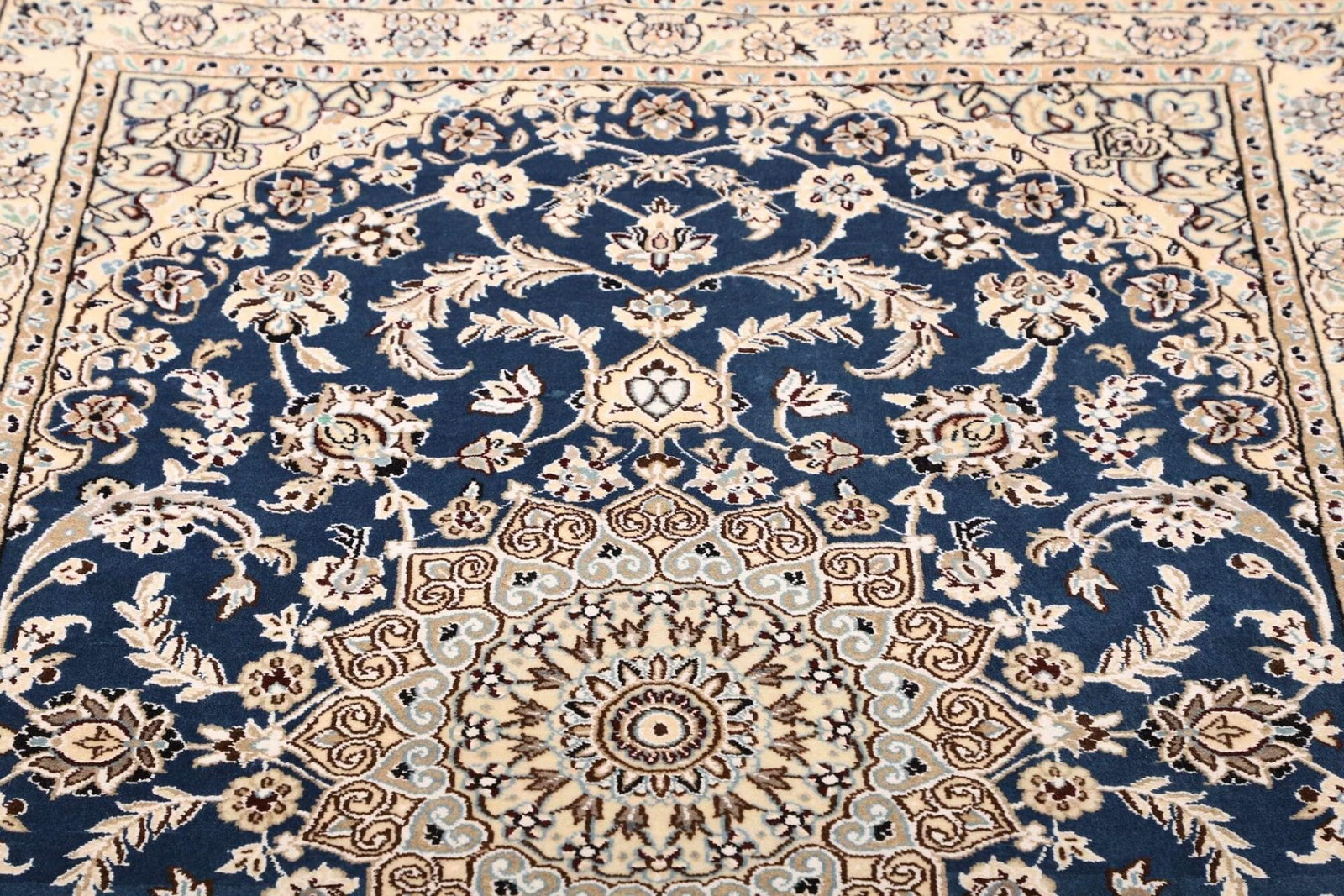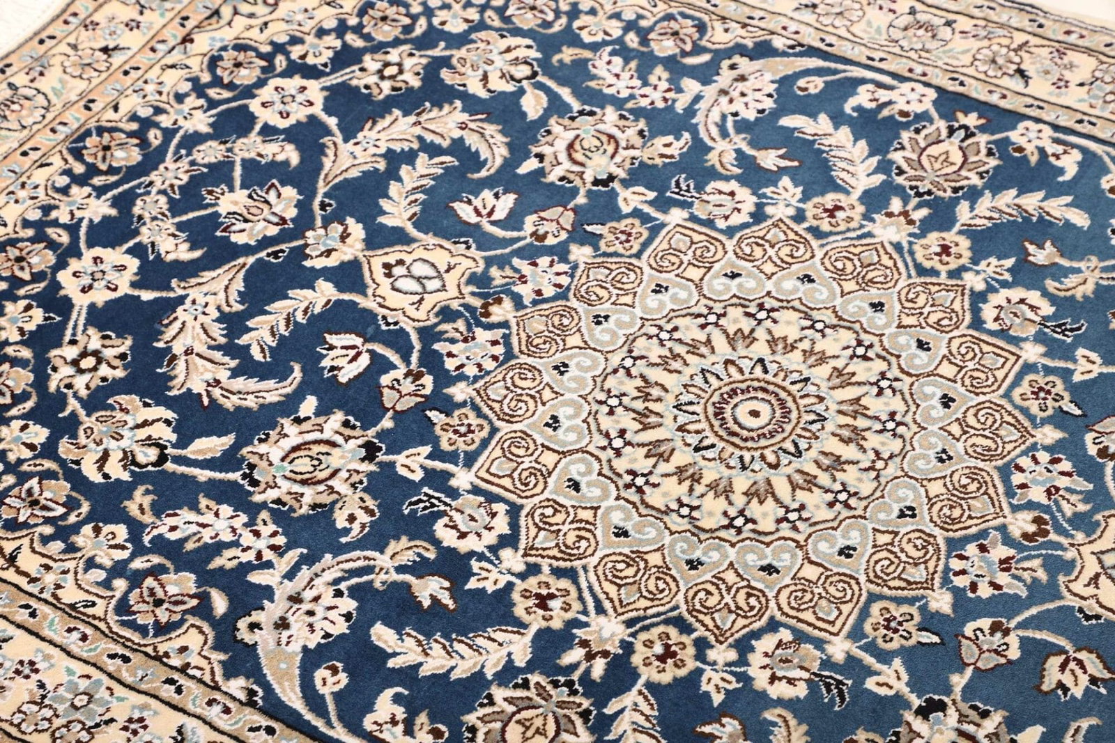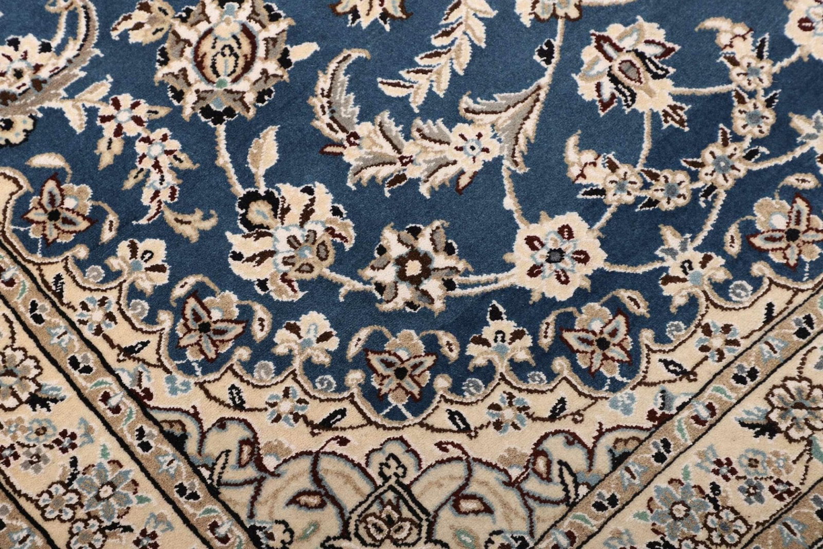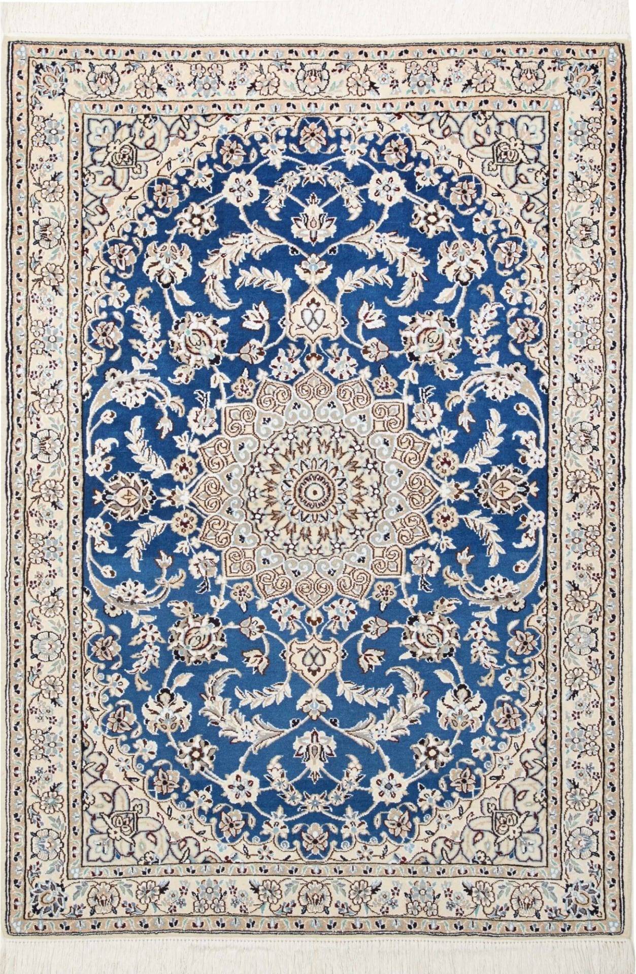Nain Teppich | Knotendichte: ca. 500.000 Knoten/m² | Material: 100% Schurwolle (Flor), 100% Baumwolle (Kette) | Größe: 107 x 147 cm | Herkunft: Iran | Zustand: Exklusiv handgeknüpft | Muster: Klassische florale Motive