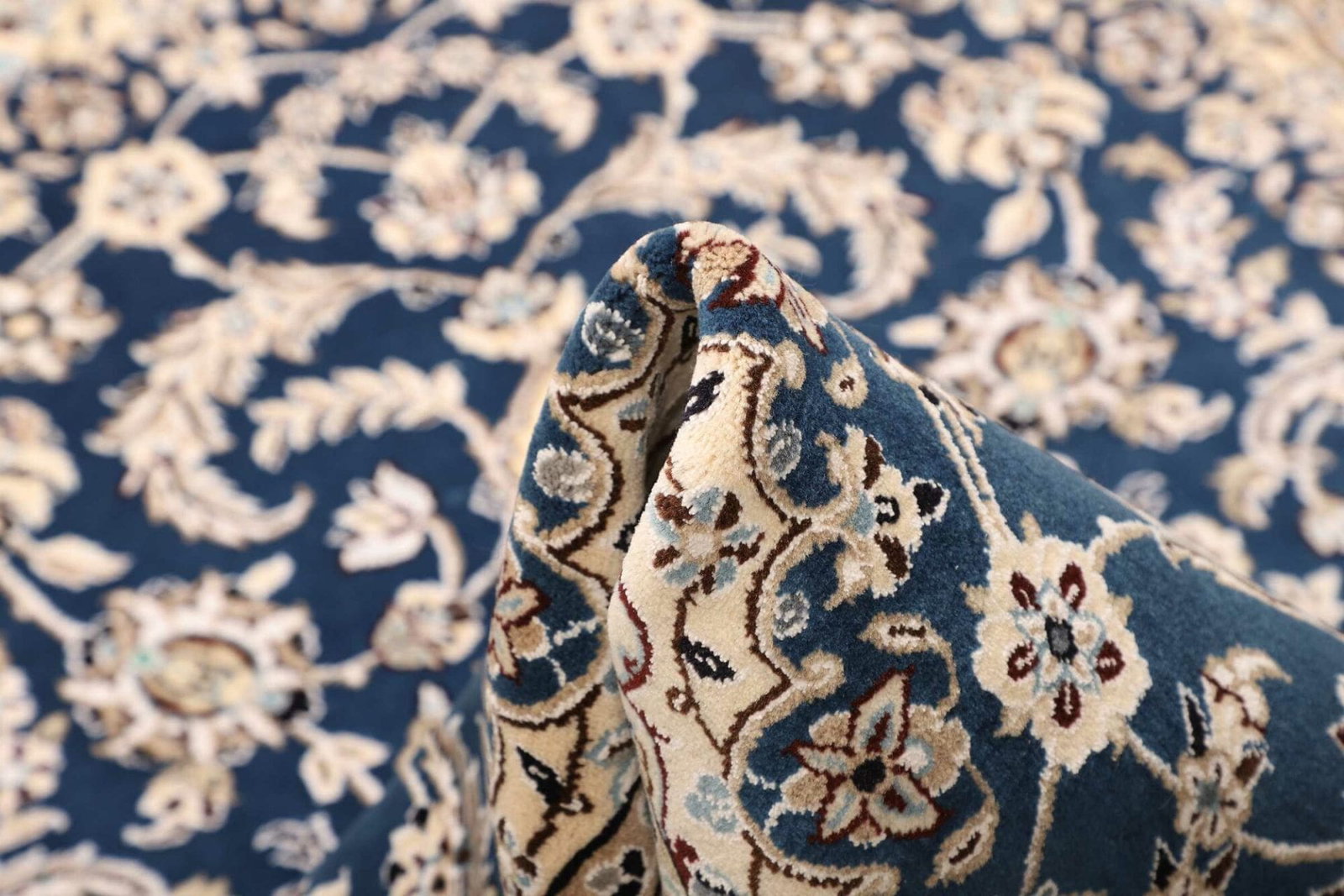 Ein Nain Teppich wird handgeknüpft, was bedeutet, dass jeder Knoten per Hand gesetzt wird, um die Feinarbeit und die hohe Knotendichte zu erreichen. Dies erfordert Geschicklichkeit und Erfahrung, sodass die Teppiche von erfahrenen Handwerkern hergestellt werden, die die Traditionen der Region bewahren.