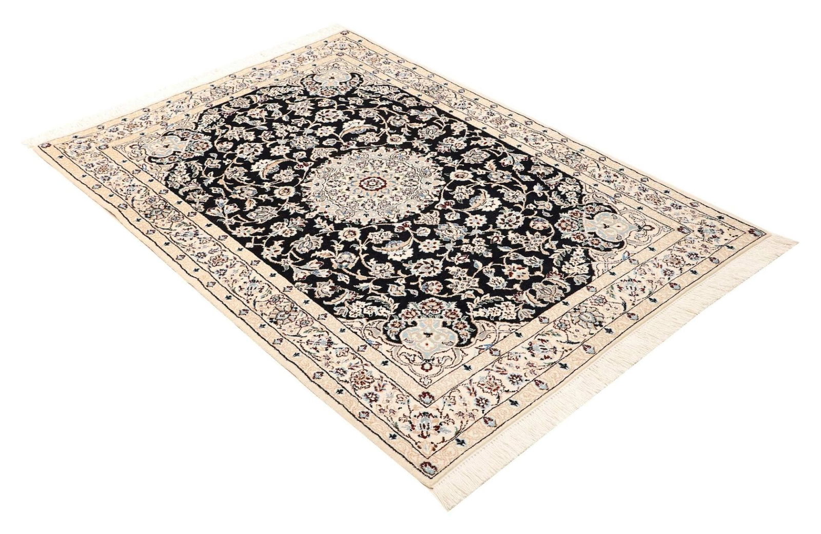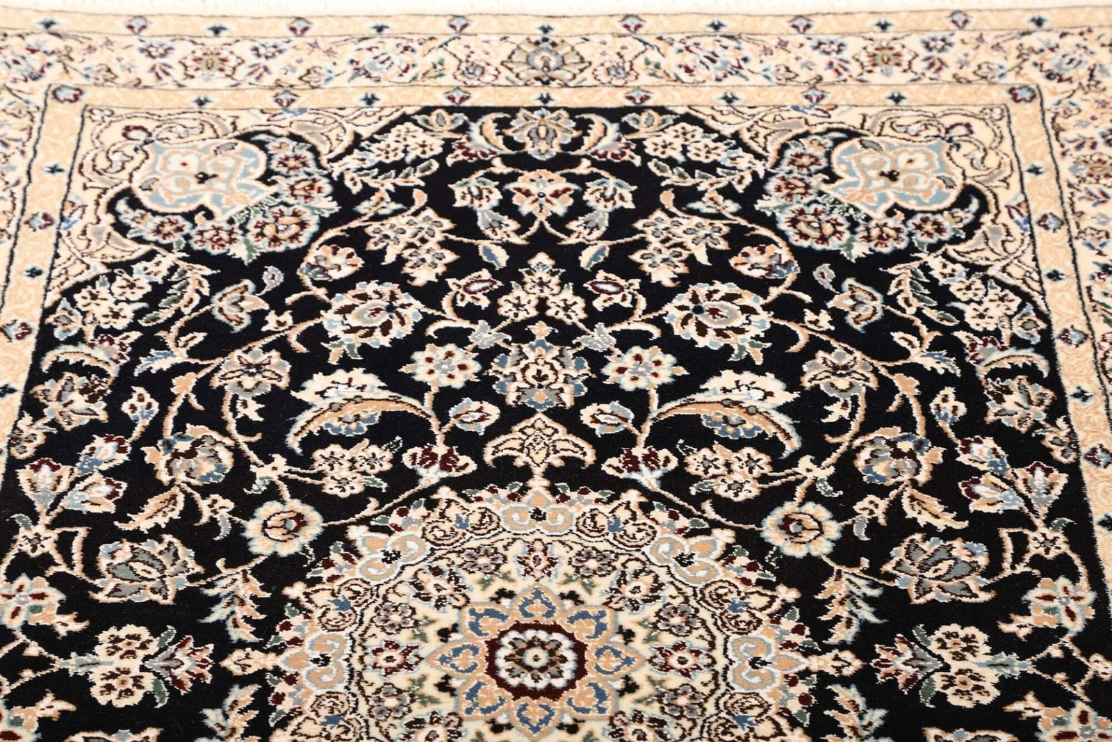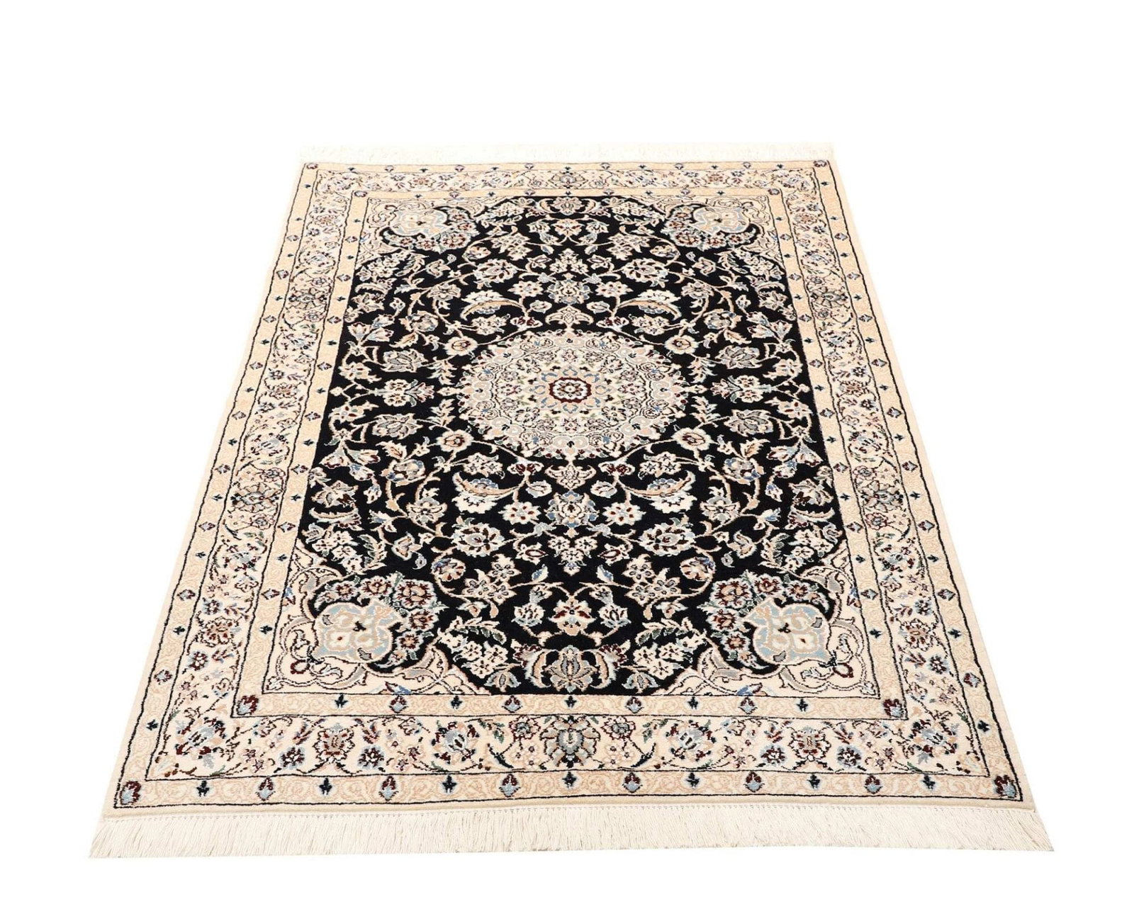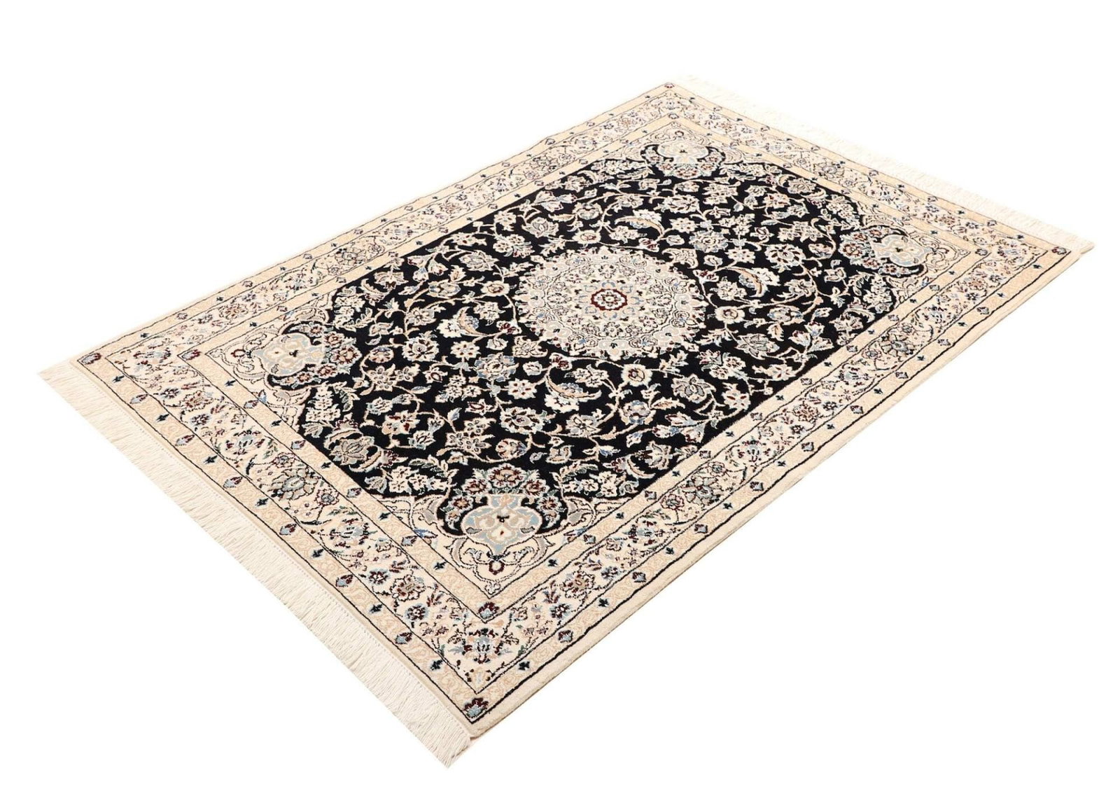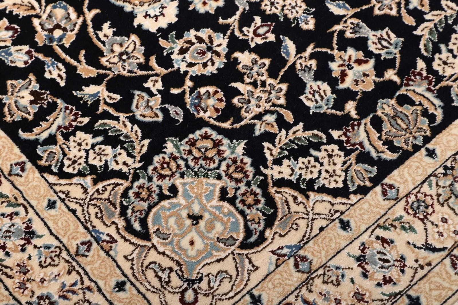 Nain Teppich 107 x 147cm, florales Muster, Schurwolle, handgeknüpft