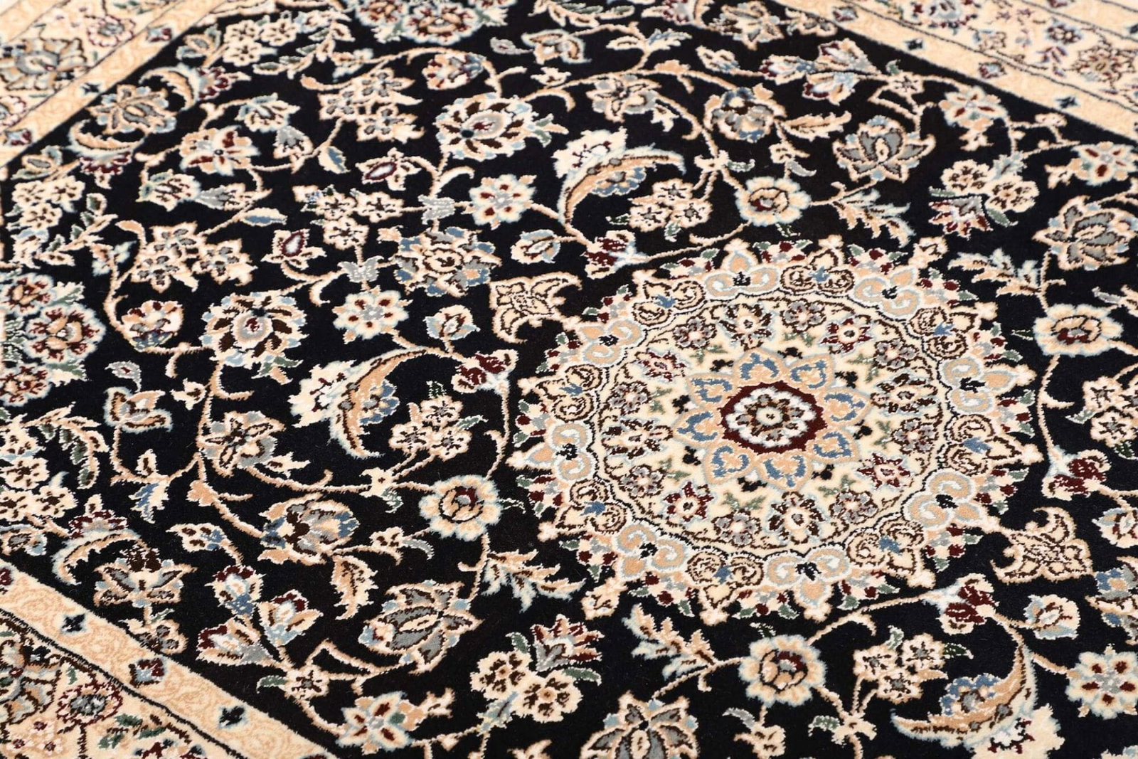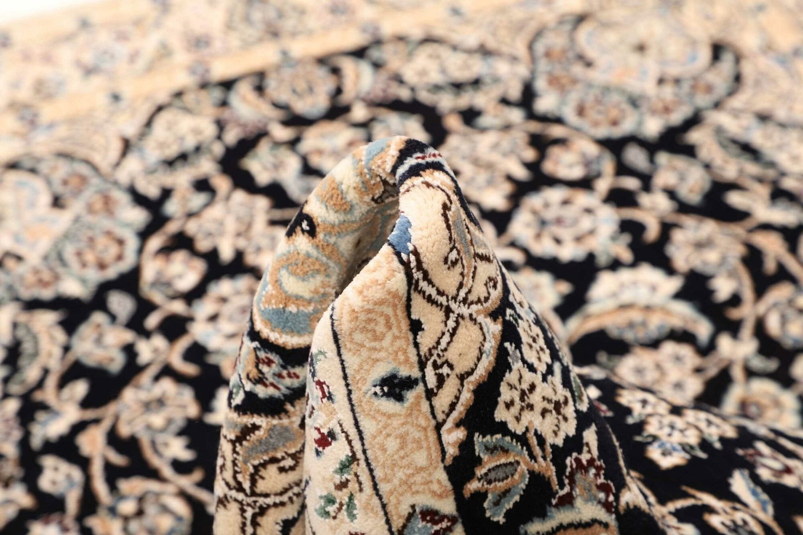 Nain befindet sich in der Provinz Isfahan im Iran, die für ihre reiche Teppichtradition bekannt ist. Die Stadt Nain hat eine lange Geschichte in der Herstellung von Teppichen, die bis ins 19. Jahrhundert zurückreicht. Teppiche aus Nain sind besonders begehrt, weil sie oft aufwändige florale Muster und feine, klare Farben aufweisen, die durch die Verwendung hochwertiger Schurwolle verstärkt werden. Diese Teppiche spiegeln die kulturellen Einflüsse der Region wider und sind ein Synonym für Eleganz und Luxus.