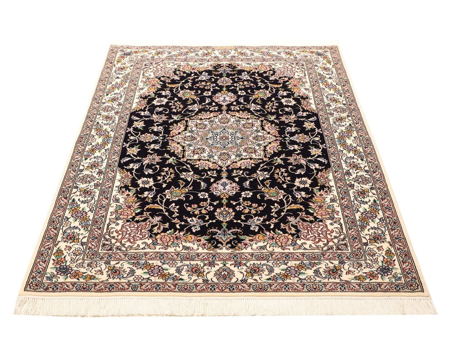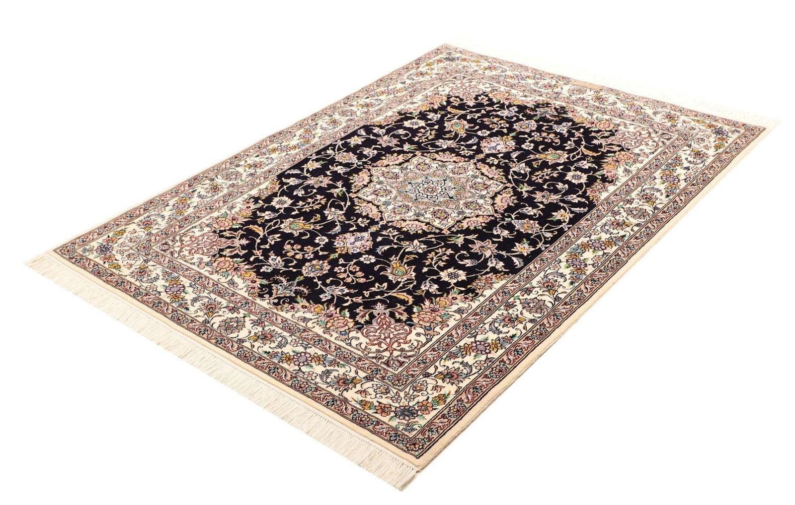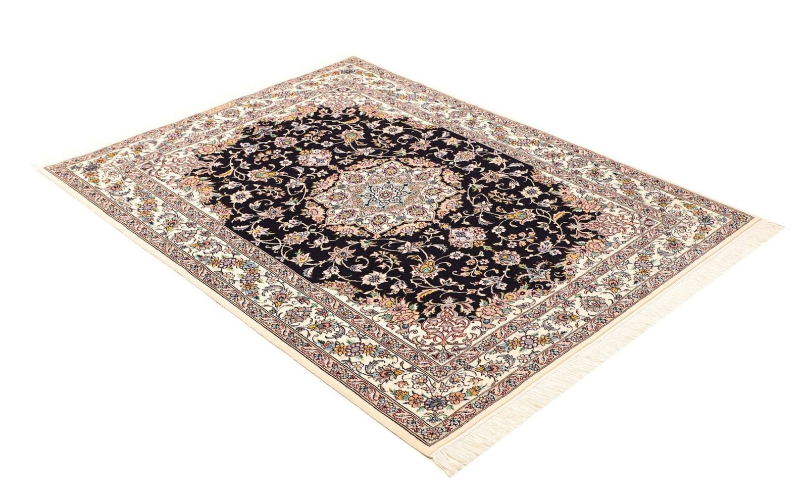 Nain Teppich 121 x 162 cm, florales Muster, handgeknüpft, Perserteppich