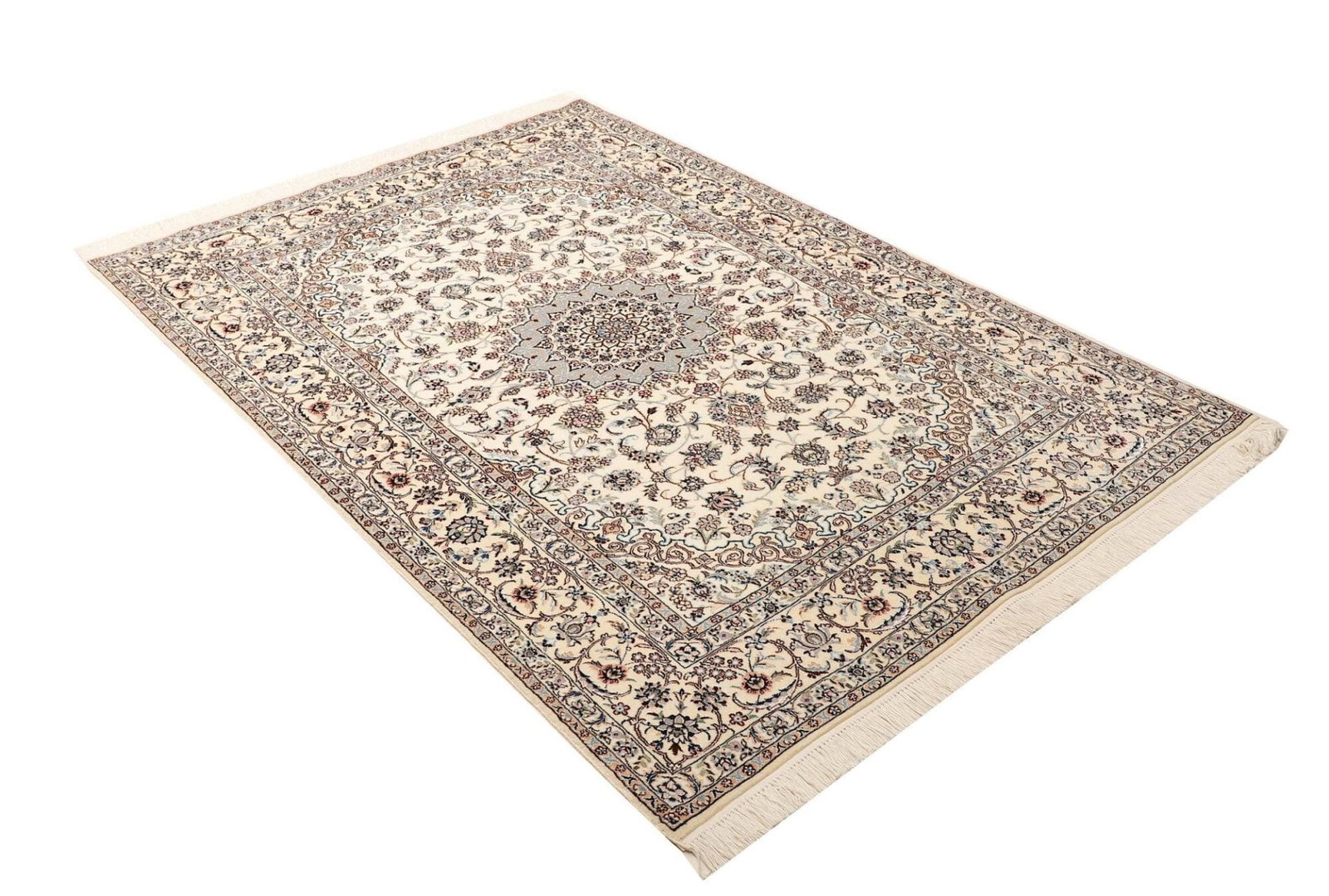 Nain Teppich | Knotendichte: ca. 900.000 Knoten/m² | Flor: 100% Schurwolle | Kette: 100% Baumwolle | Größe: 128 x 184 cm | Herkunft: Iran | Zustand: Handgeknüpft, exklusive Qualität | Muster: Klassische florale und geometrische Motive