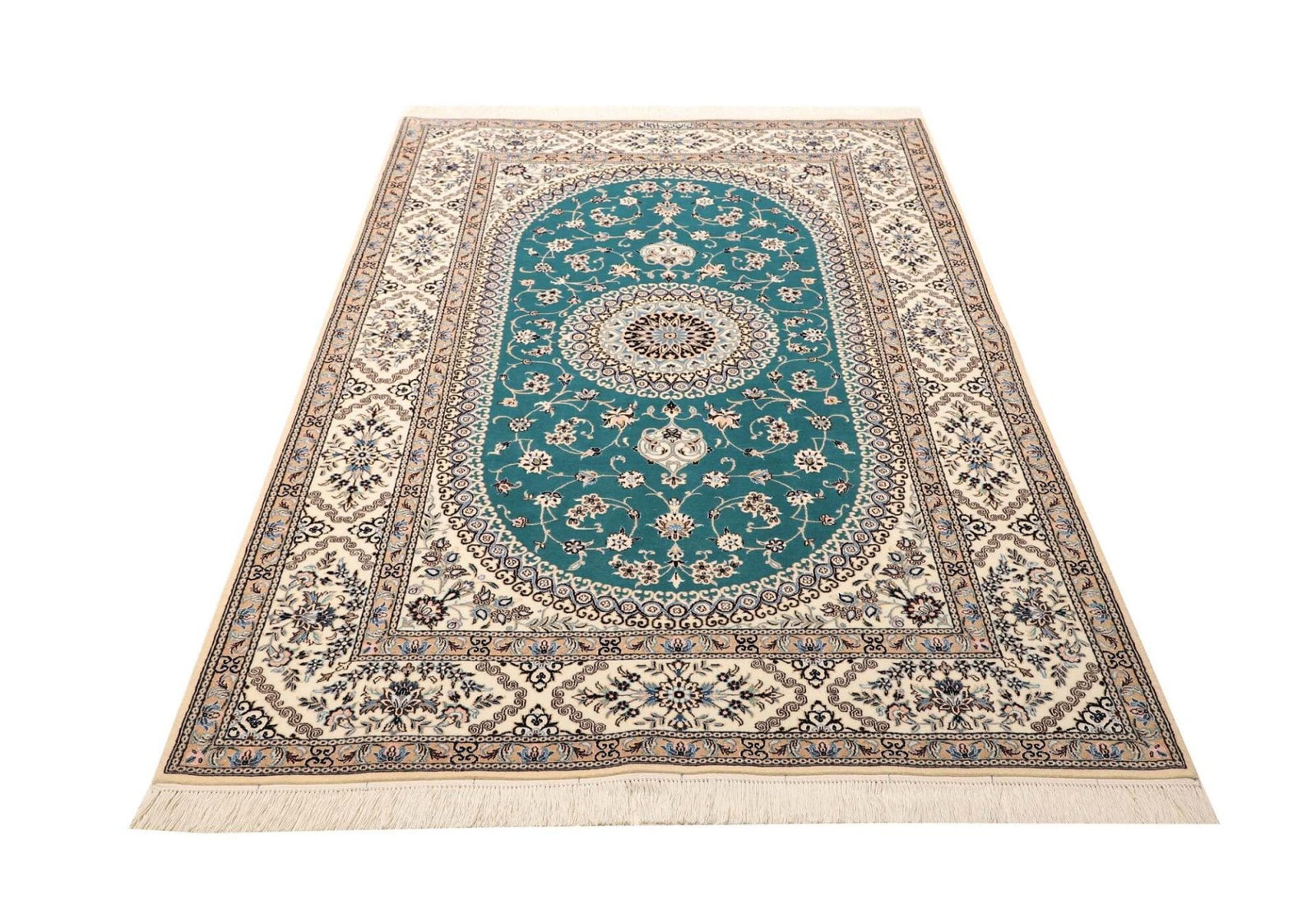 Nain Teppich 129 x 199 cm, florale Muster, Schurwolle, handgeknüpft