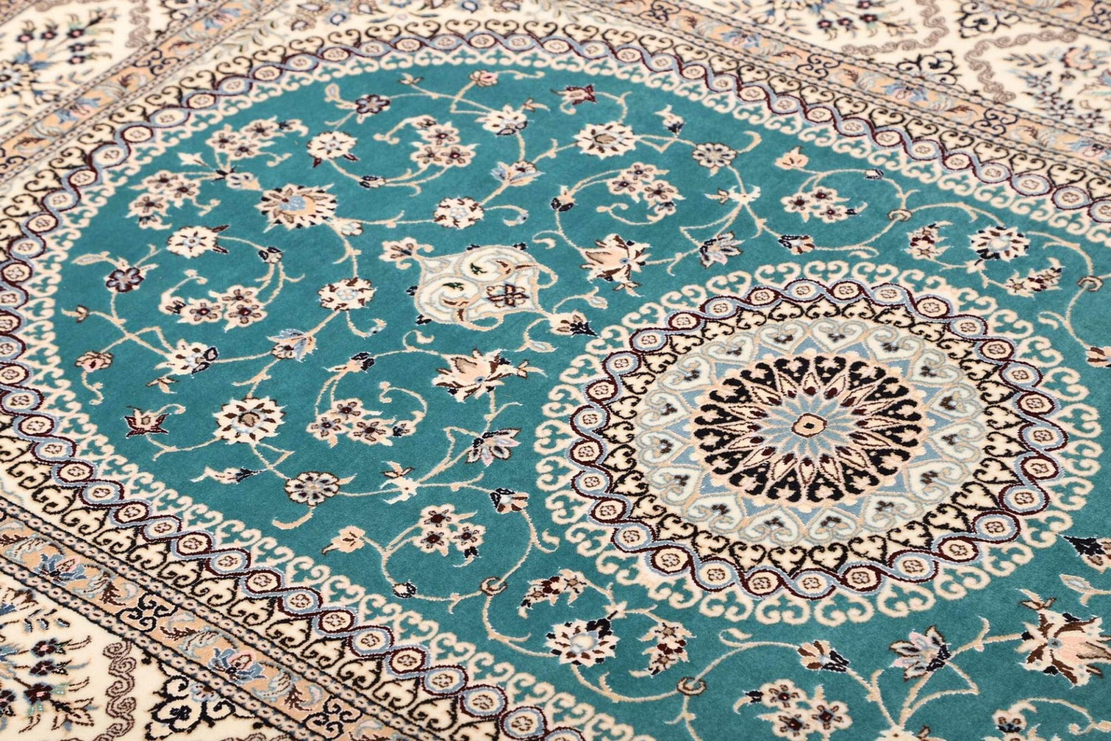 (Verkauft) W1 (#228) NEU ca. 245x245cm Handgeknüpfter Nain Perserteppich mit Seide 12la