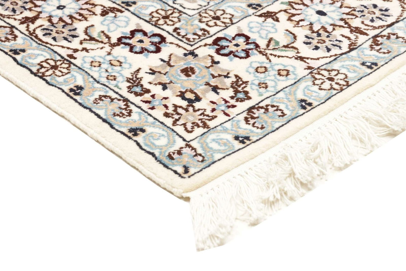 2590$Ursprünglicher Preis war: 2590$2147$Aktueller Preis ist: 2147$Nain Teppich | Knotendichte: ca. 500.000 Knoten/m² | Material: 100% Schurwolle im Flor, 100% Baumwolle in der Kette | Größe: 133 x 205 cm | In ausgezeichnetem handgeknüpften Zustand | Herkunft: Iran | Muster: Klassische florale Motive in hellem Grundton mit königsblauen Akzenten