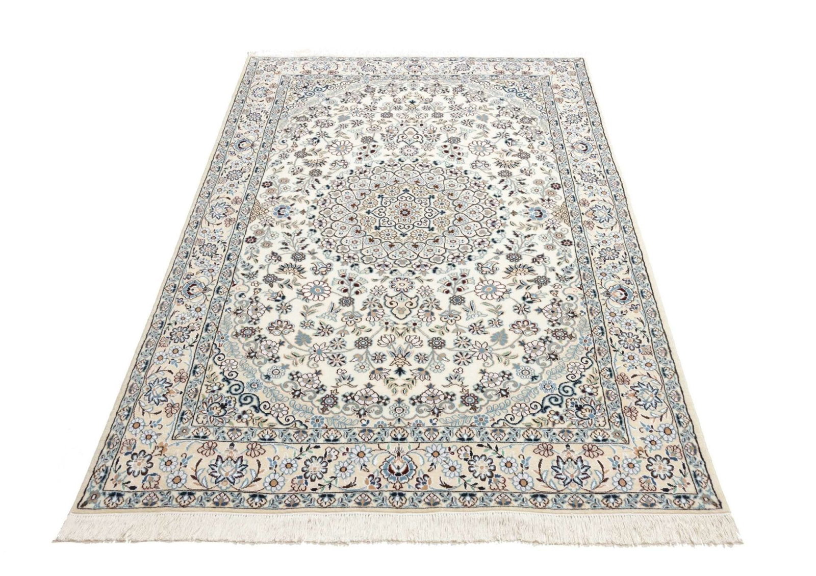 Nain Teppich | Knotendichte: ca. 500.000 Knoten/m² | Material: 100% Schurwolle | Größe: 133×212 cm | Herkunft: Iran | Zustand: Exklusiv und hochwertig | Verarbeitung: Handgeknüpft | Kette: 100% Baumwolle | Muster: Florale und geometrische Motive