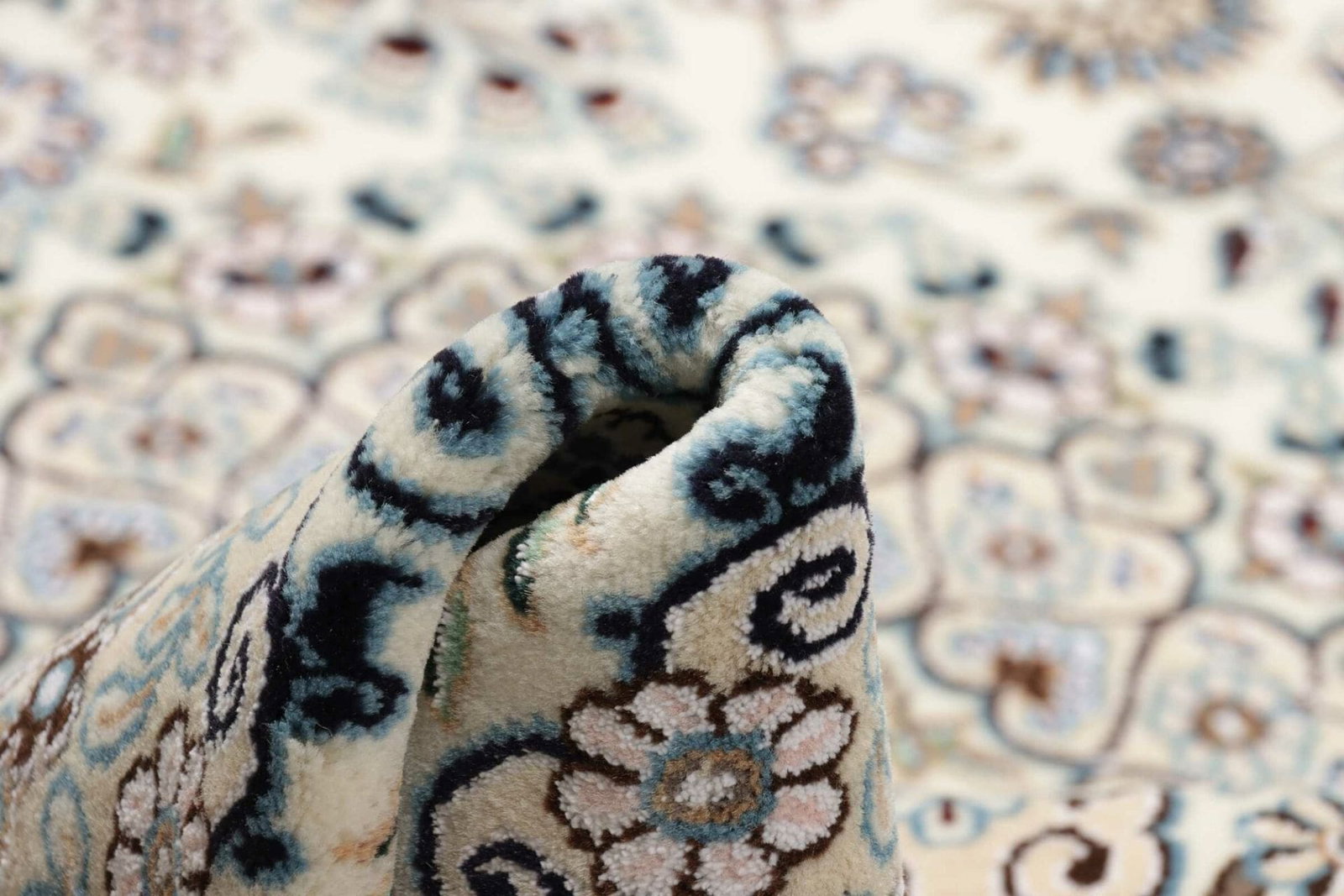 Florale Muster dominieren das Design des Nain Teppichs. Diese Muster sind oft von der Natur inspiriert und reichen von zarten Blüten bis hin zu umfangreichen Blatt- und Rankenmotiven. Die Farbpalette umfasst häufig sanfte Töne wie Blau, Creme, Beige und Rot, die harmonisch aufeinander abgestimmt sind. Diese Farben bringen Wärme und Gemütlichkeit in jeden Raum und sorgen dafür, dass der Teppich zu einem zentralen Element der Raumgestaltung wird.