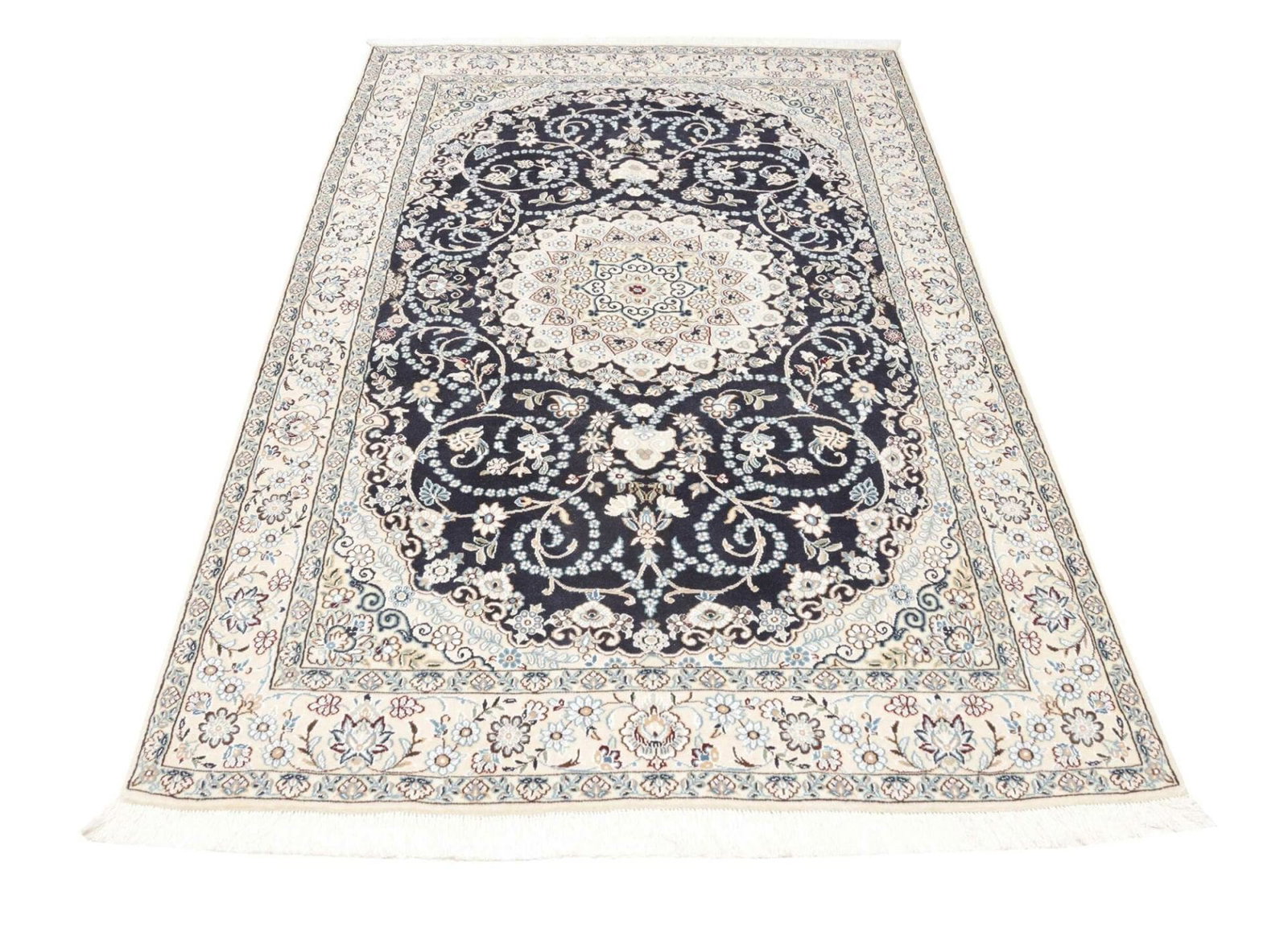 2612$Ursprünglicher Preis war: 2612$2228$Aktueller Preis ist: 2228$Nain Teppich | Knotendichte: ca. 500.000 Knoten/m² | Material: 100% Schurwolle (Flor), 100% Baumwolle (Kette) | Größe: 135 x 210 cm | Herkunft: Iran | Zustand: Sehr gut | Muster: Klassische florale Motive | Verarbeitung: Handgeknüpft