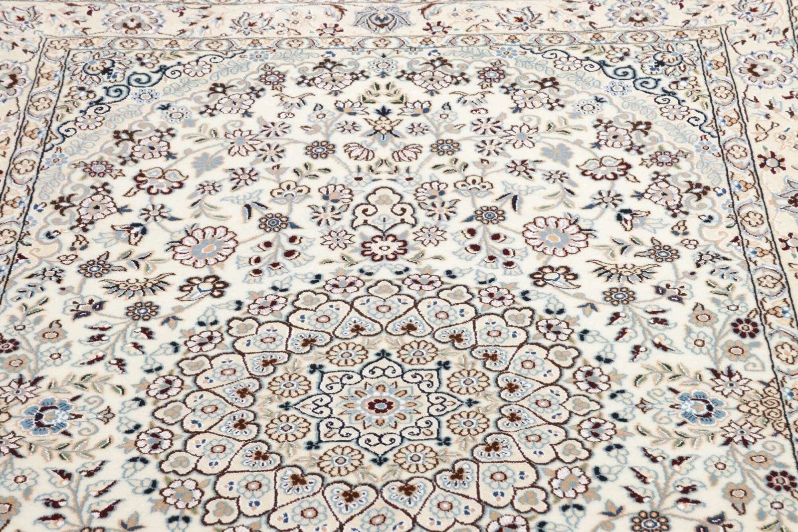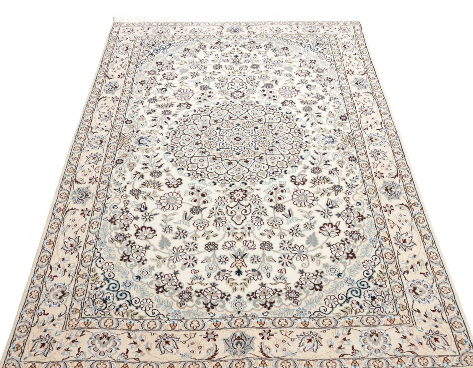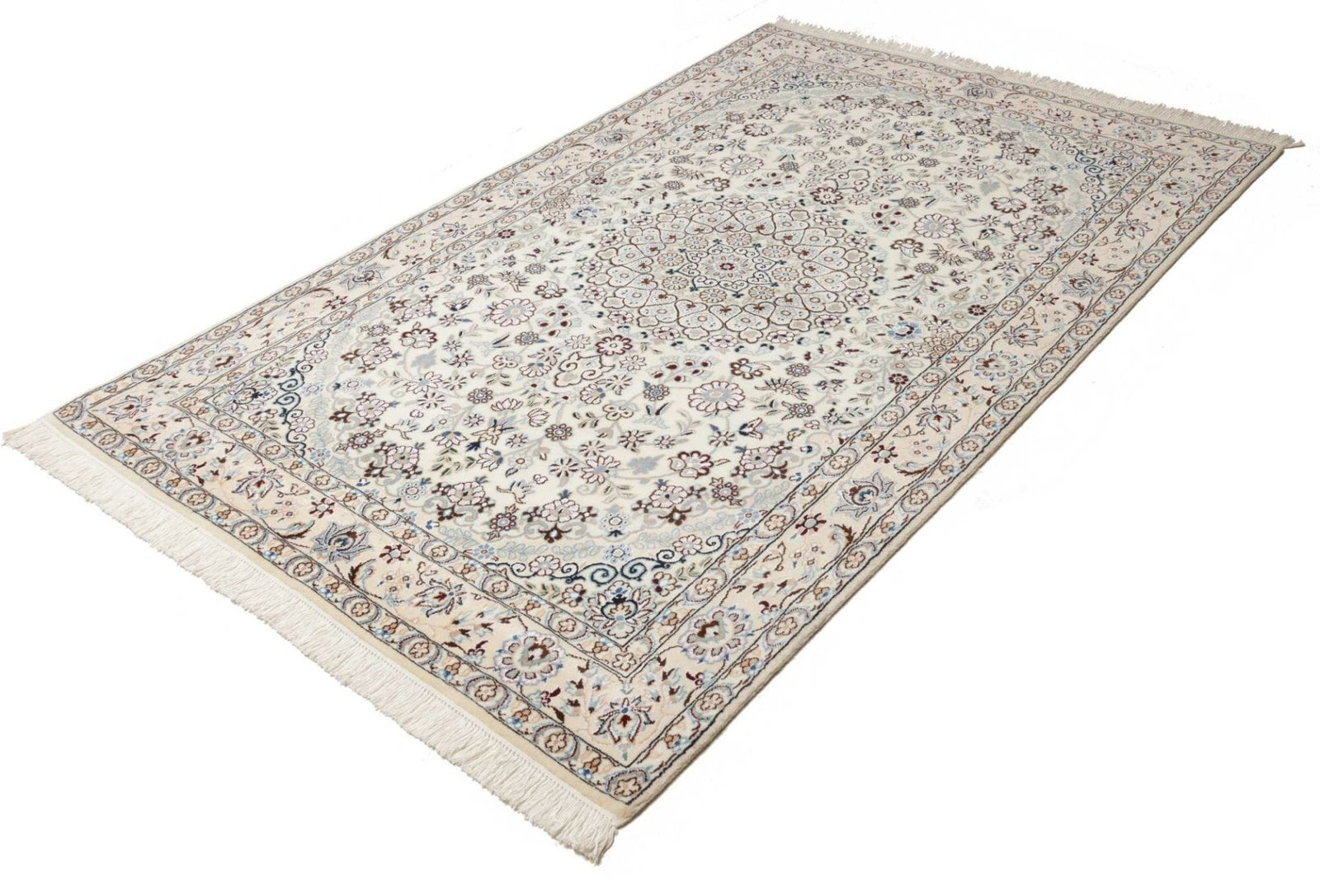 Nain Teppich 135 x 212 cm, florales Muster, handgeknüpft, Perserteppich