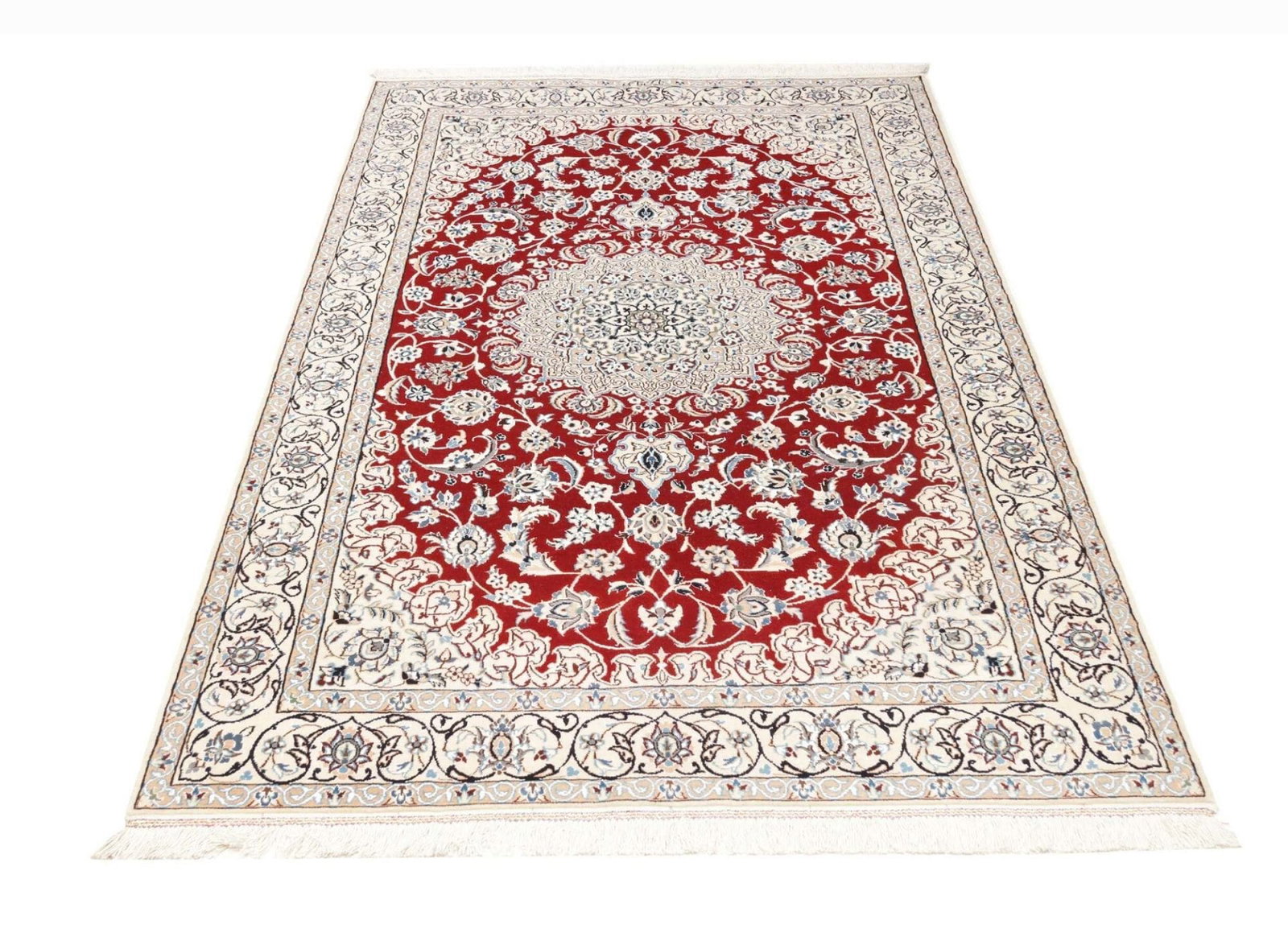 Nain Teppich | Knotendichte: ca. 500.000 Knoten/m² | Muster: Klassische florale Motive | Größe: 137 x 213 cm | Material: 100% Schurwolle (Flor), 100% Baumwolle (Kette) | Zustand: Exklusive handgeknüpfte Qualität | Ursprung: Iran