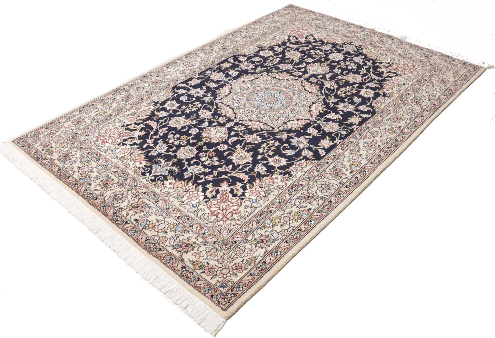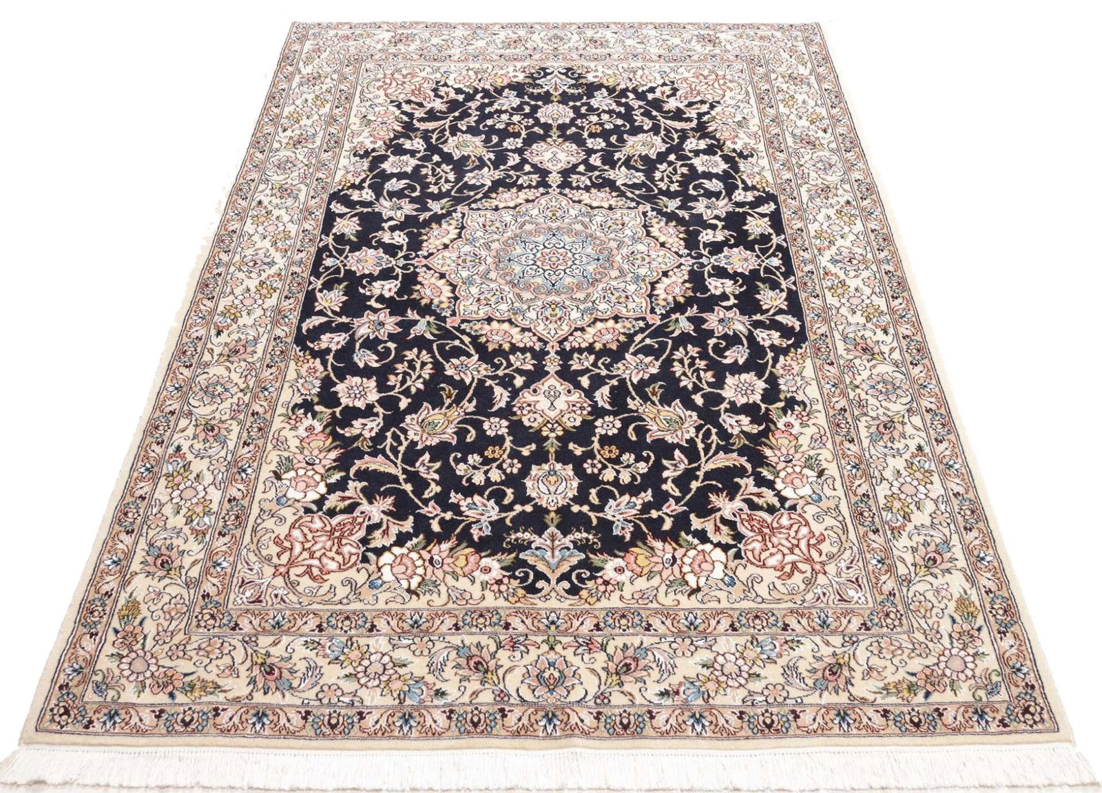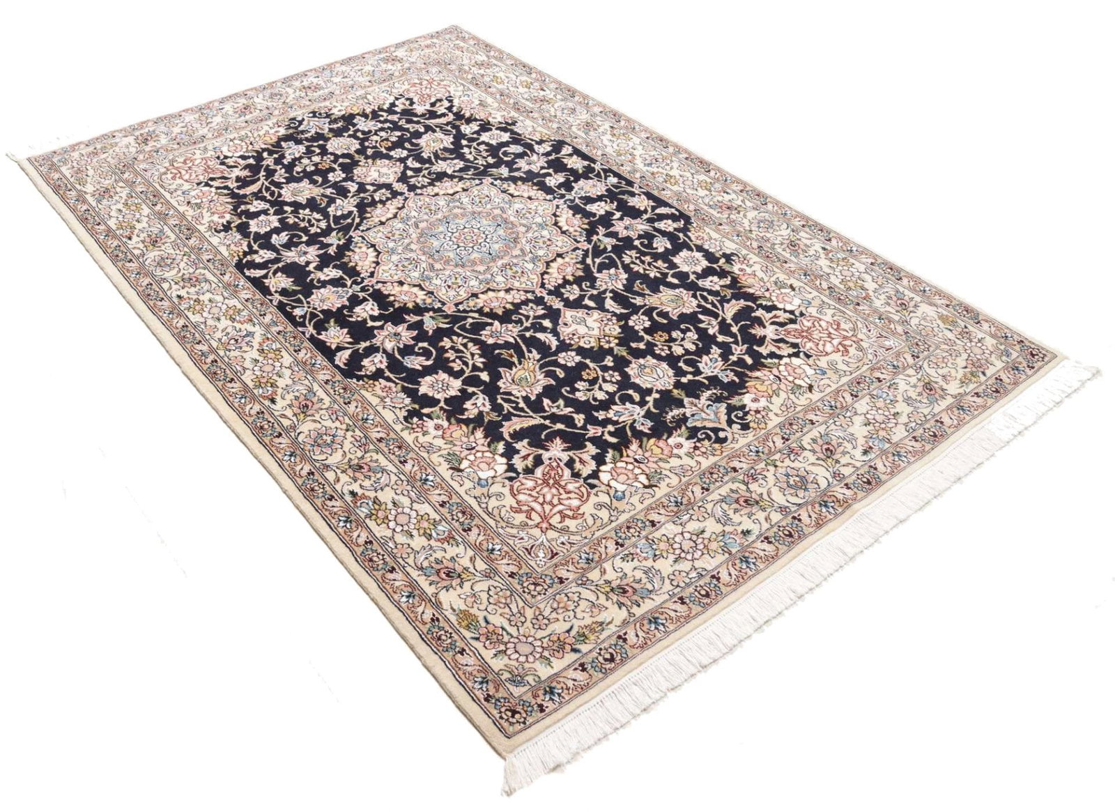 Nain Teppich 138 x 205cm, florales Muster, handgeknüpft, Perserteppich