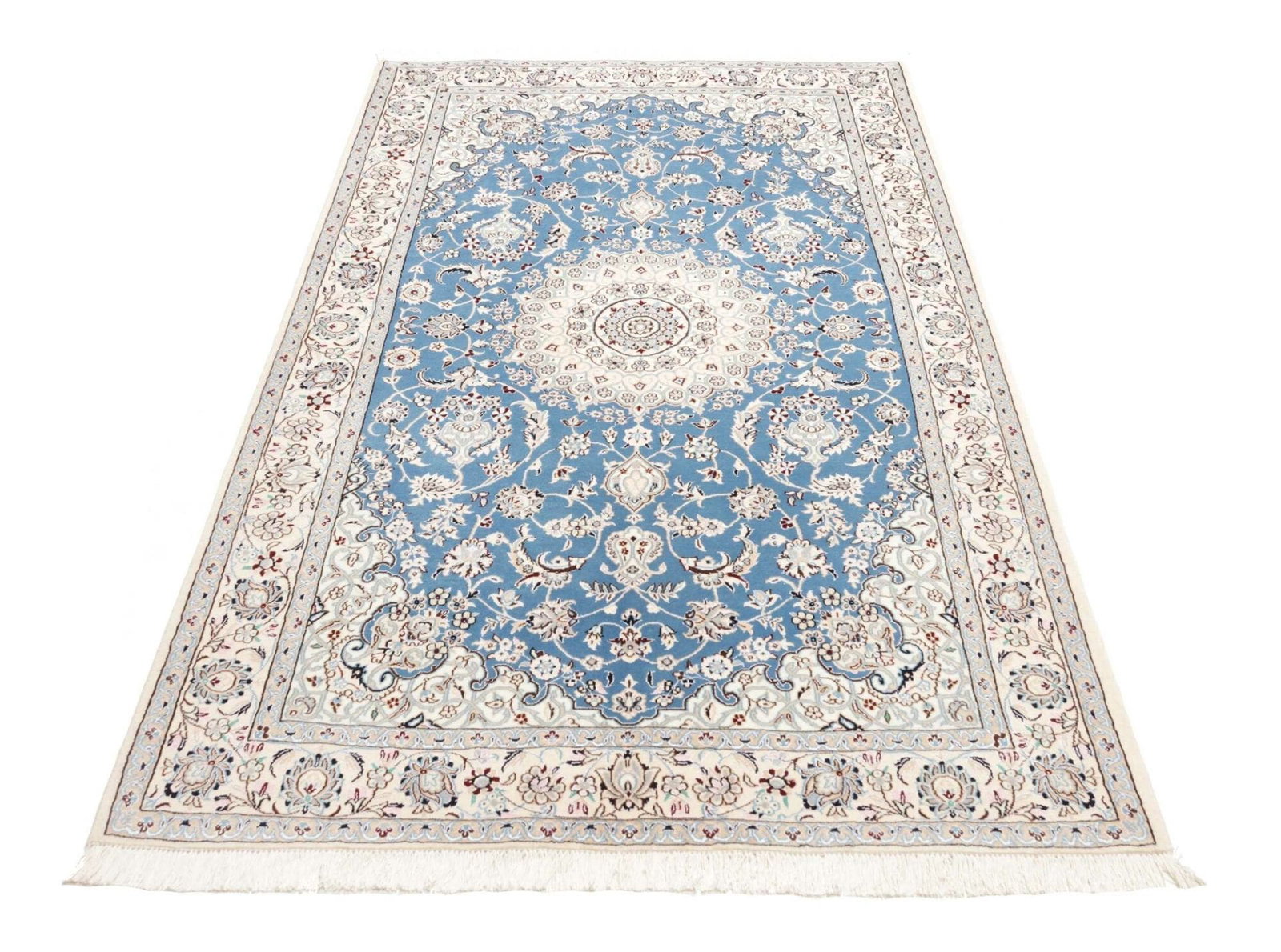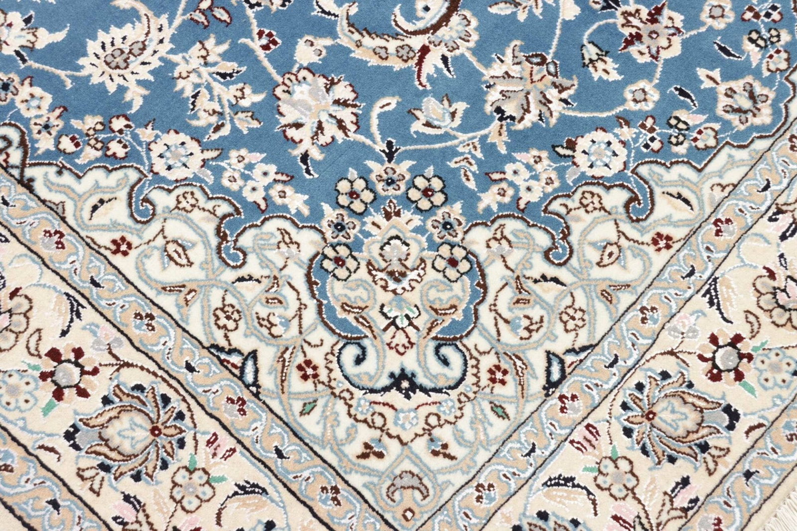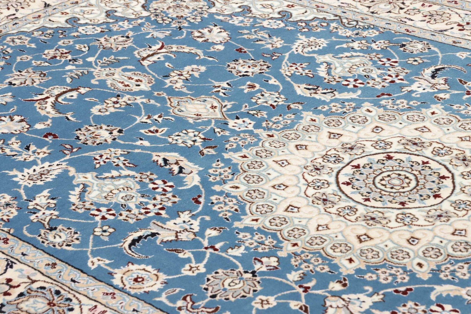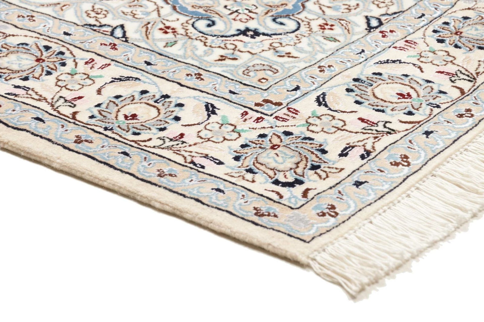 Die Qualität eines Nain Teppichs lässt sich durch die Knotendichte, die Qualität der verwendeten Schurwolle und die Präzision der Ausführung erkennen. Hochwertige Teppiche verfügen über eine gleichmäßige Struktur und lebendige Farben, die über die gesamte Fläche hinweg konsistent sind.