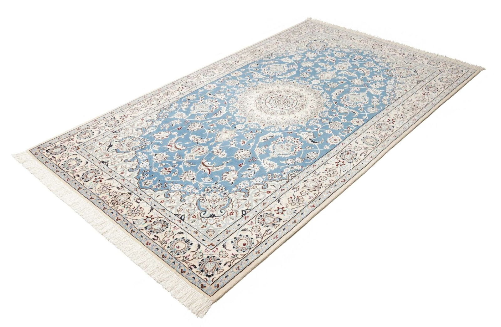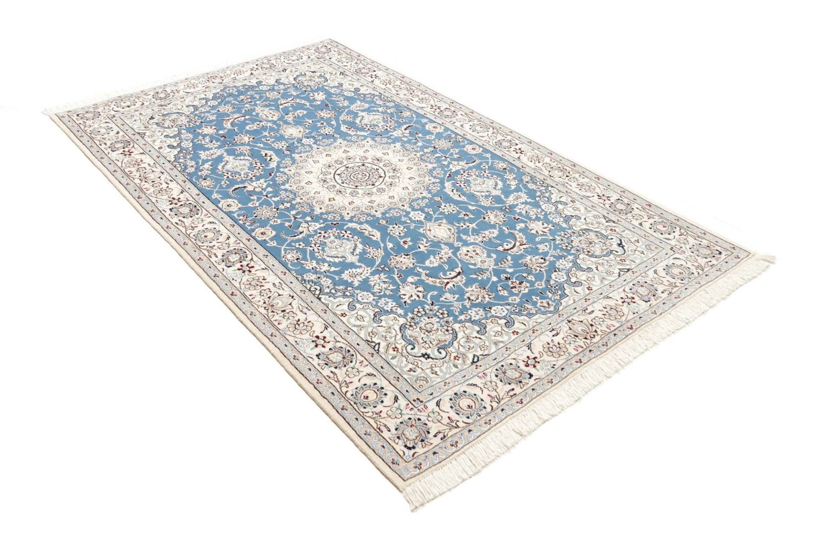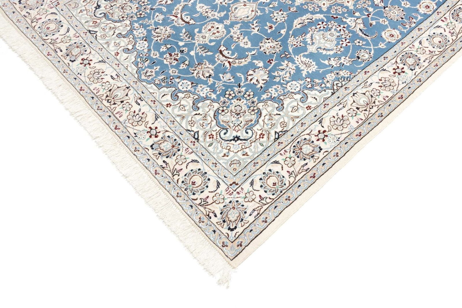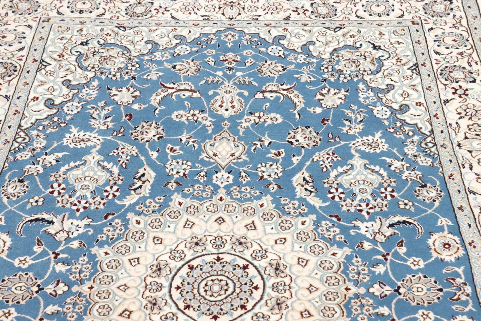 Die Qualität eines Nain Teppichs lässt sich durch die Knotendichte, die Qualität der verwendeten Schurwolle und die Präzision der Ausführung erkennen. Hochwertige Teppiche verfügen über eine gleichmäßige Struktur und lebendige Farben, die über die gesamte Fläche hinweg konsistent sind.