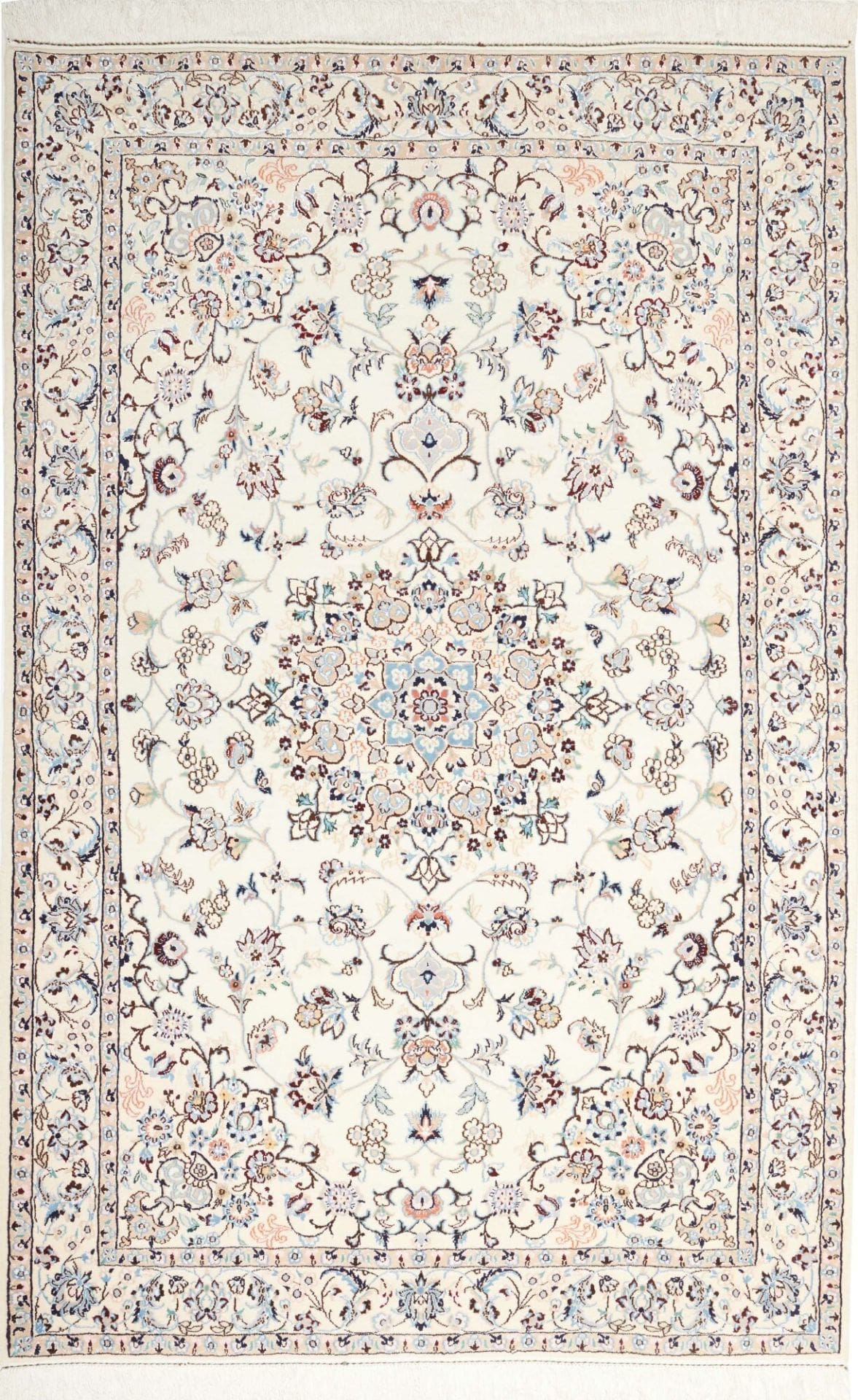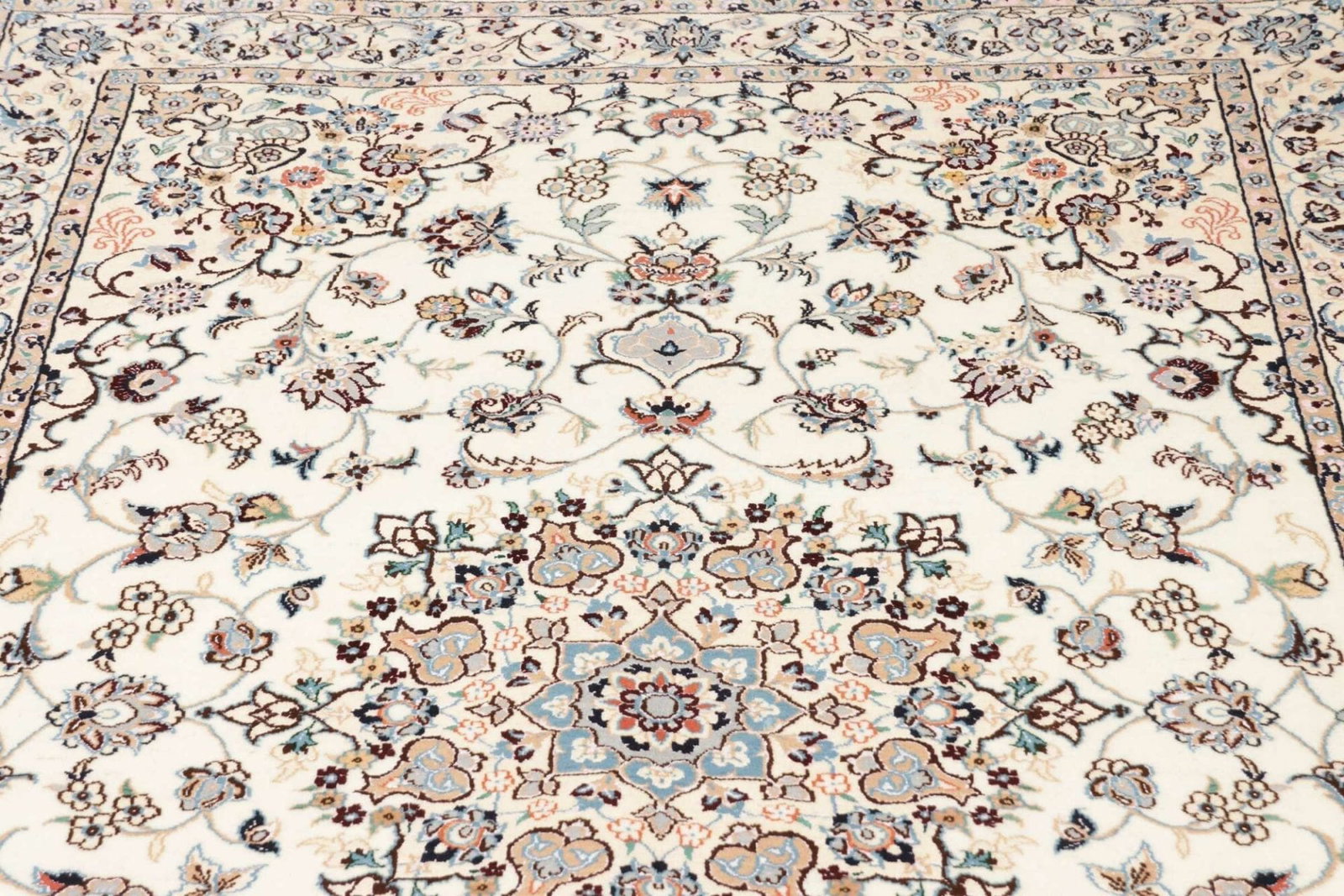 Nain Teppich | Knotendichte: ca. 500.000 Knoten/m² | Material: 100% Schurwolle (Flor), 100% Baumwolle (Kette) | Größe: 141 x 214 cm | In ausgezeichnetem Zustand | Herkunft: Iran | Handgeknüpft | Exklusive florale Musterung