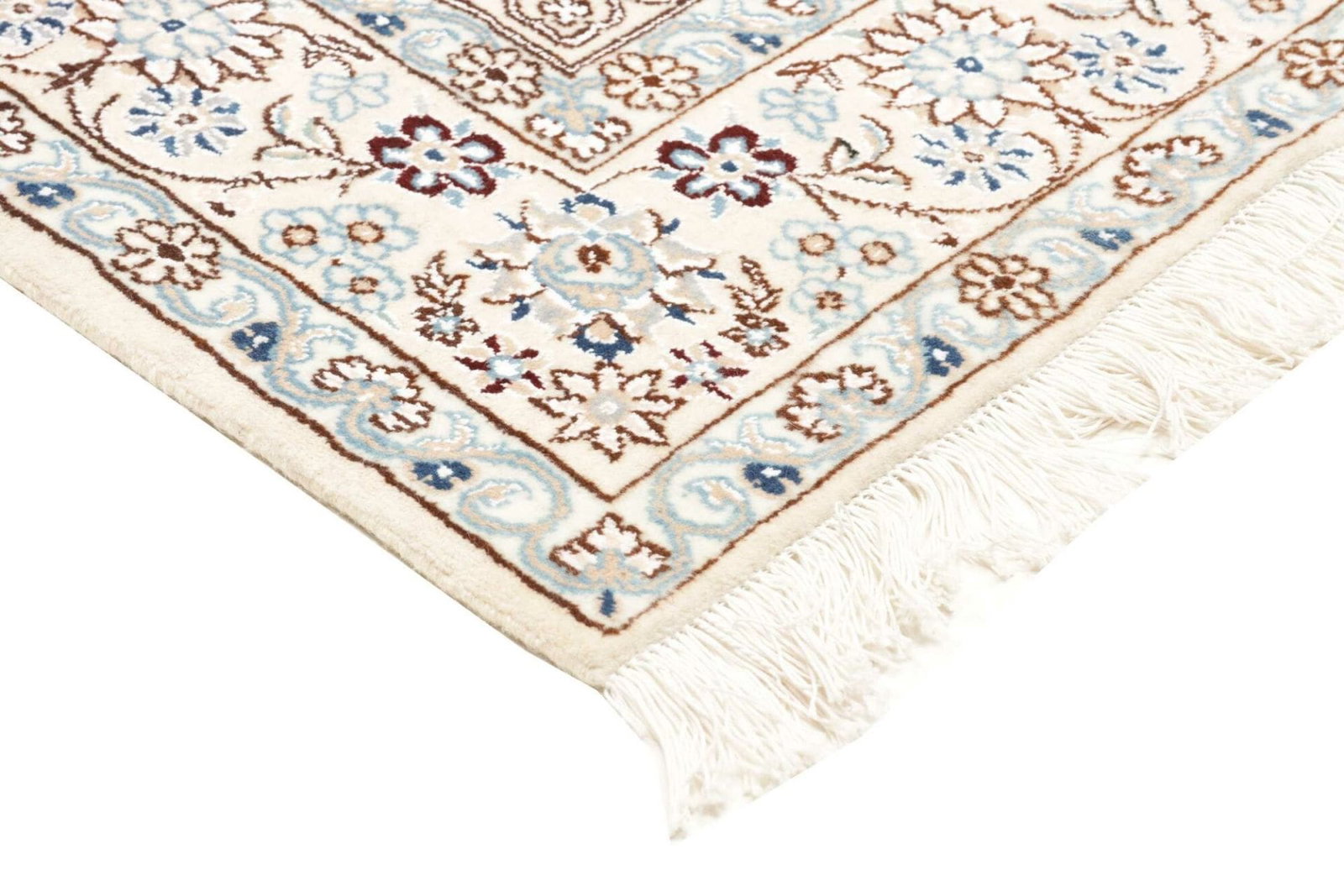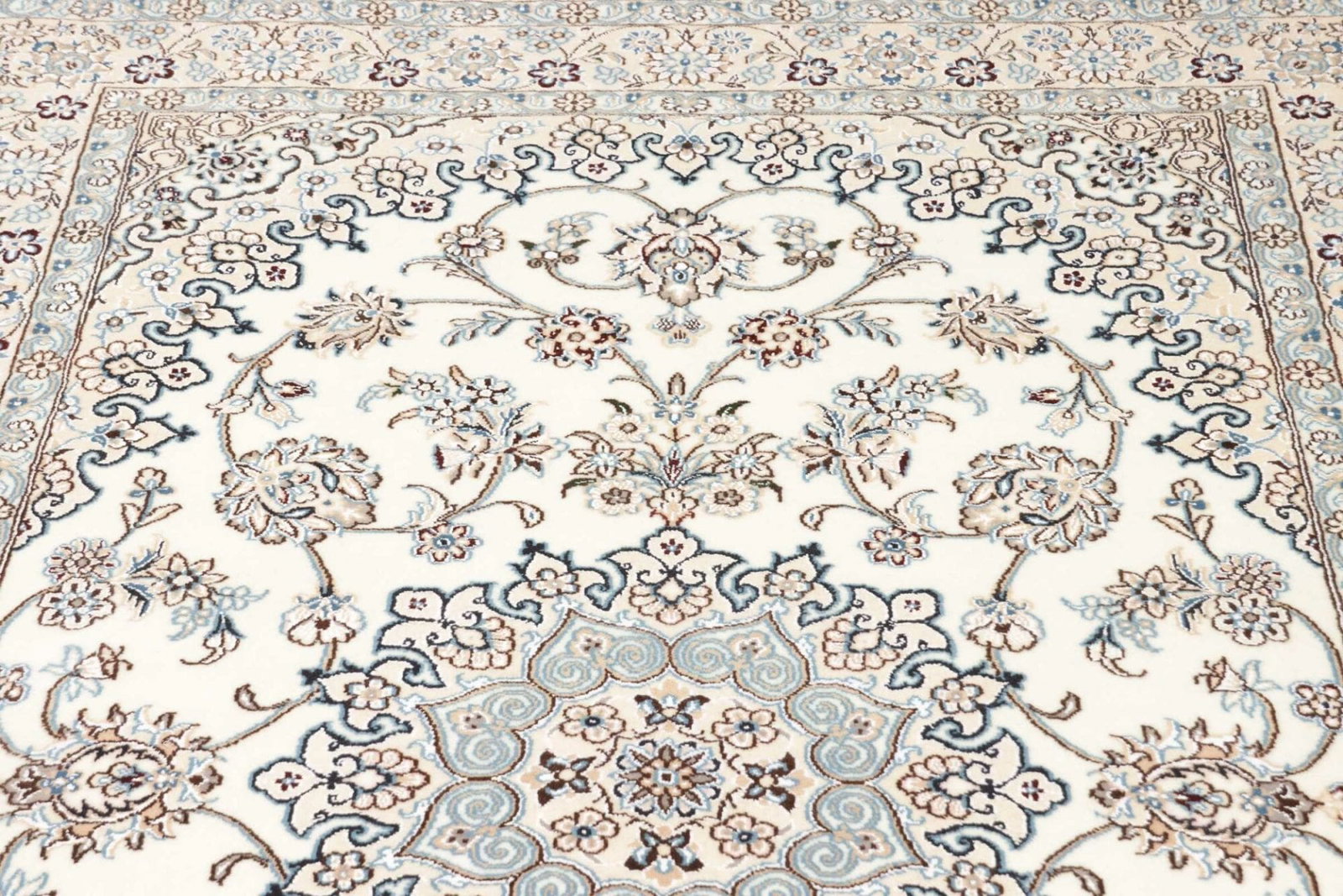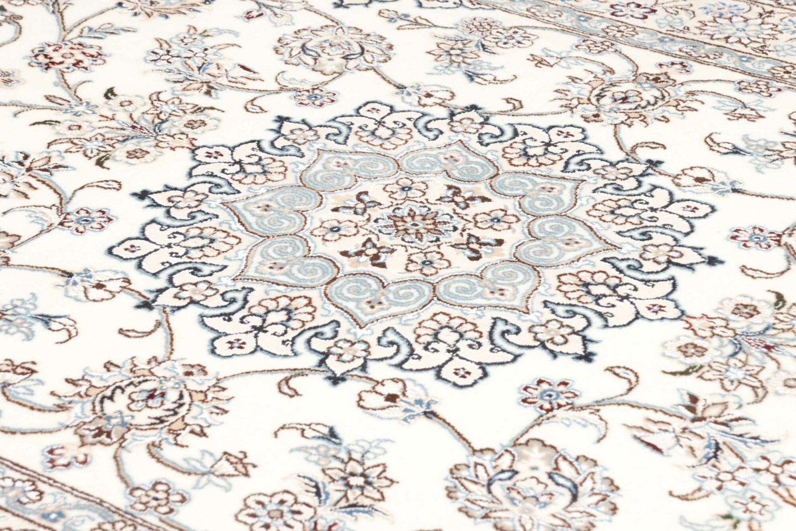 Nain Teppiche sind oft in sanften Farbtönen gehalten, wie hellblau, beige und creme, was sie vielseitig und anpassungsfähig für verschiedene Einrichtungsstile macht. Ob in einem modernen Loft oder einem traditionellen Wohnraum, dieser Teppich fügt sich nahtlos ein und verleiht jedem Raum eine warme und einladende Note.