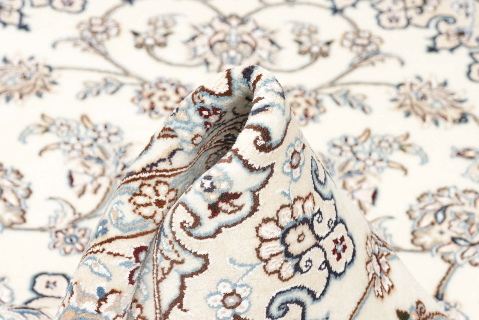 Das florale Muster des Nain Teppichs ist ein echtes Highlight, das sich durch harmonische Farben und feine Details auszeichnet. Die floralen Elemente sind sorgfältig gestaltet und verleihen dem Teppich eine lebendige Ausstrahlung. Die Verwendung von unterschiedlichen Farbtönen sorgt für Tiefe und Eleganz, wodurch der Teppich in jedem Raum eine besondere Atmosphäre schafft.