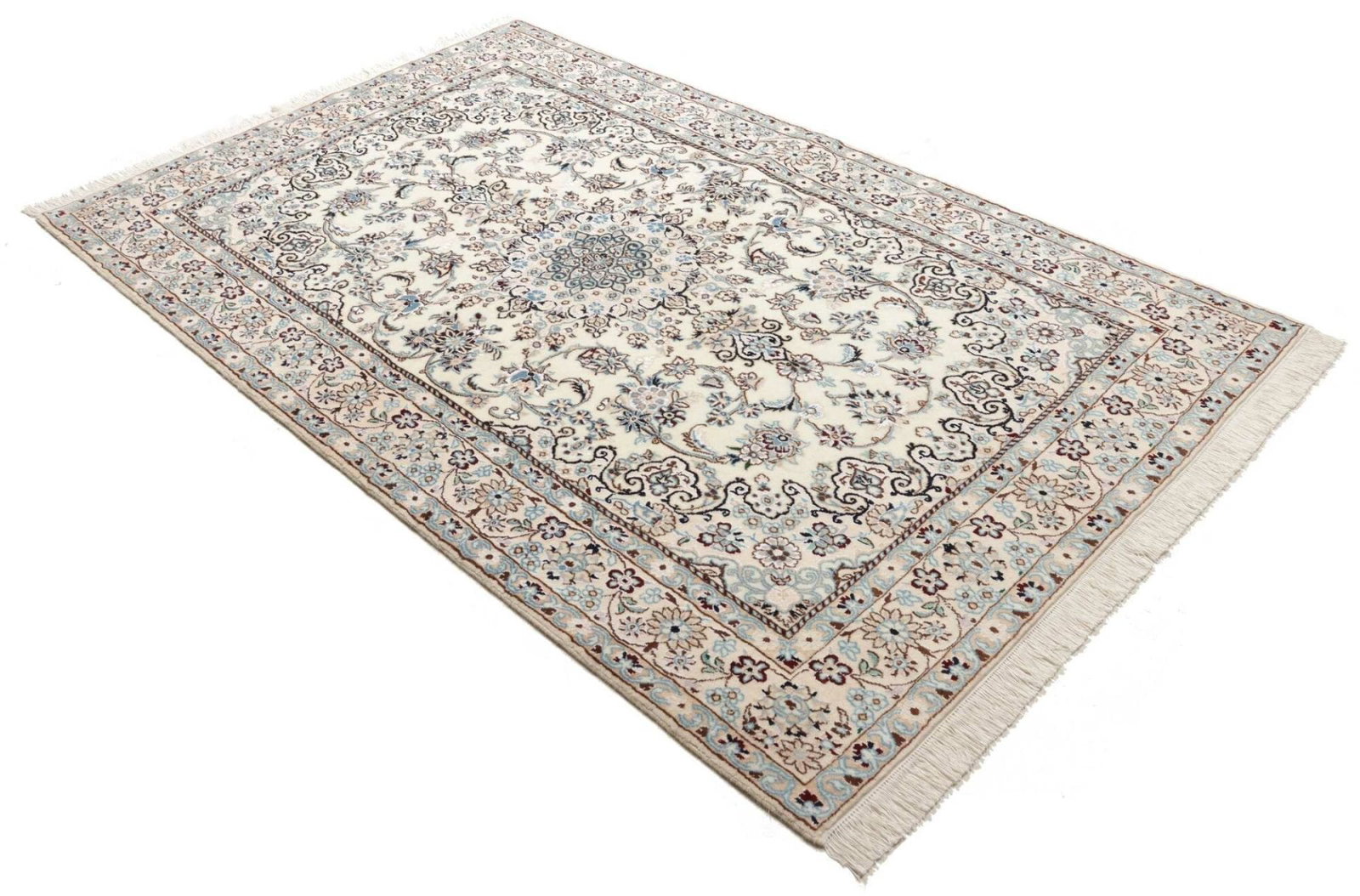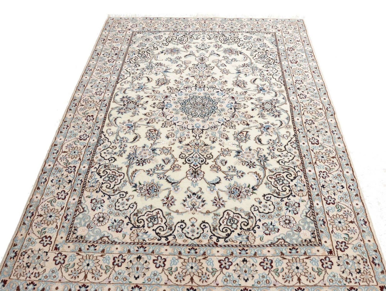 Nain Teppich 143 x 225cm, florales Muster, handgeknüpft, Perserteppich