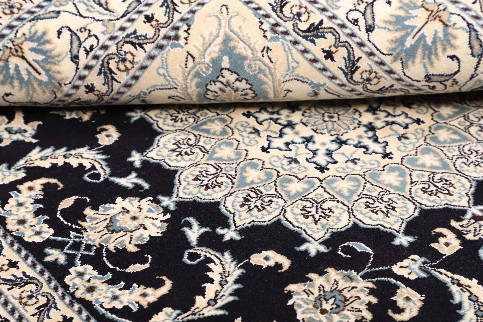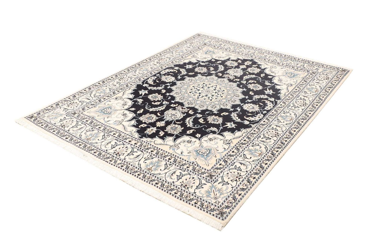 Der Nain Teppich ist ein exquisiter handgeknüpfter Perserteppich, der durch seine floralen Muster und seine einmalige Handwerkskunst besticht. Teppiche aus Nain, einer berühmten Stadt im zentralen Iran, sind für ihre hohe Qualität und ausgefeilte Kunstfertigkeit bekannt. Jeder Teppich erzählt eine Geschichte und vermittelt die reiche Kultur und Tradition Irans.
