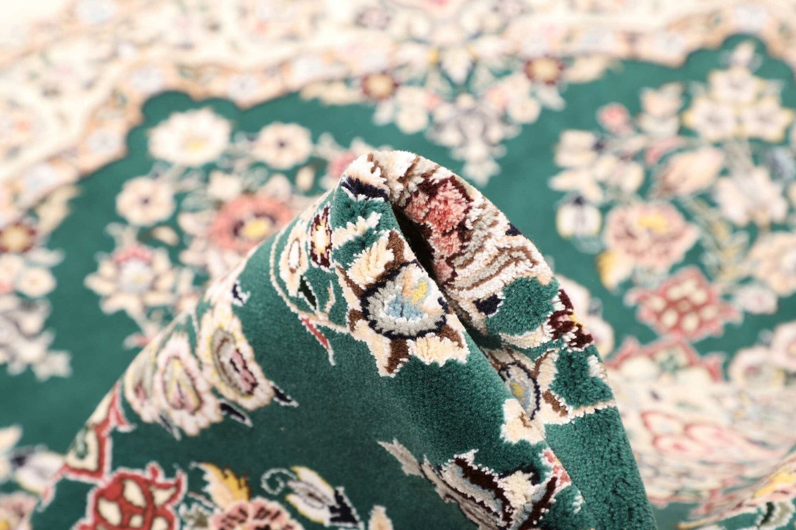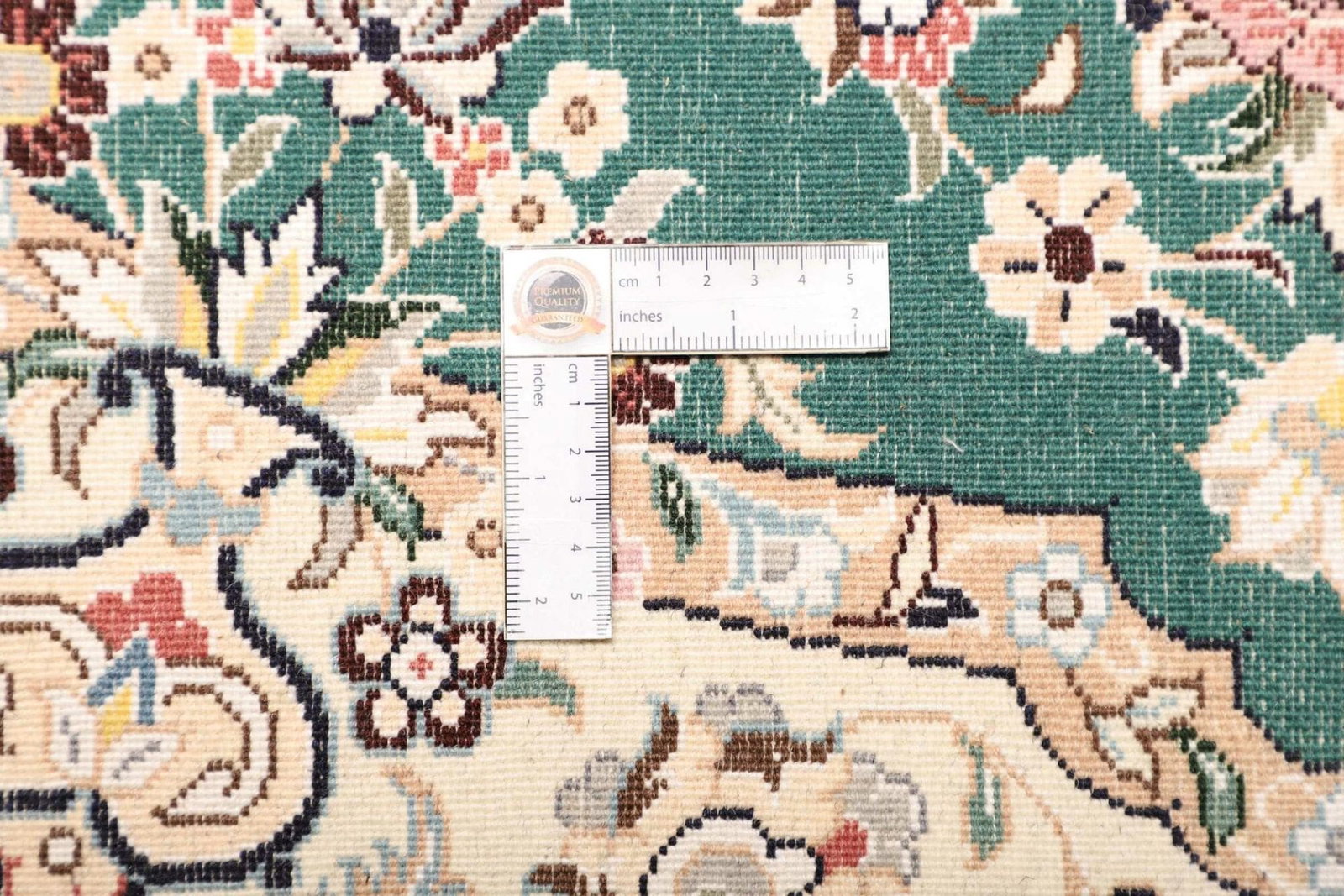 Der Nain Teppich ist ein wahres Meisterwerk der Teppichkunst, das durch seine exquisite Verarbeitung und sein ansprechendes florales Design besticht. Jeder Teppich wird von erfahrenen Kunsthandwerkern in Handarbeit geknüpft, wodurch ein unverwechselbares Kunstwerk entsteht, das sich durch höchste Qualität auszeichnet. Die Verwendung von feinen Woll- und Seidenfasern sorgt dafür, dass der Teppich nicht nur schön aussieht, sondern auch besonders langlebig ist.