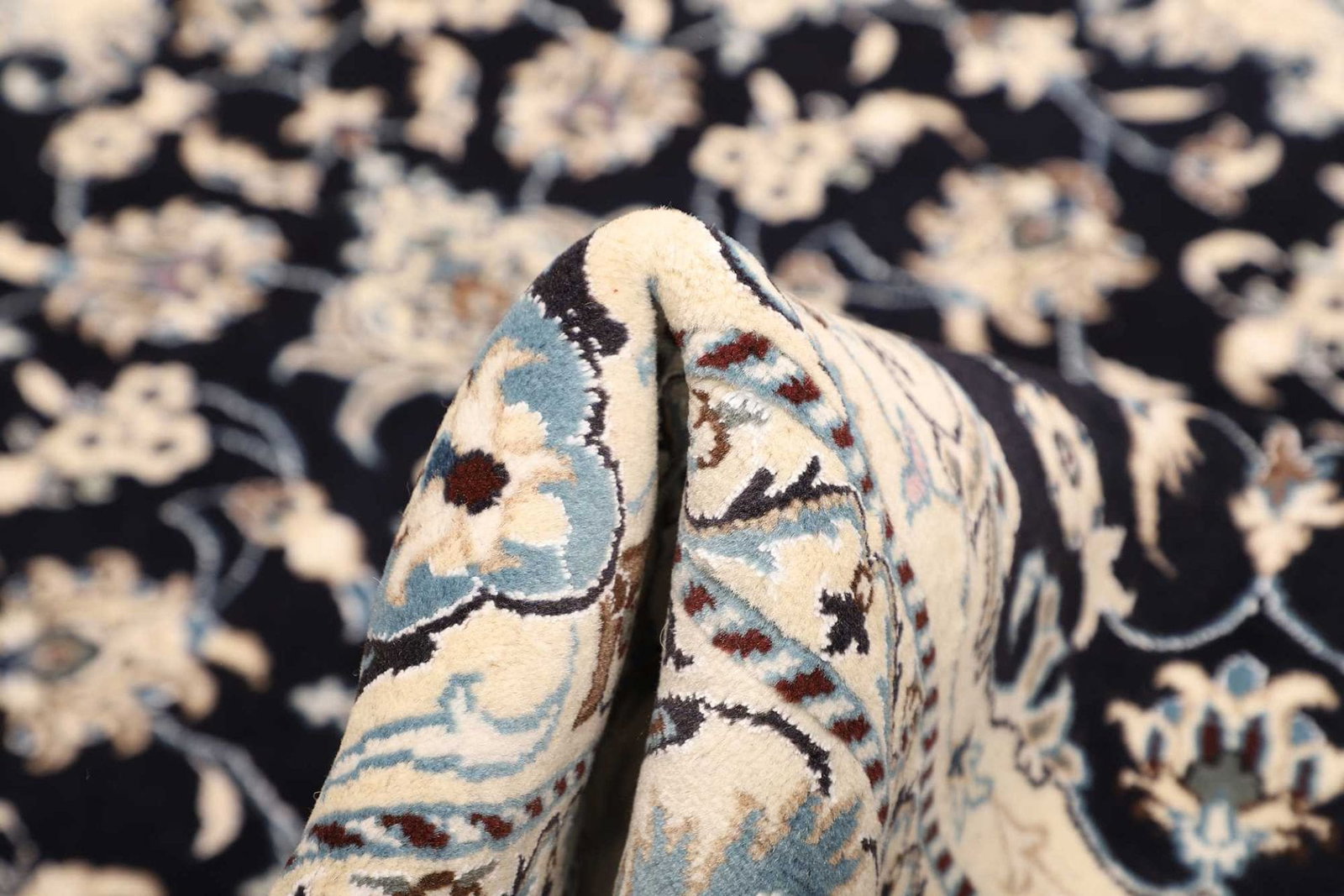 Der Nain Teppich stammt aus der gleichnamigen Stadt Nain im Iran, die weltberühmt für ihre Teppichtraditionen ist. Nain liegt im zentralen Iran und hat eine lange Geschichte der Teppichproduktion, die bis ins 16. Jahrhundert zurückreicht. Die Teppiche aus dieser Region sind bekannt für ihre komplexen Designs, die oft florale und geometrische Muster kombinieren. Die traditionell verwendeten Farben sind für ihre sanften, harmonischen Töne bekannt, die oft in blau, beige und Rot gehalten sind. Die Kunst des Teppichknüpfens in Nain wird von Generation zu Generation weitergegeben und stellt eine der wichtigsten kulturellen Ausdrucksformen der Region dar.