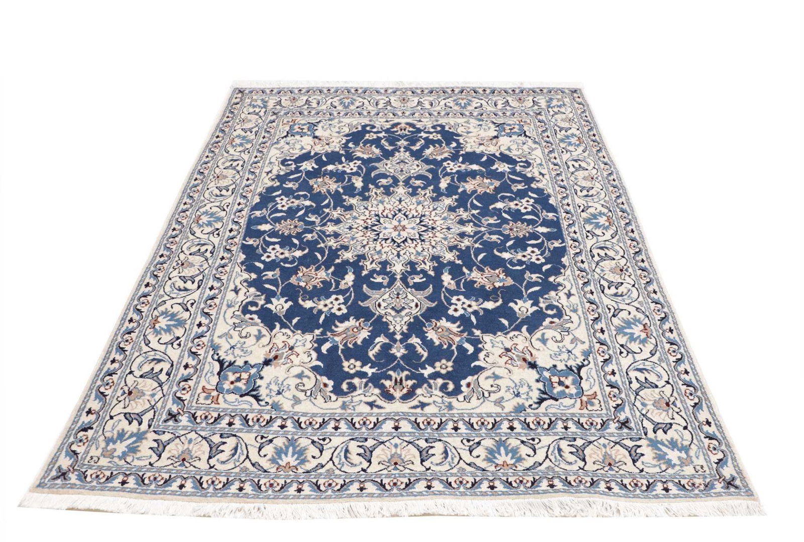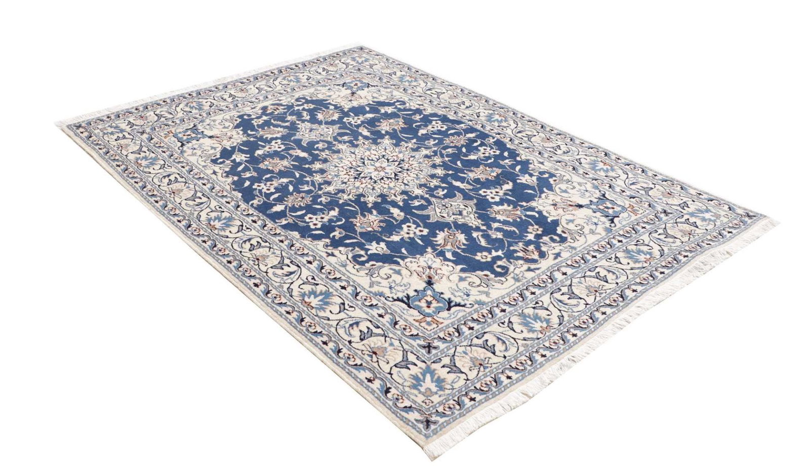 Nain Teppich | Knotendichte: ca. 200.000 Knoten/m² | Material: 100% Schurwolle im Flor, 100% Baumwolle in der Kette | Größe: 153 x 213 cm | Herkunft: Iran | Zustand: Handgeknüpft, exklusive Qualität | Muster: Klassische florale Motive und moderne Interpretationen
