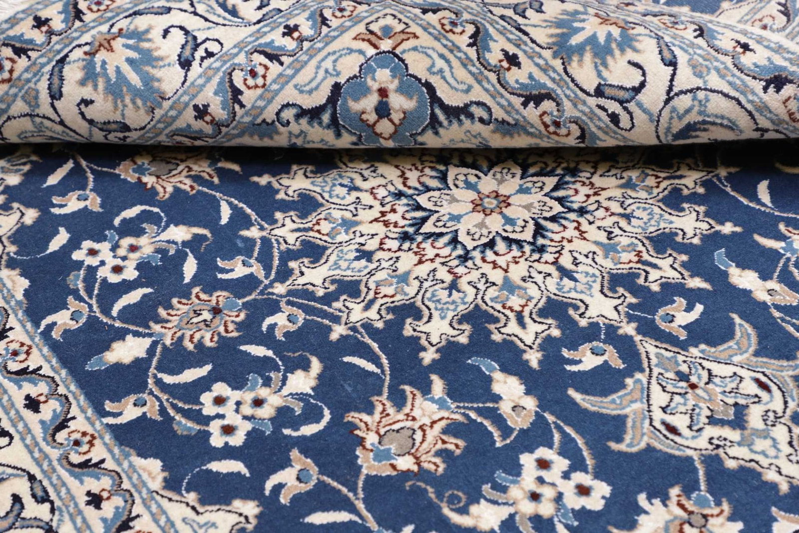 Der Nain Teppich stammt aus der gleichnamigen Stadt Nain im Iran, die bekannt ist für ihre traditionsreiche Teppichknüpfkunst. Nain ist eine Provinz, die bekannt für ihre exquisiten Teppiche ist, die sich durch lichte Farben und feine, detailverliebte Muster auszeichnen. Die Region hat eine lange Geschichte der Teppichherstellung, und die Kunst des Knüpfens wurde über Generationen hinweg verfeinert. Traditionelle Designs und der Einsatz hochwertiger Materialien sind der Schlüssel zu den qualitativ hochwertigen Nain Teppichen, die heute gefragt sind.