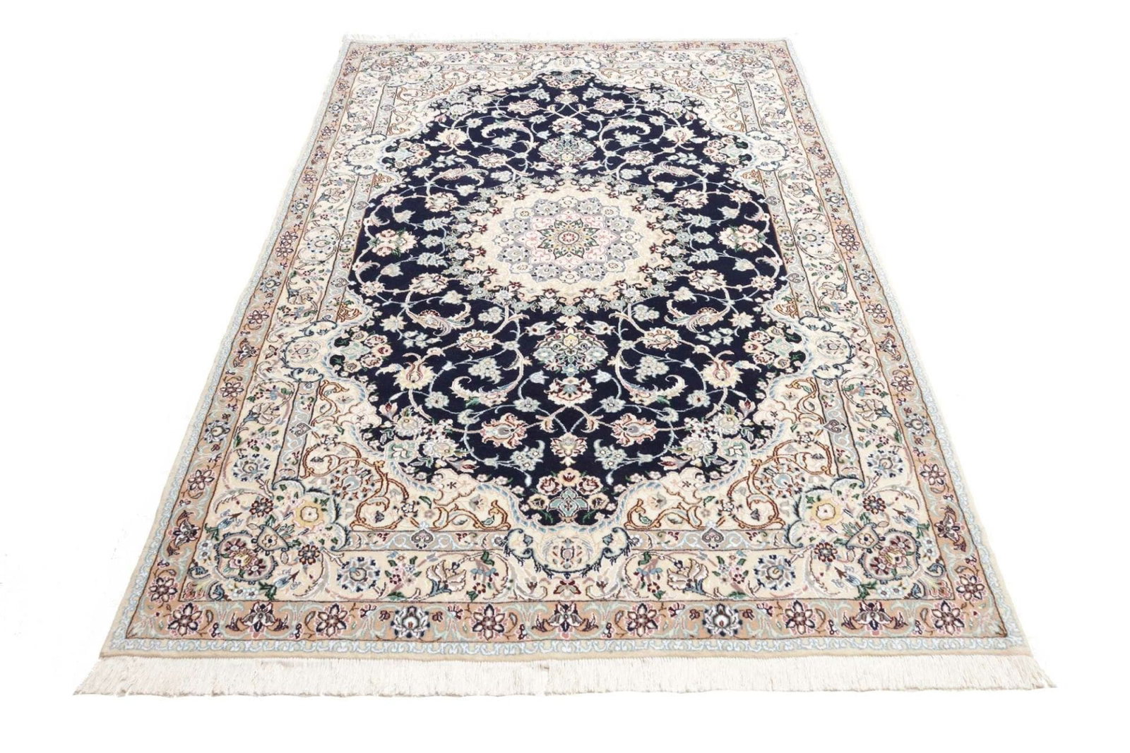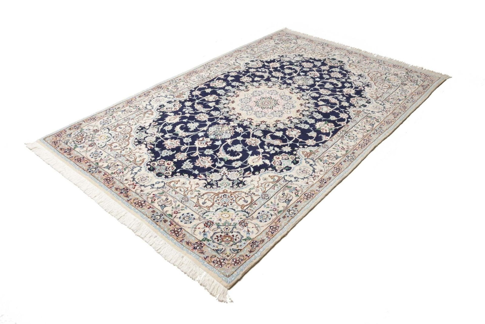 3708$Ursprünglicher Preis war: 3708$2753$Aktueller Preis ist: 2753$Nain Teppich | Knotendichte: ca. 500.000 Knoten/m² | Material: 100% Schurwolle (Flor) und 100% Baumwolle (Kette) | Größe: 153 x 235 cm | Herkunft: Iran | Zustand: Exklusiv und hochwertig | Handgeknüpfte Qualität | Stilvolle florale Musterung in hellen und königsblauen Tönen