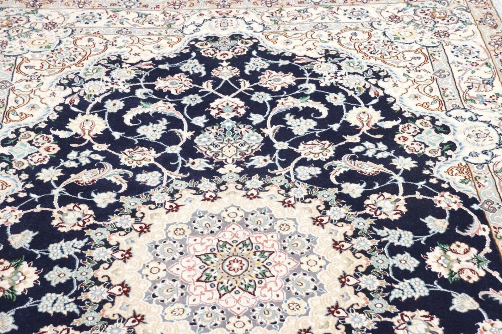 4090$Ursprünglicher Preis war: 4090$1461$Aktueller Preis ist: 1461$ Weiterlesen(Verkauft) W1 (#203) ca. 345x245cm NEU Handgeknüpfter Nain Perserteppich mit Seide 12la