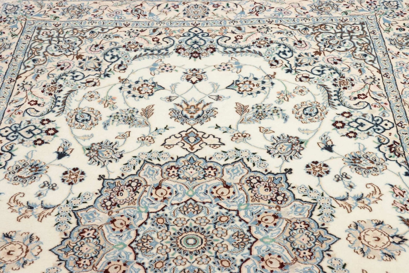 Nain Teppich | Knotendichte: ca. 500.000 Knoten/m² | Material: 100% Schurwolle (Flor), 100% Baumwolle (Kette) | Größe: 153 x 237 cm | Verarbeitung: Handgeknüpft | Herkunft: Iran | Zustand: Exklusiv und hochwertig | Muster: Klassische florale Motive und moderne Neuinterpretationen