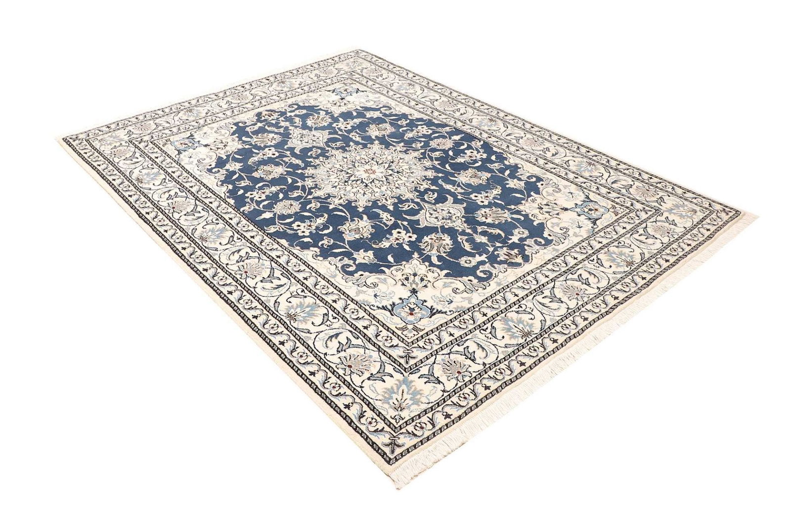Nain Teppich 155 x 205 cm, florales Muster, Schurwolle, handgeknüpft