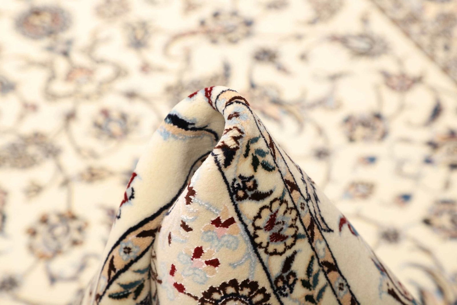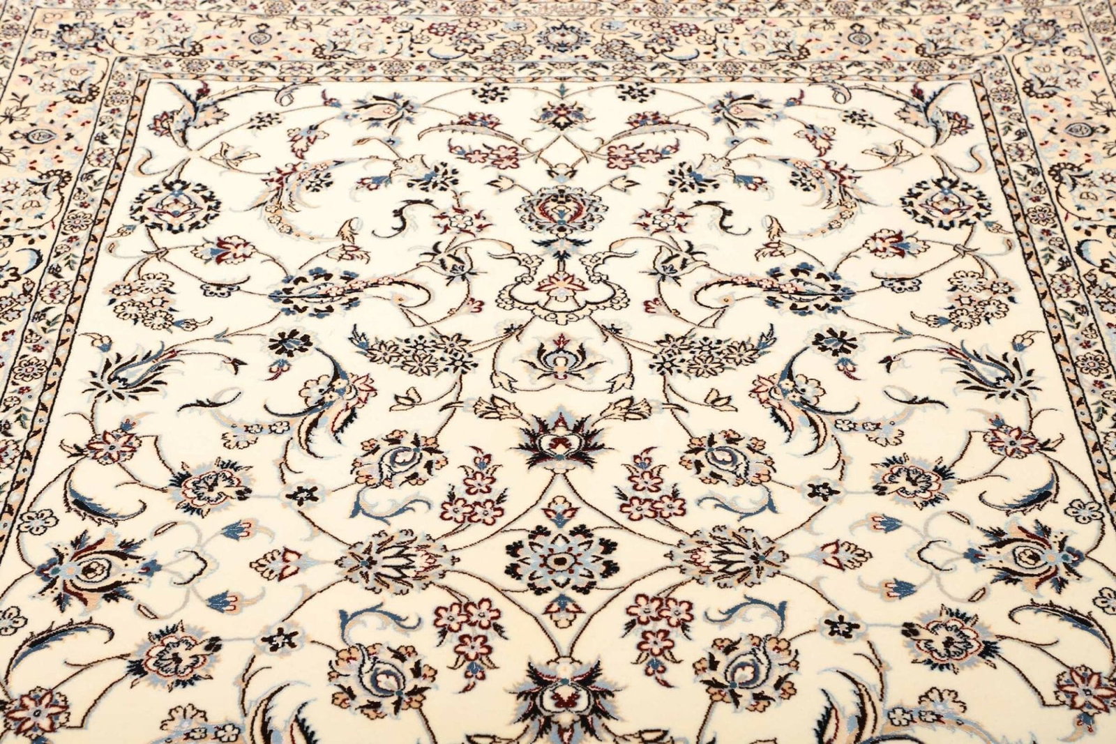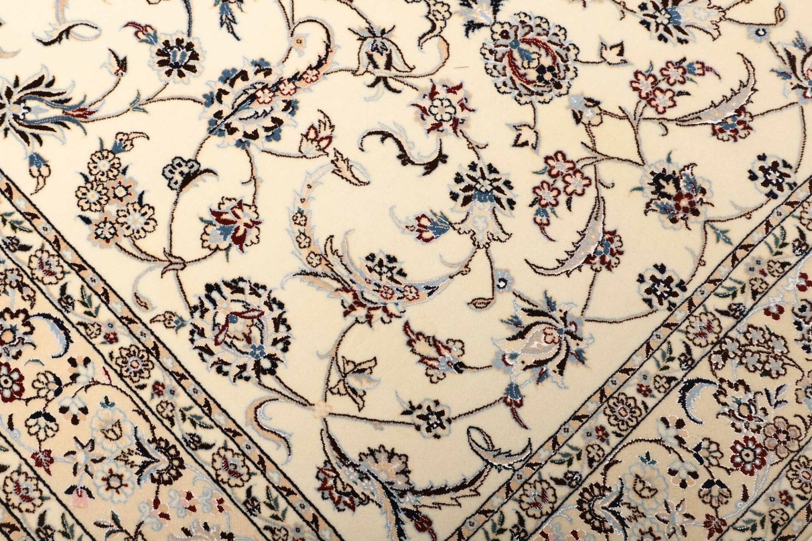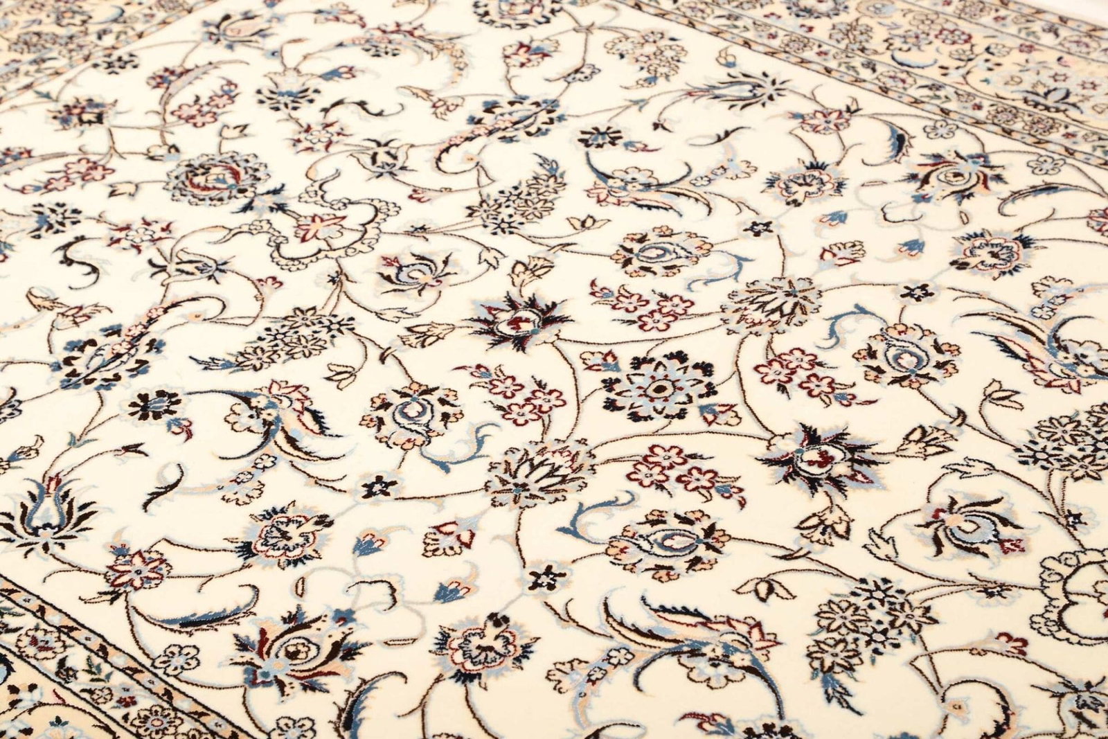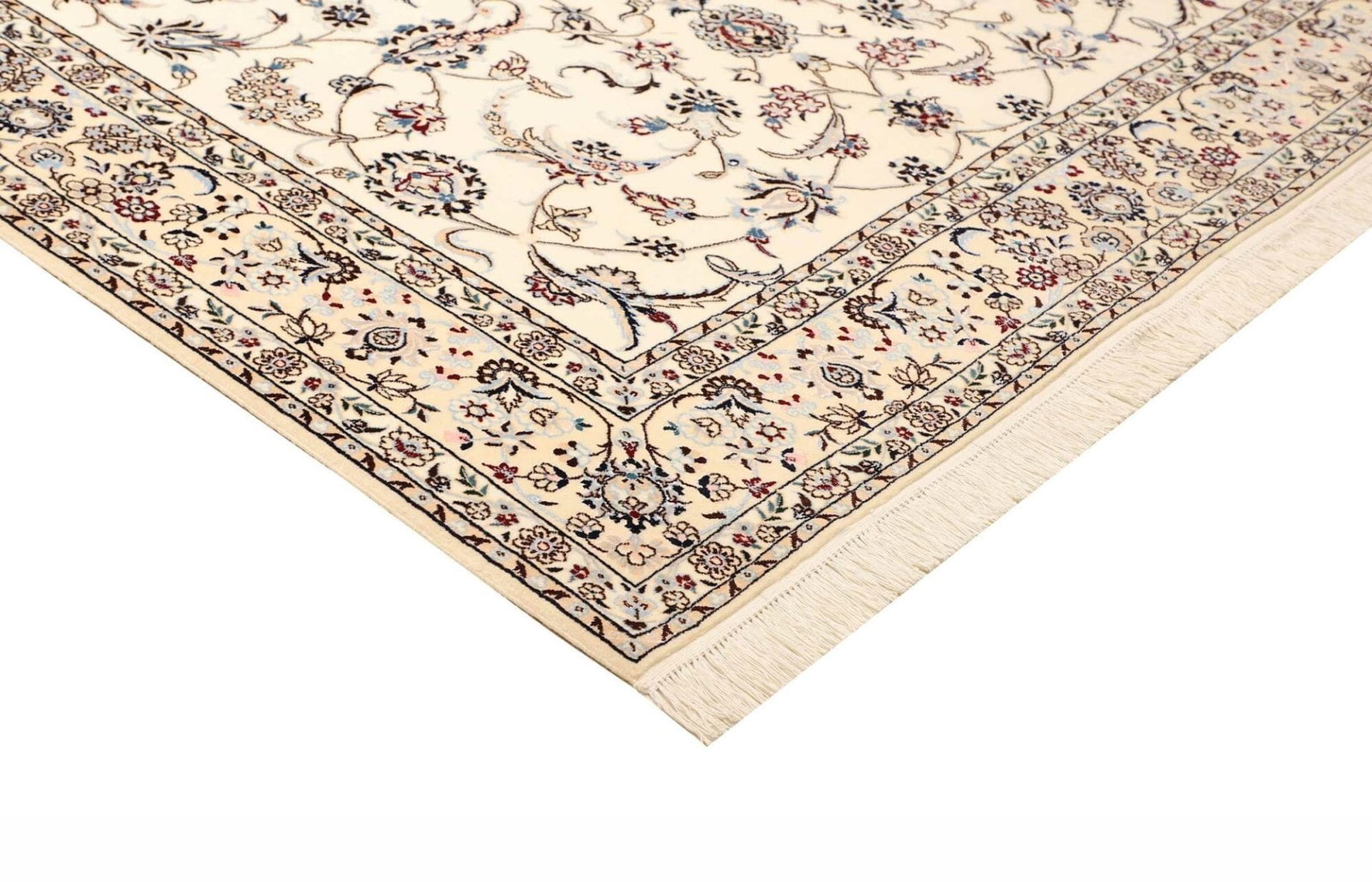Die handgeknüpfte Technik, die hohe Knotendichte und das florale Design heben einen Nain Teppich von anderen Teppichen ab. Darüber hinaus bringt er ein Stück iranischer Kultur und Geschichte in Ihr Zuhause, was ihn zu einem einzigartigen und wertvollen Kunstwerk macht.