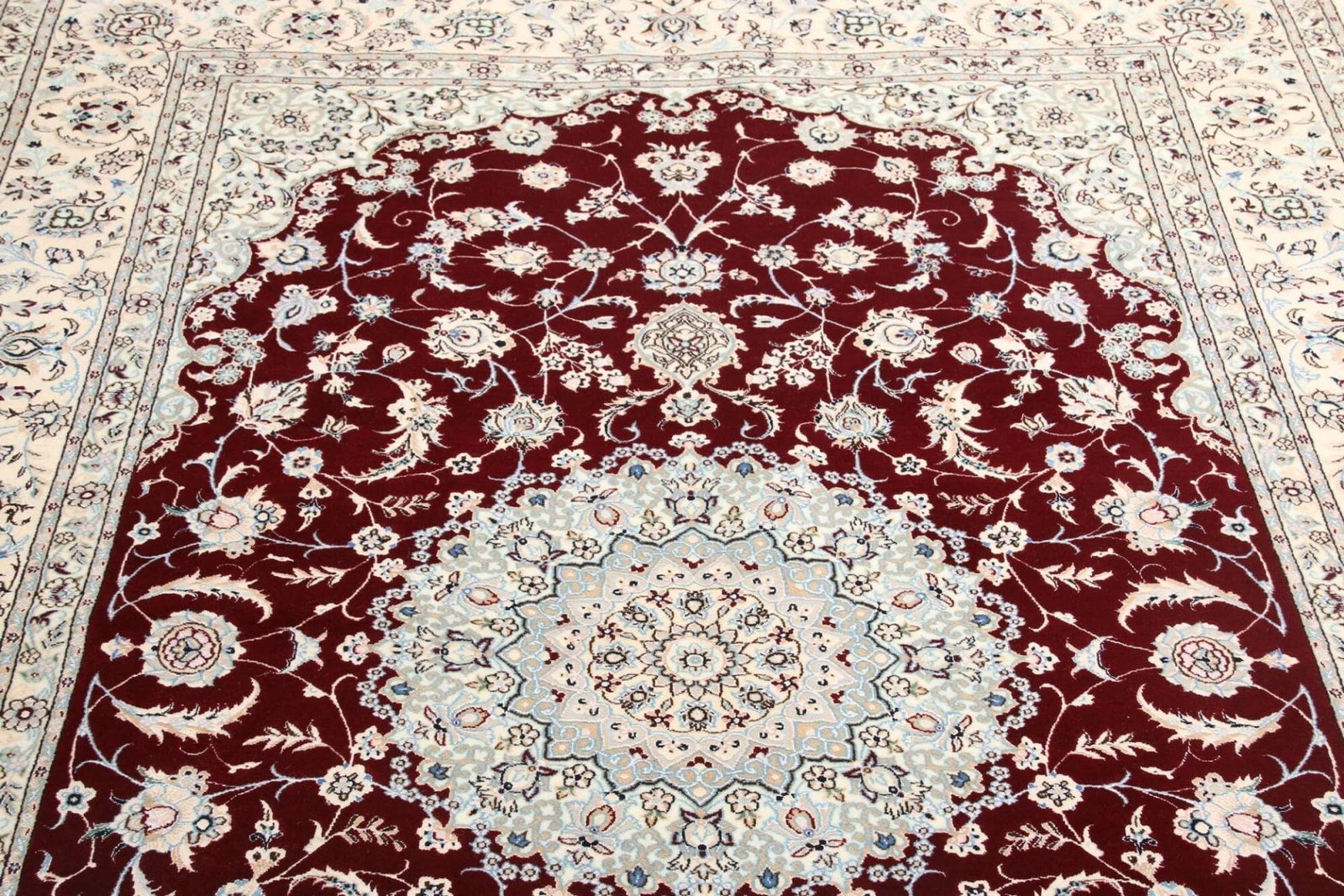 Nain Teppich | Knotendichte: ca. 900.000 Knoten/m² | Muster: Klassische florale Motive | Größe: 158 x 240 cm | Material: 100% Schurwolle (Flor), 100% Baumwolle (Kette) | Verarbeitung: Handgeknüpft | Herkunft: Iran | Zustand: Exklusiv und hochwertig