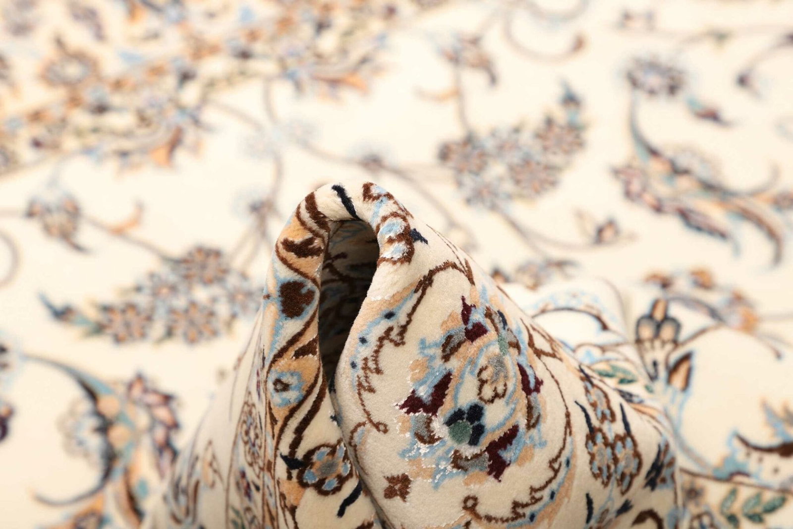 Ein weiterer bemerkenswerter Aspekt des Nain Teppichs ist die detaillierte Knotentechnik, die bei seiner Herstellung verwendet wird. Handgeknüpfte Teppiche sind oft teurer als maschinell hergestellte, da sie viel Zeit und Mühe in Anspruch nehmen. Jeder Knoten wird von Hand gesetzt, was zu einem einzigartigen Kunstwerk führt. Auch wenn der Teppich regelmäßig gereinigt und gepflegt werden sollte, bleibt er über Jahrzehnte hinweg in optimalem Zustand, was ihn zu einer nachhaltigen Investition macht.