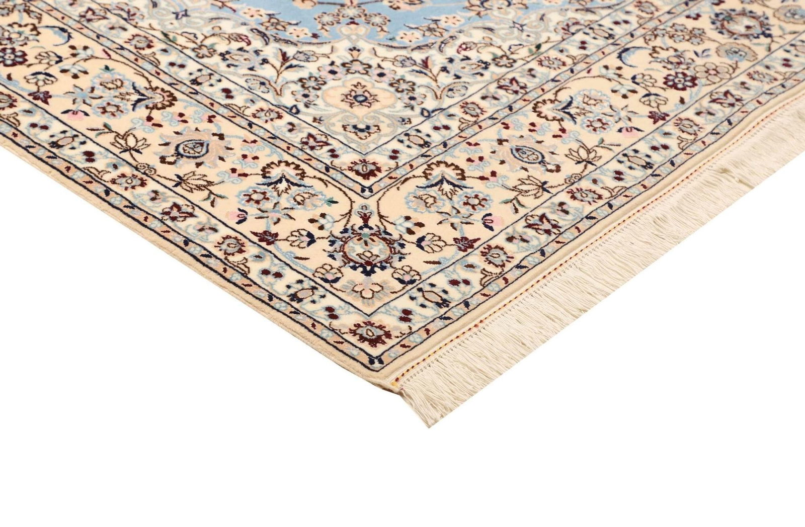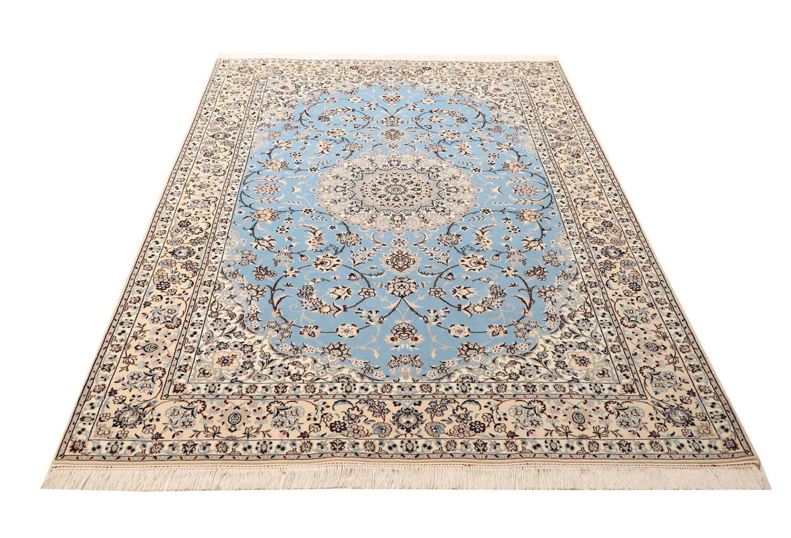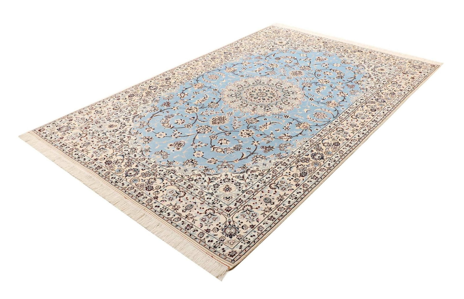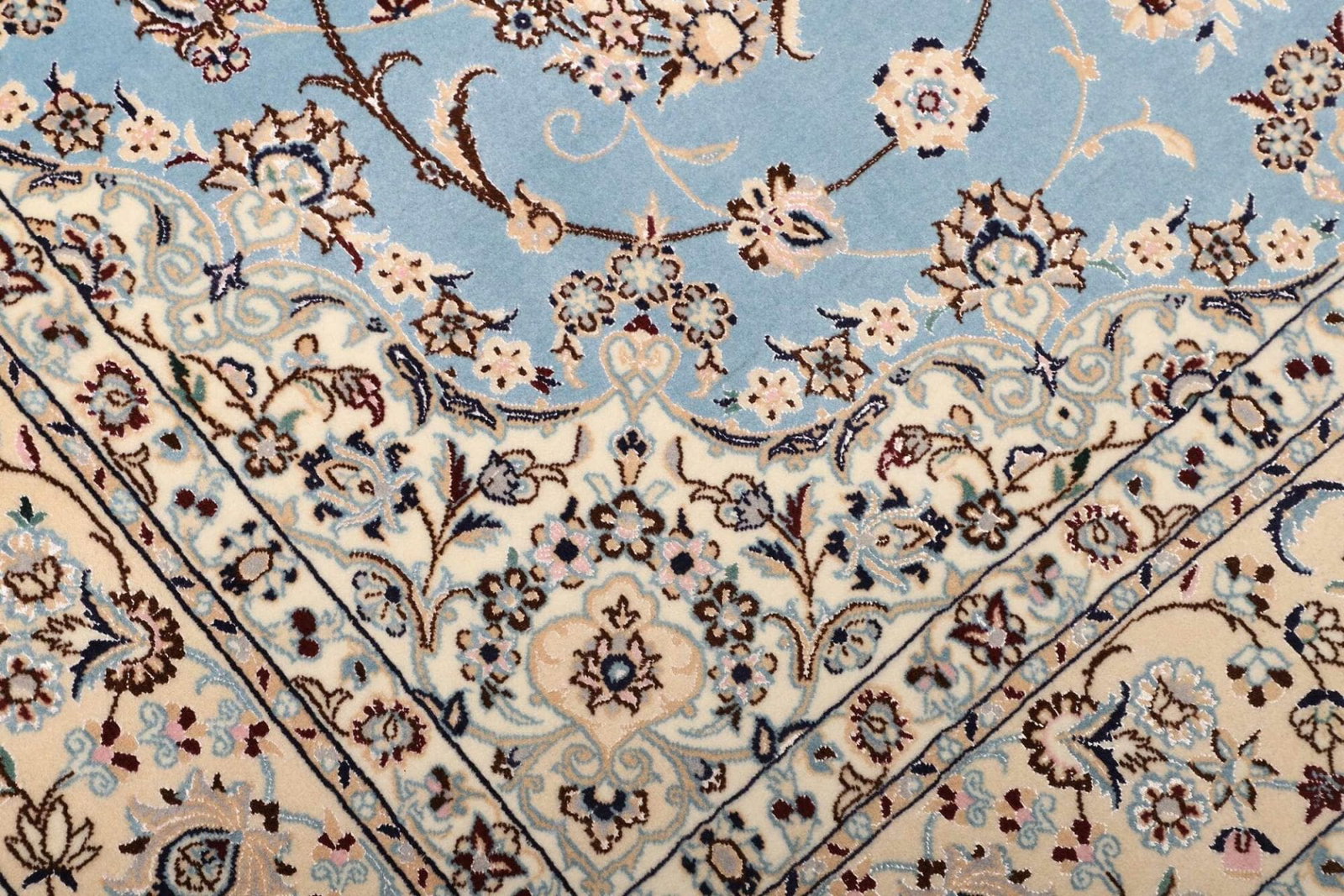 Der Nain Teppich stammt aus der gleichnamigen Stadt Nain im Iran, die für ihre lange Teppichknüpftradition bekannt ist. Nain ist im Perserteppichmarkt äußerst geschätzt, insbesondere aufgrund der Verwendung erstklassiger Materialien und der raffinierten Designs. Die Kunst des Teppichknüpfens in dieser Region geht auf mehrere Jahrhunderte zurück. Die Teppiche aus Nain sind oft mit komplexen geometrischen Mustern und floralen Elementen verziert, die die Schönheit der Natur widerspiegeln und die Liebe zur Kunst zeigen, die in jeder Faser des Teppichs spürbar ist.